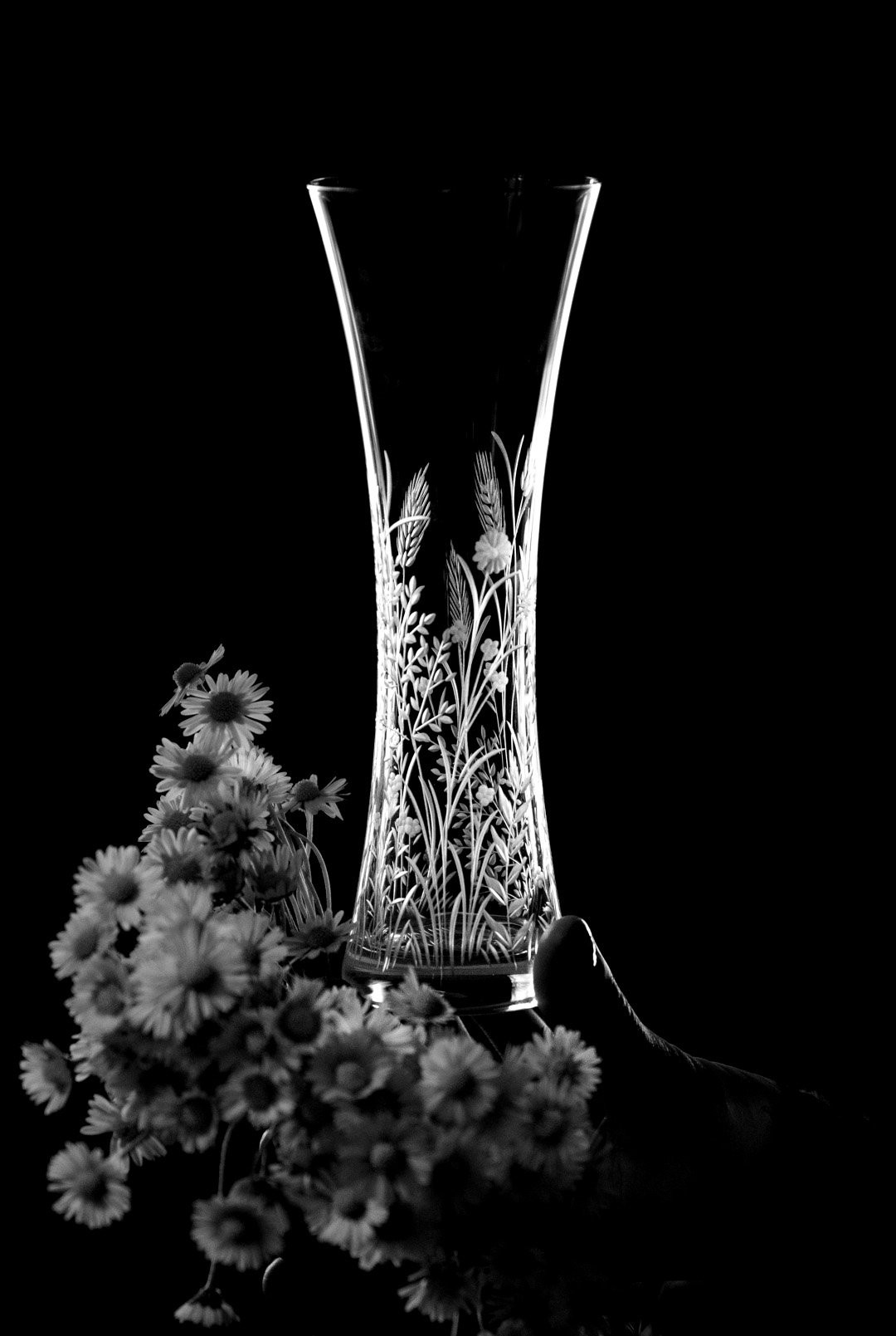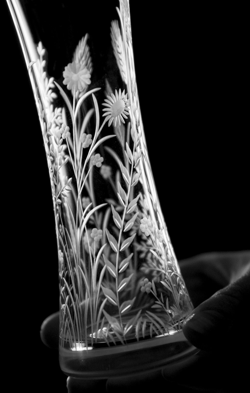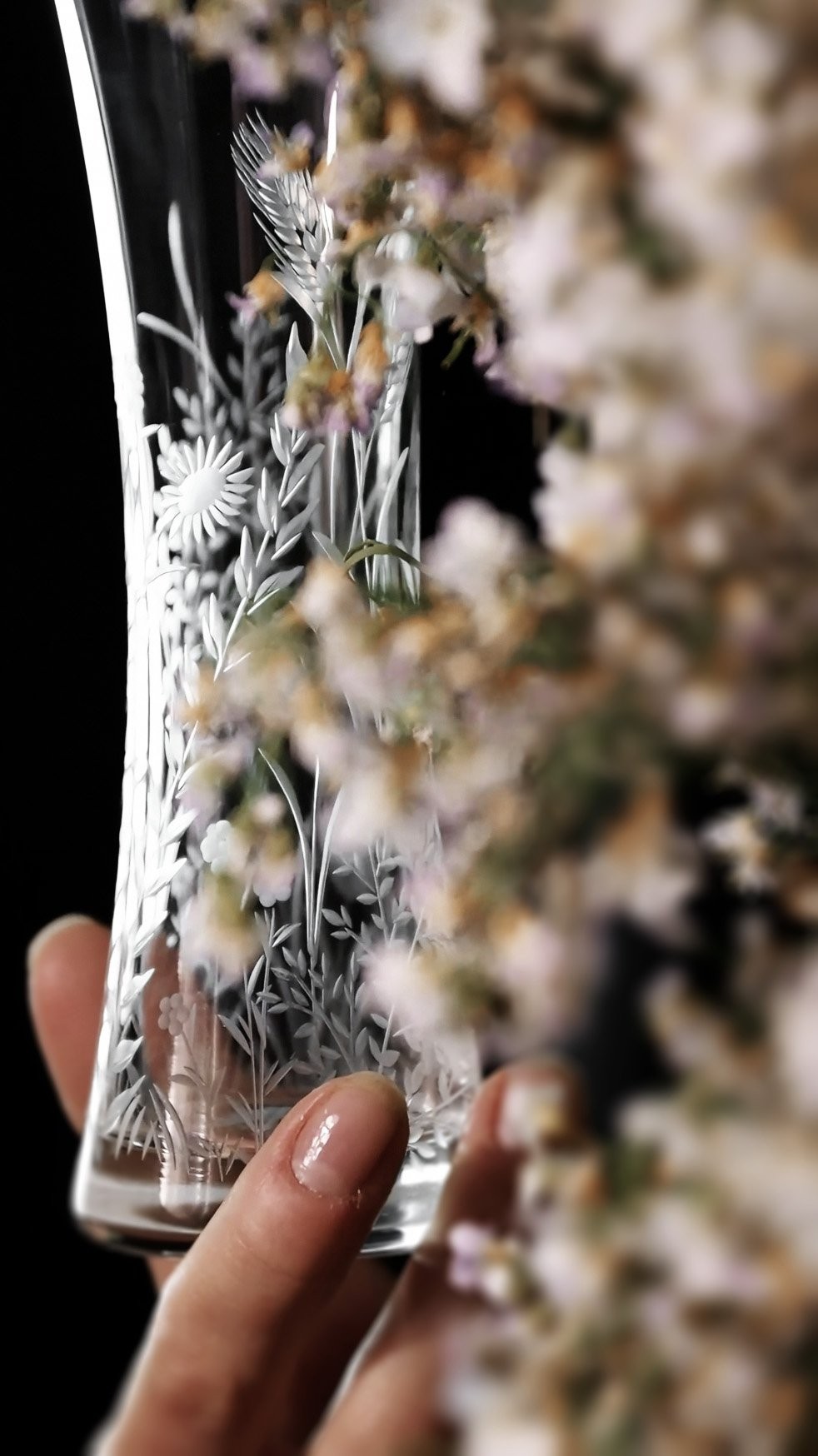 Ručně rytá váza Bloomy odkrývá křehkou krásu divokých květin, které jsou vytvořeny s péčí, lehkostí a láskou k detailu.