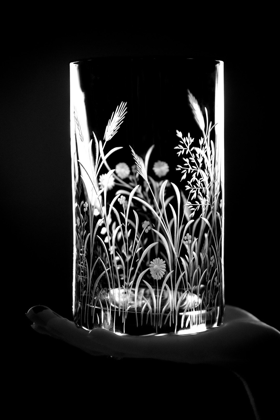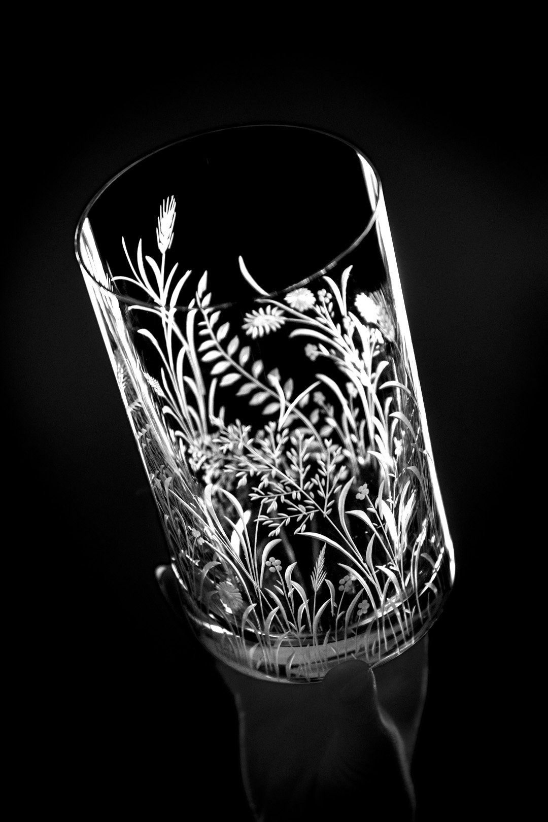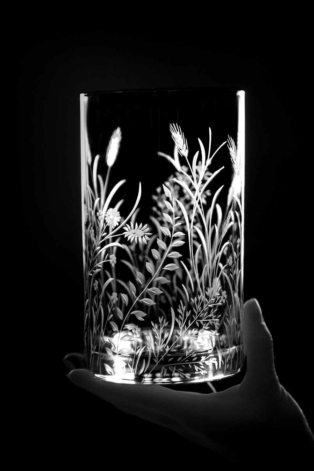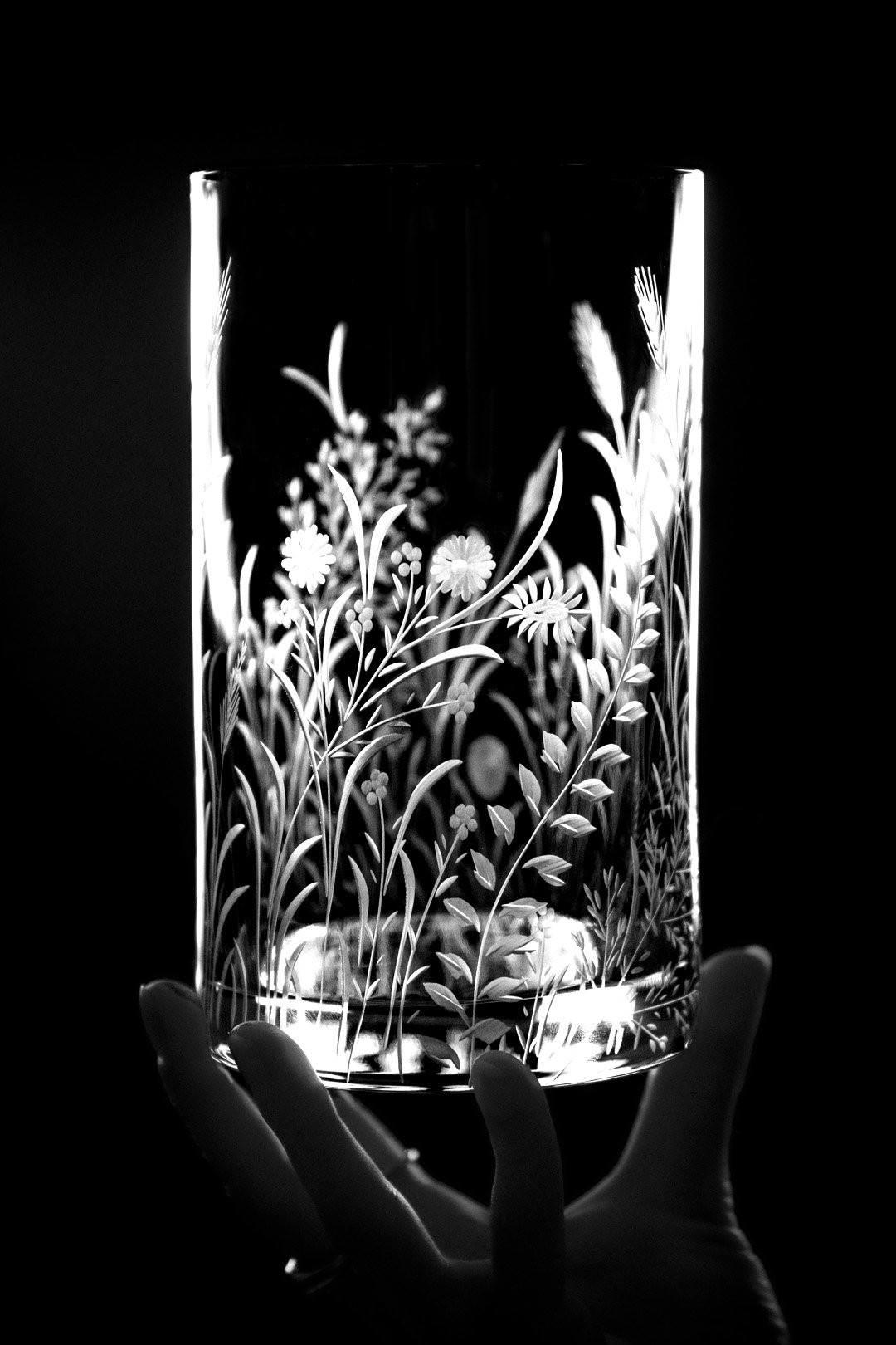Ručně rytá sklenička Bloomy odkrývá křehkou krásu divokých květin, které jsou vytvořeny s péčí, lehkostí a láskou k detailu.