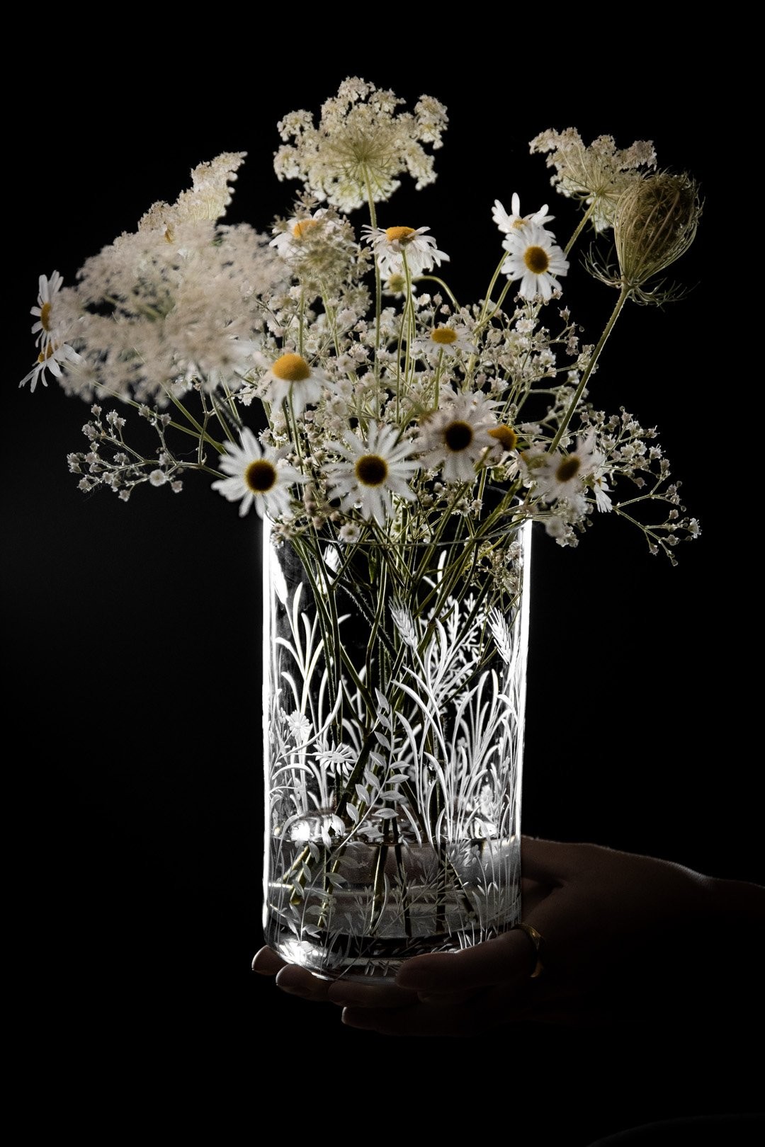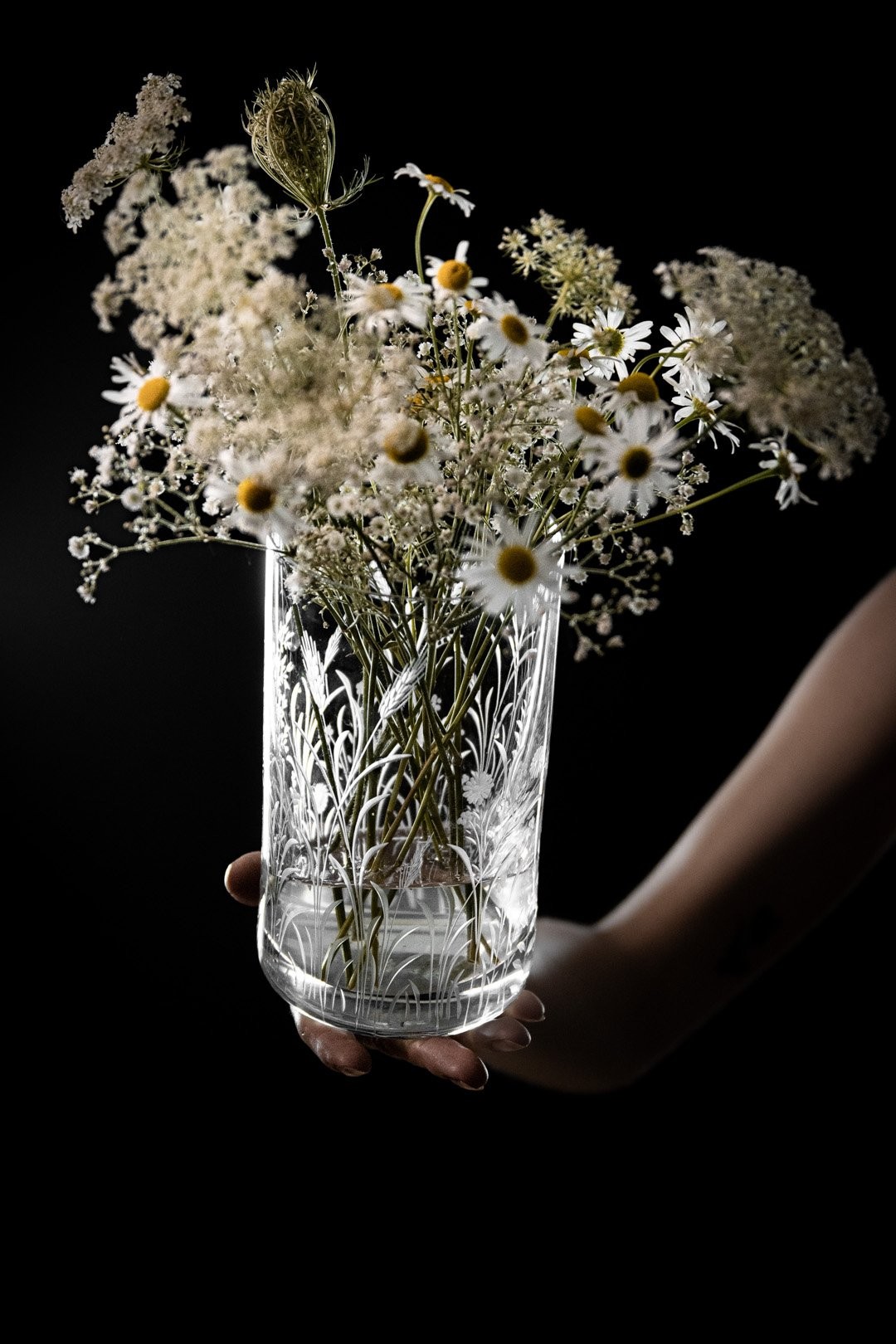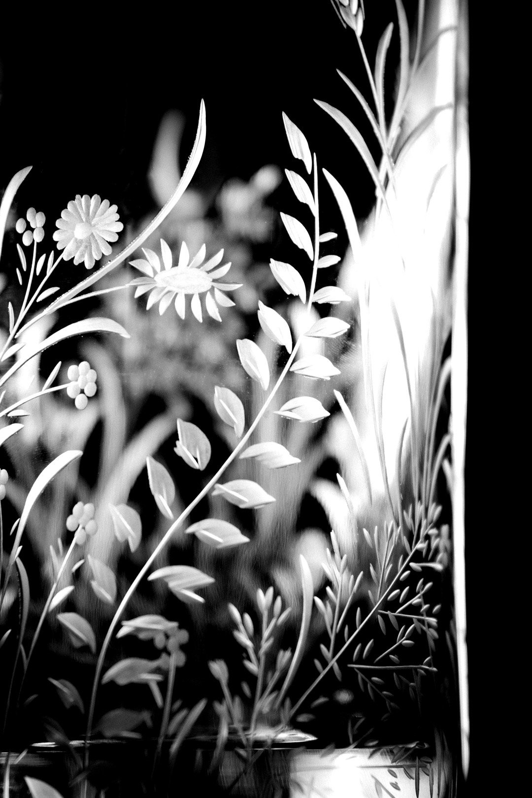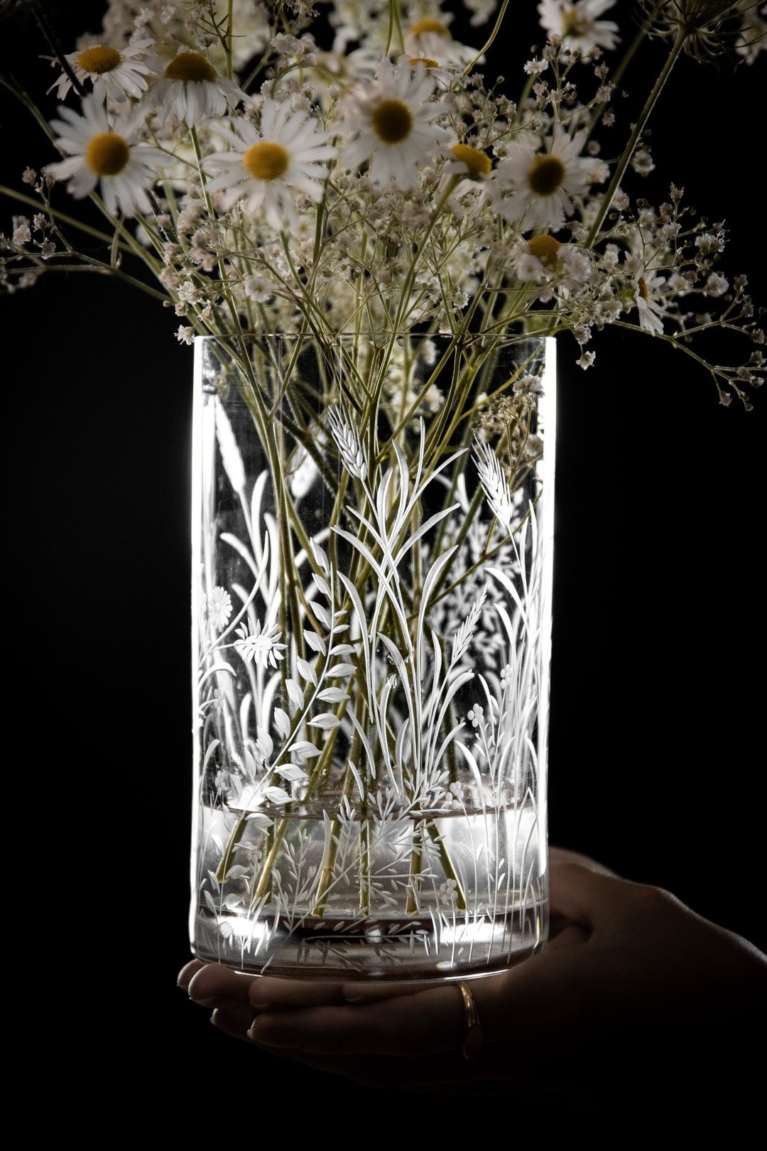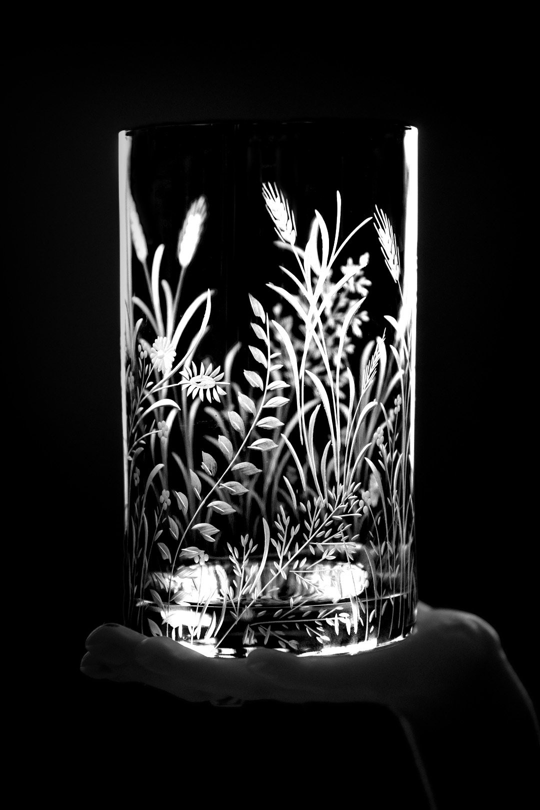 Ručně rytá sklenička Bloomy odkrývá křehkou krásu divokých květin, které jsou vytvořeny s péčí, lehkostí a láskou k detailu.