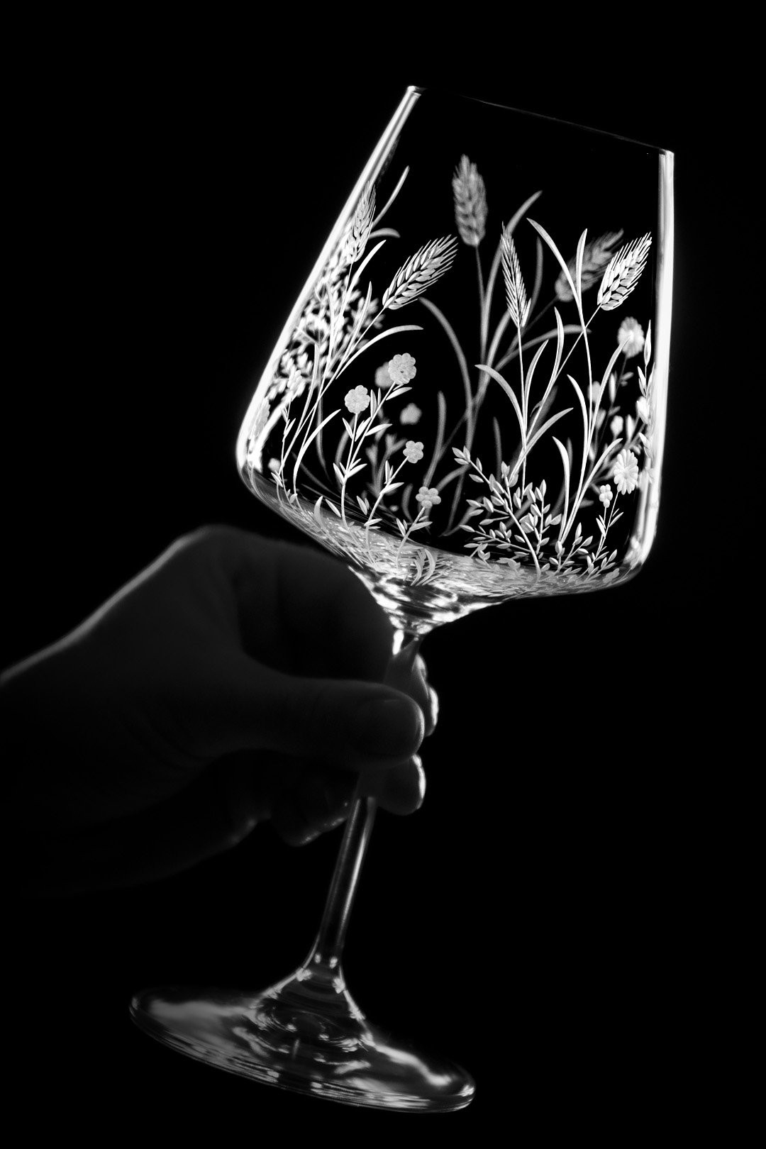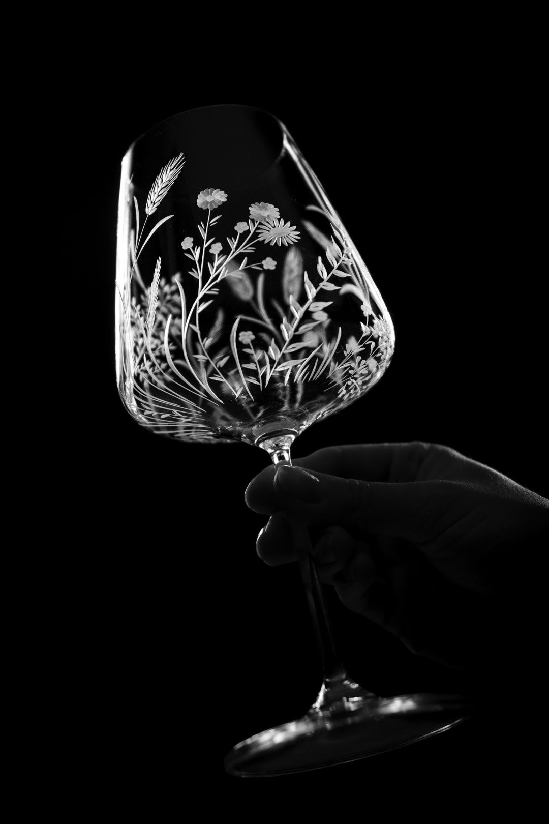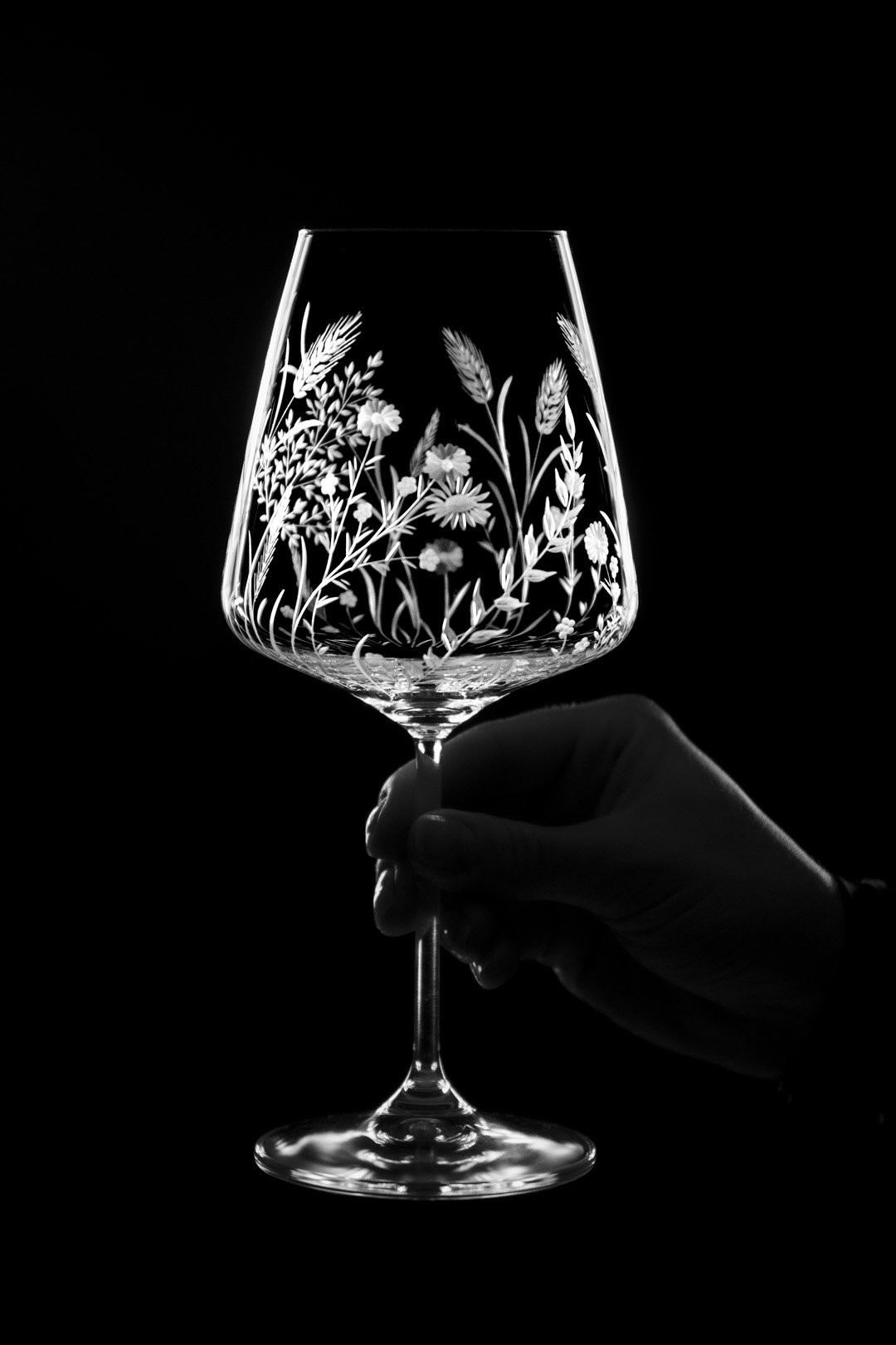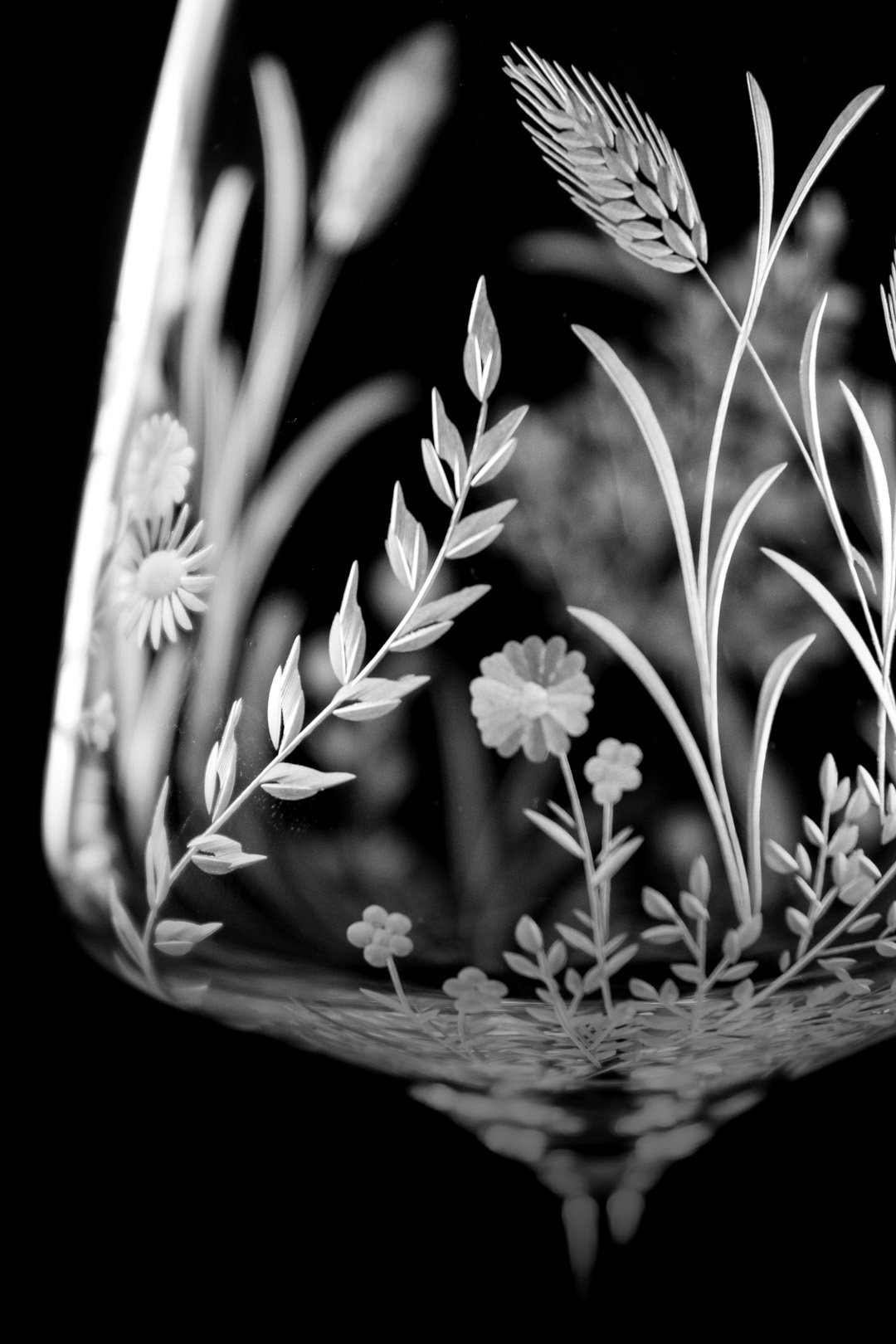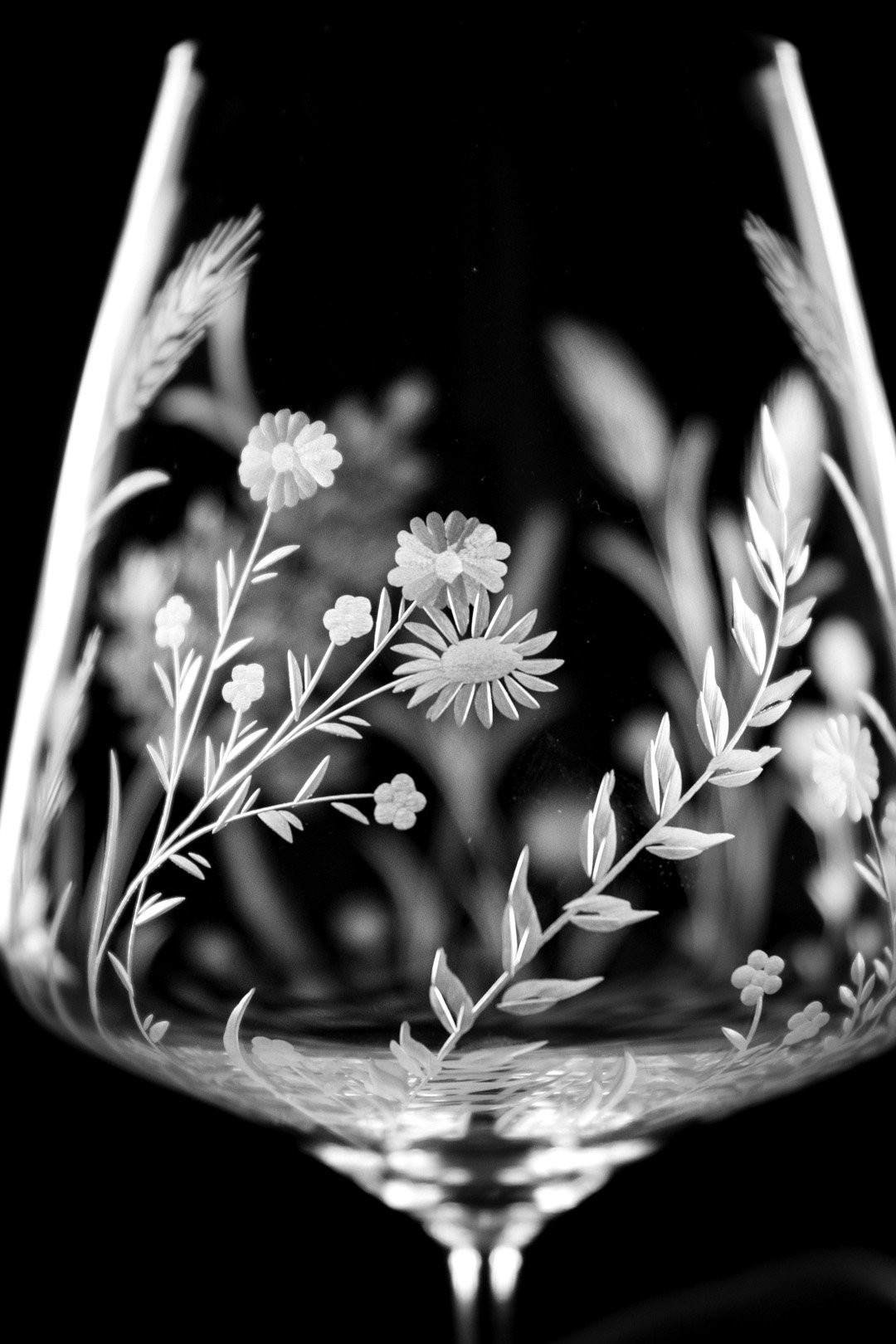 Ručně rytá sklenička Bloomy odkrývá křehkou krásu divokých květin, které jsou vytvořeny s péčí, lehkostí a láskou k detailu.