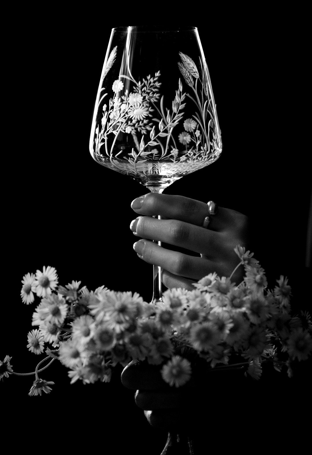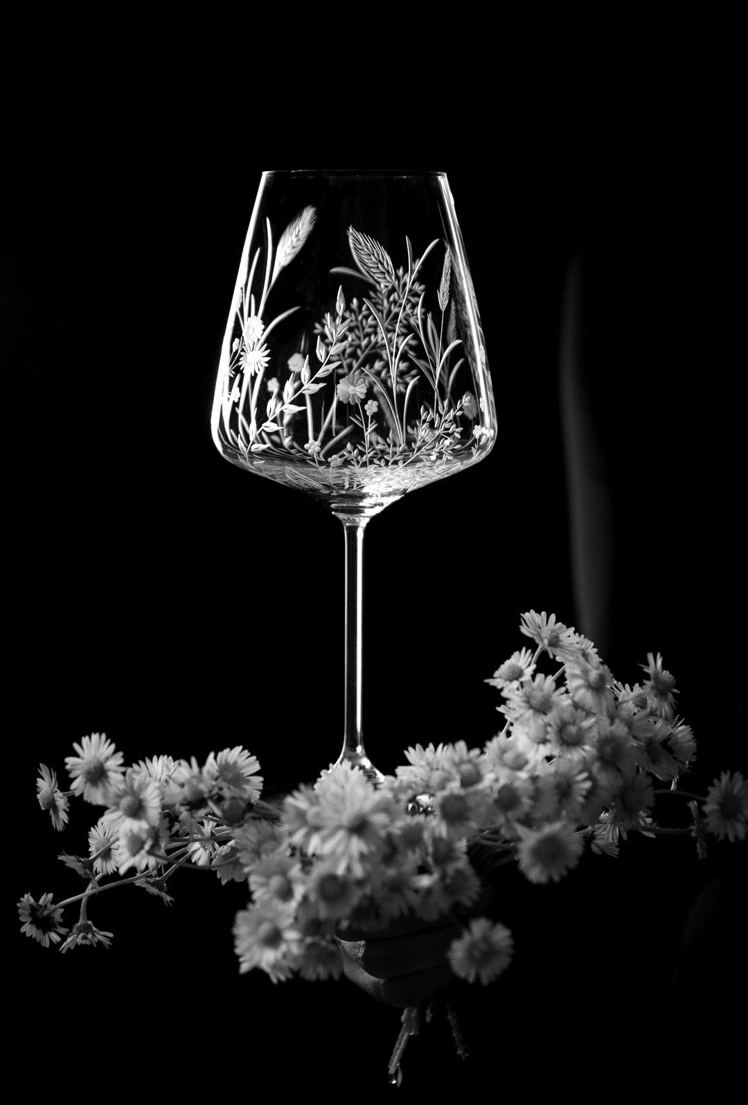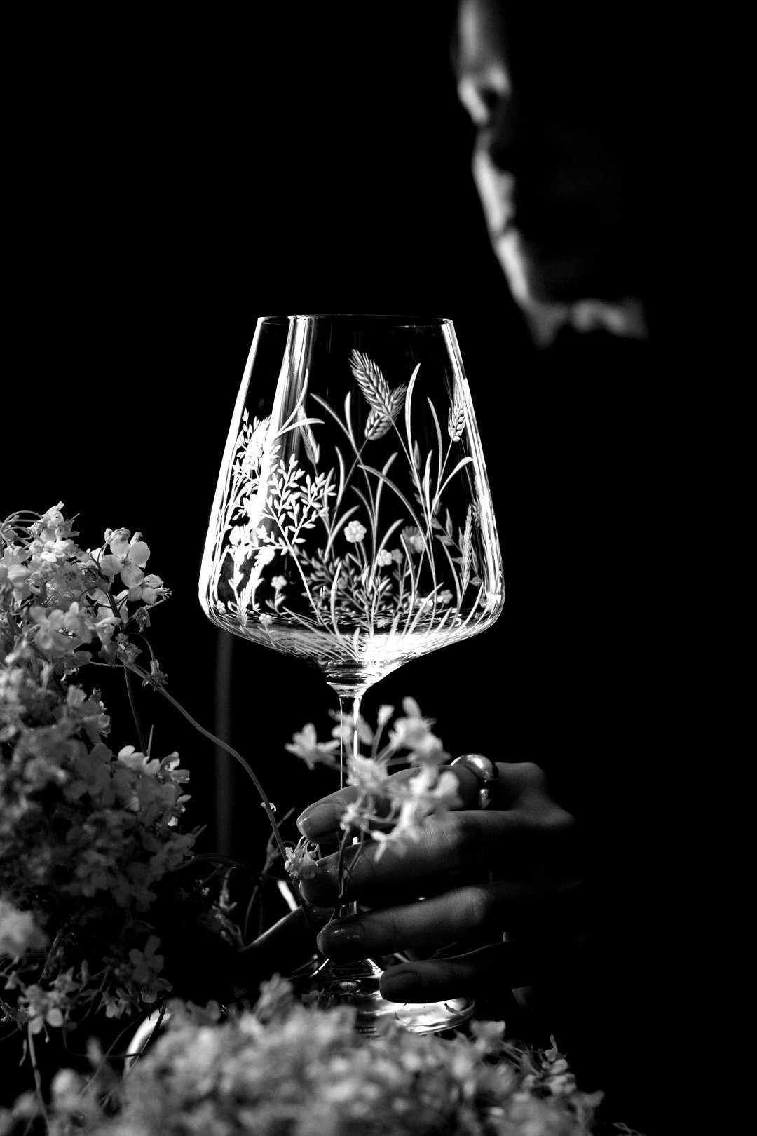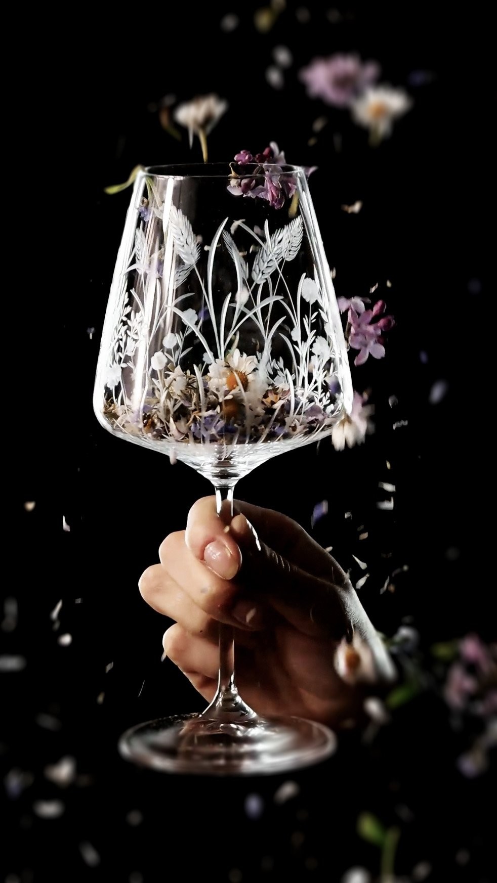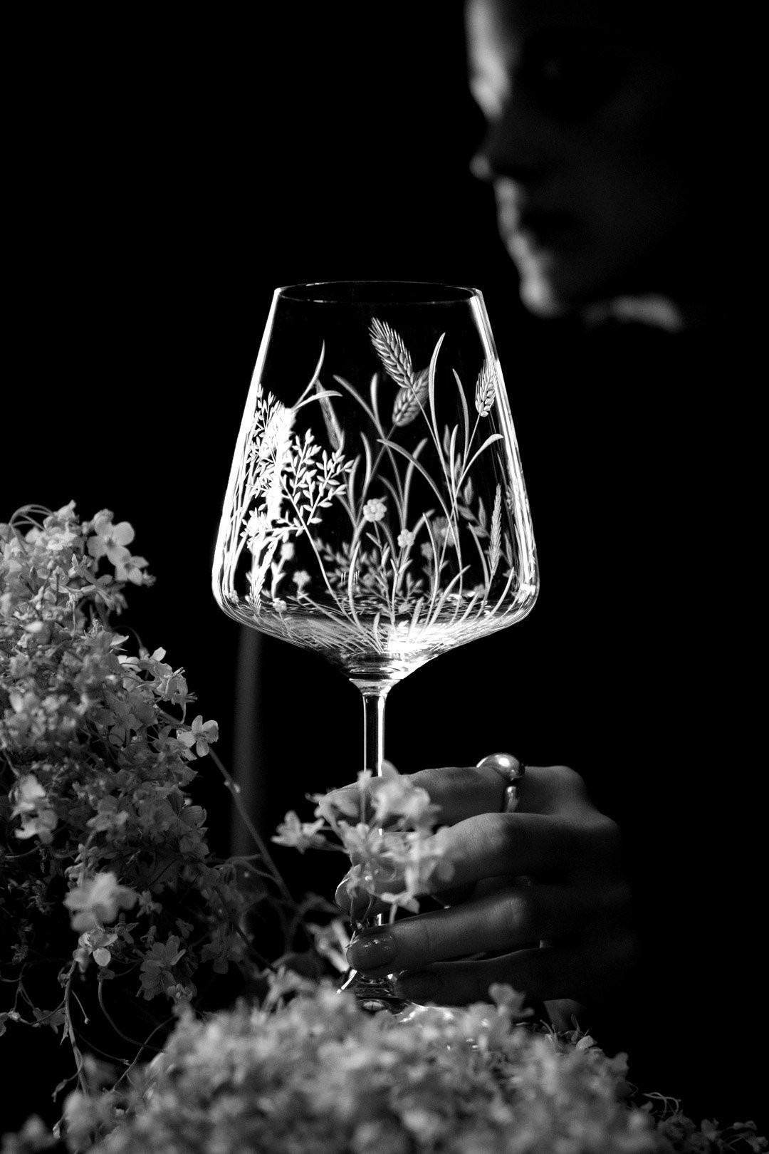 Ručně rytá sklenička Bloomy odkrývá křehkou krásu divokých květin, které jsou vytvořeny s péčí, lehkostí a láskou k detailu.