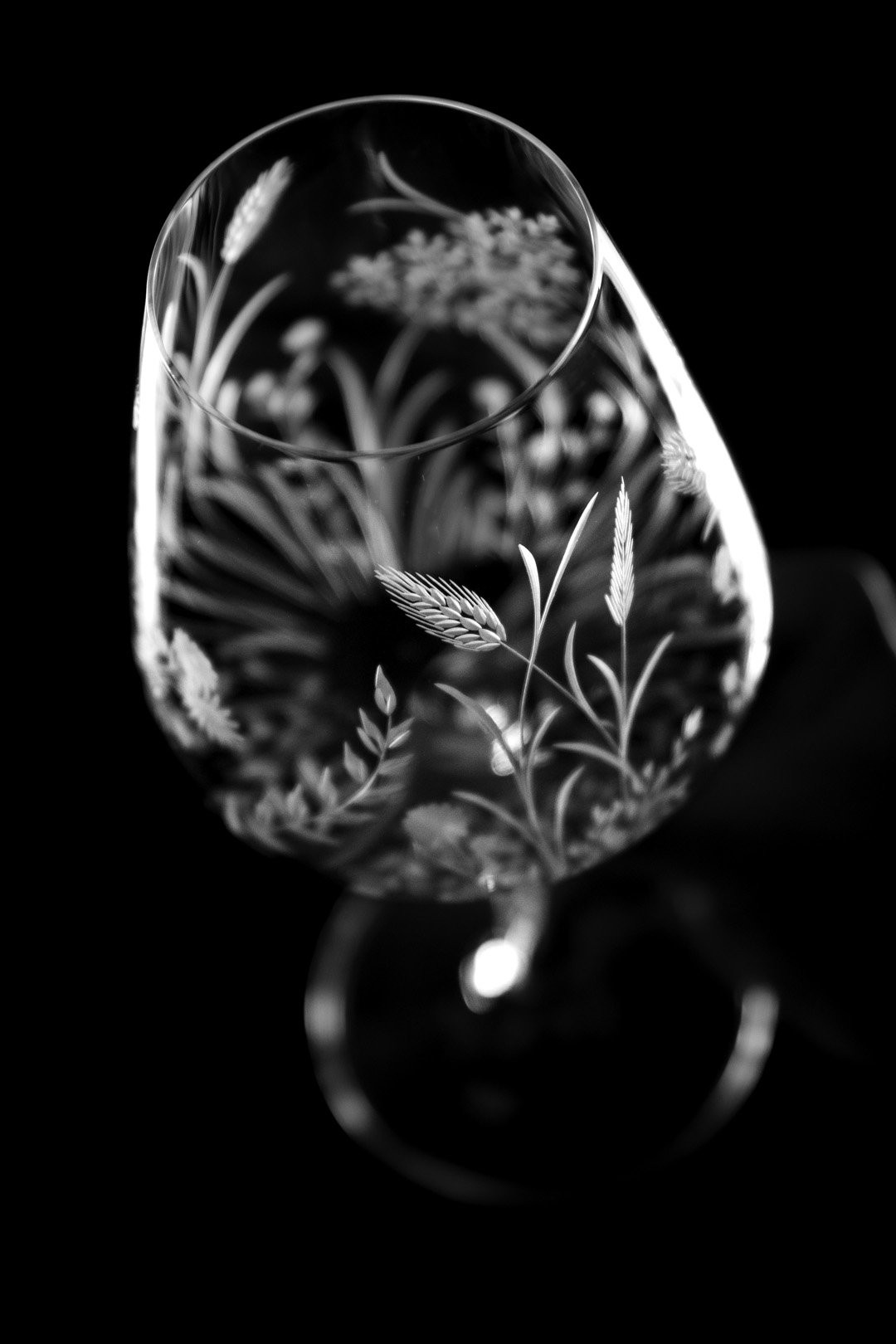 Sklo: Čiré, Ručně ryté, Bezolovnatý český křišťál