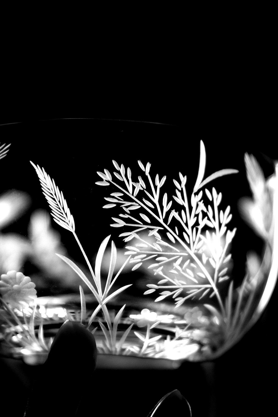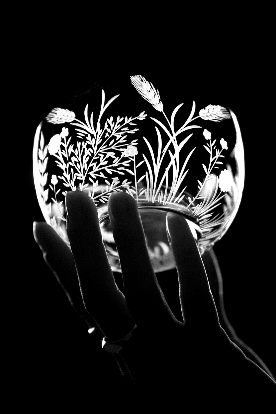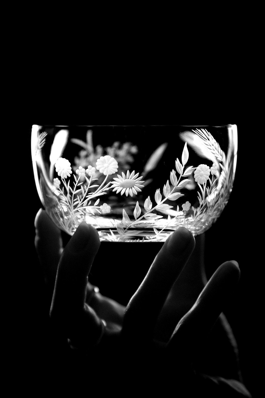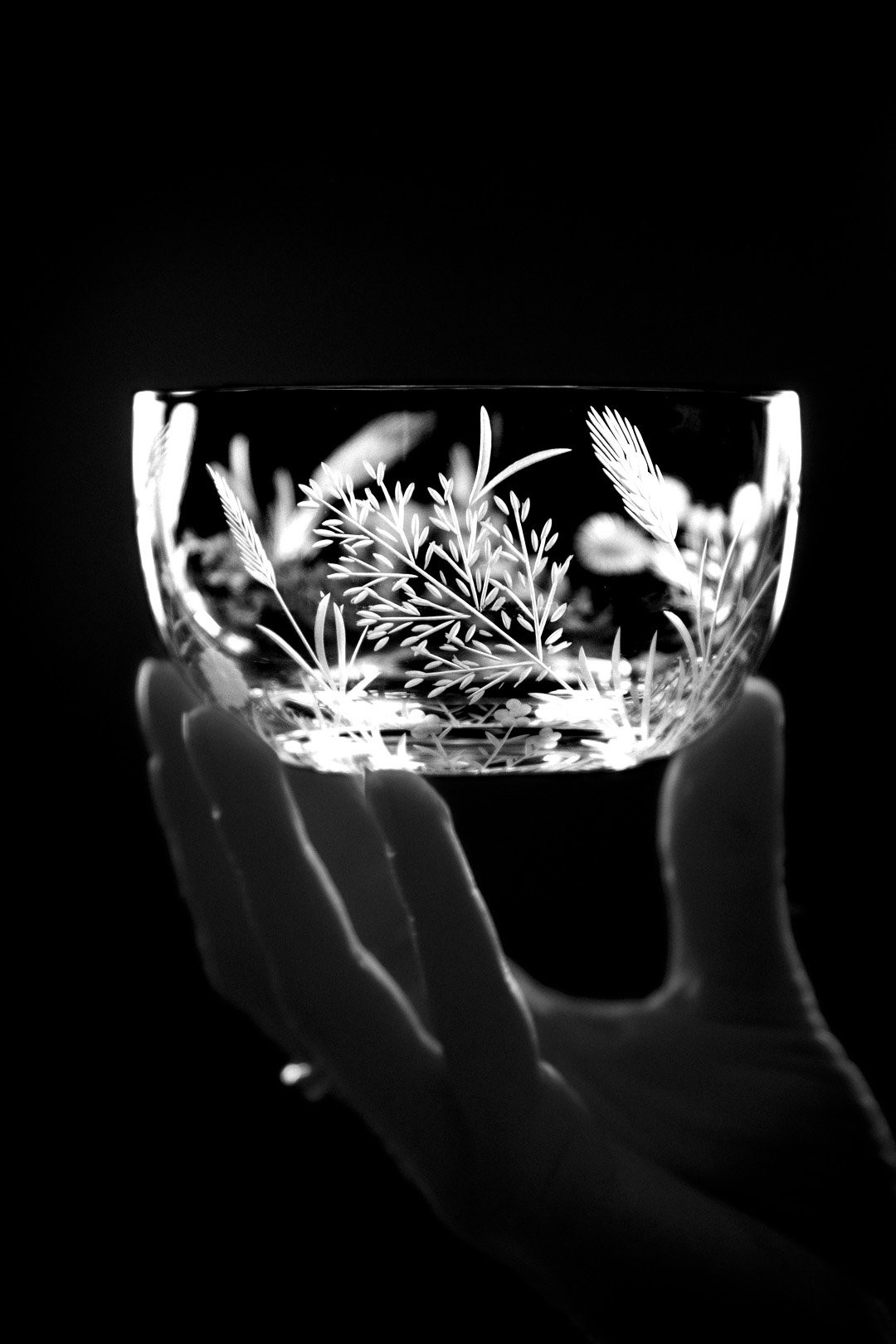 Sklo: Čiré, Ručně ryté, Bezolovnatý český křišťál