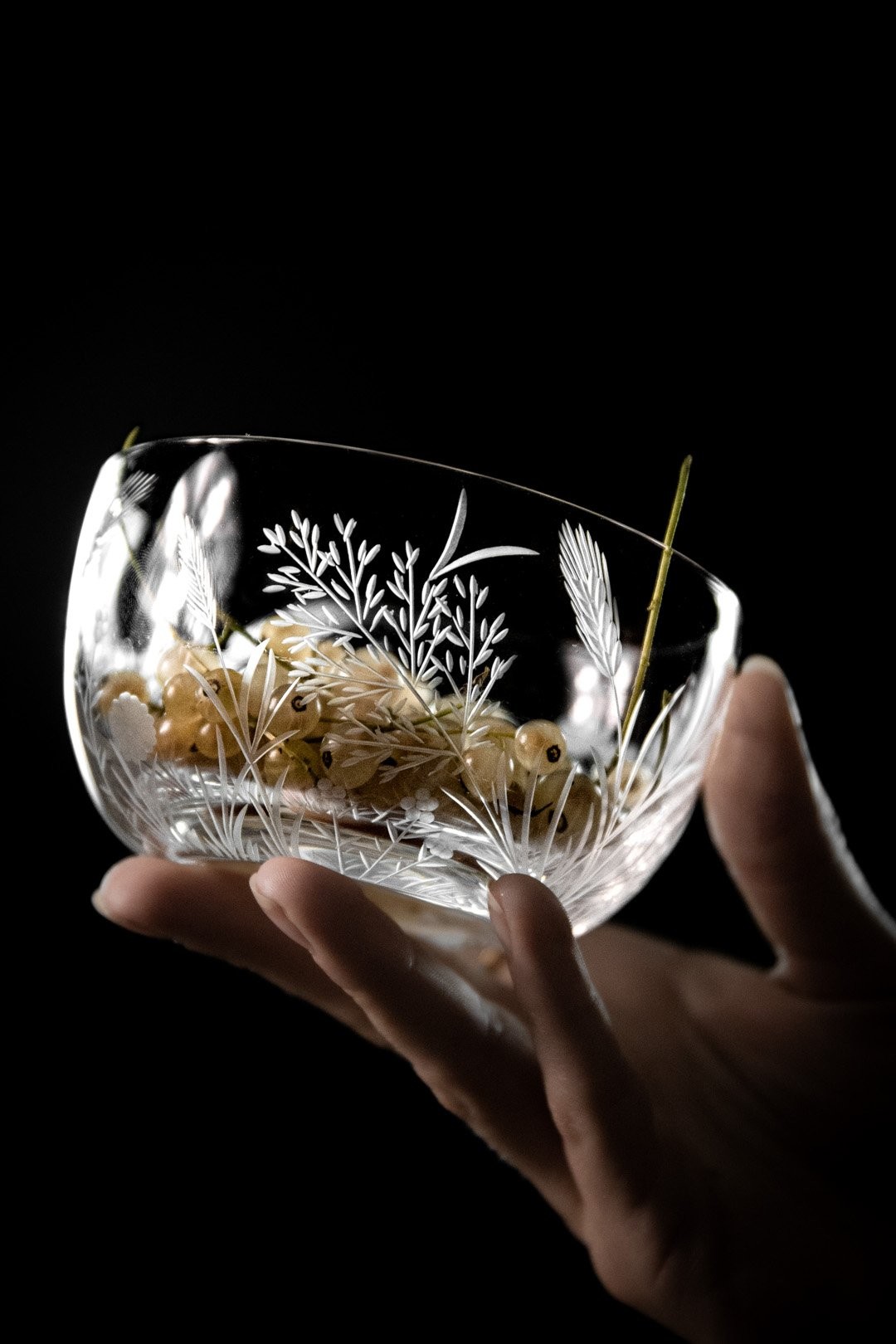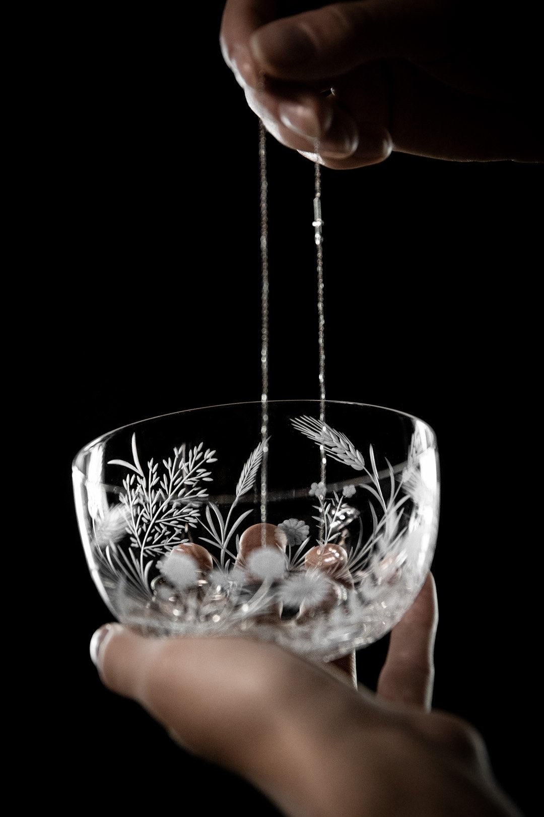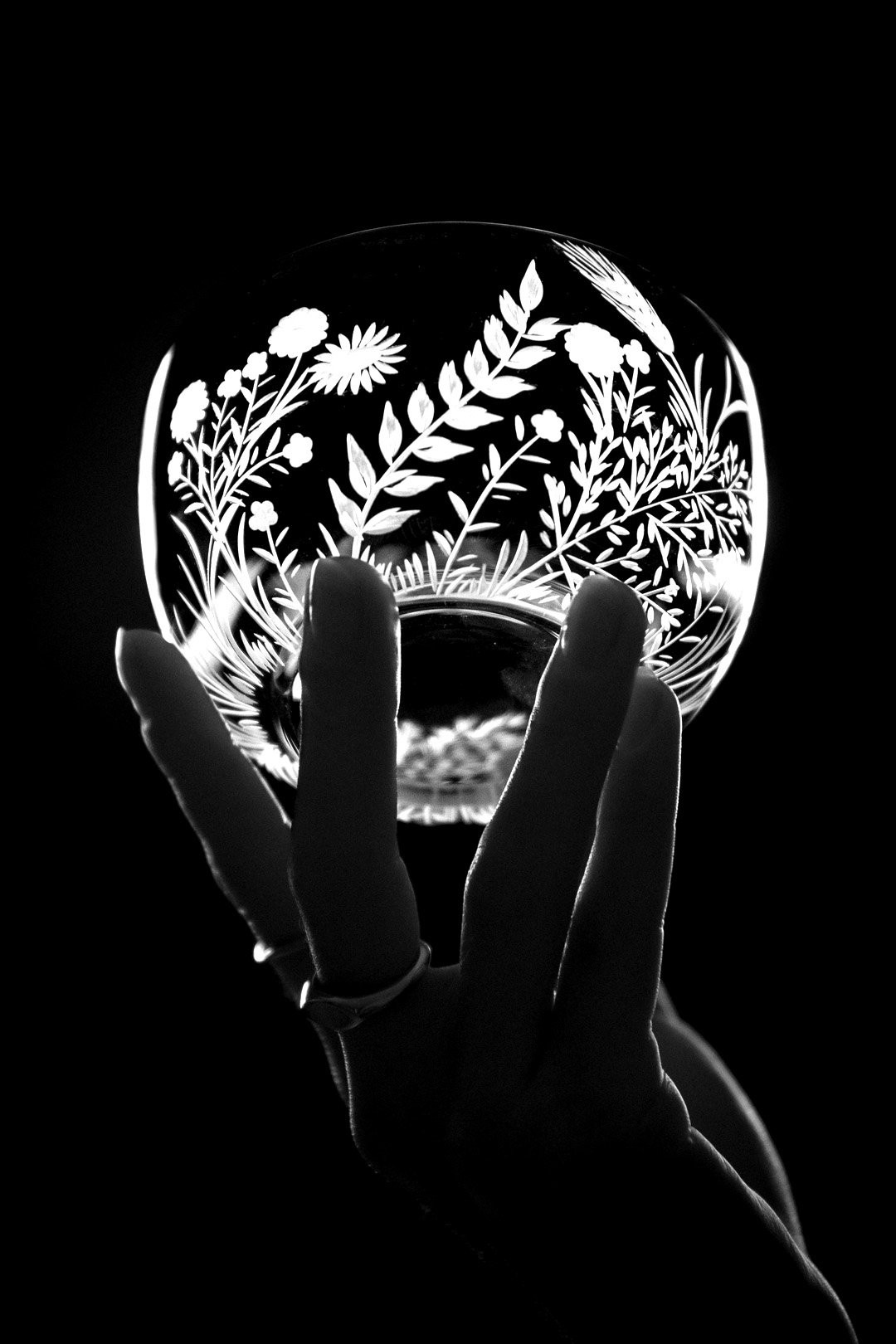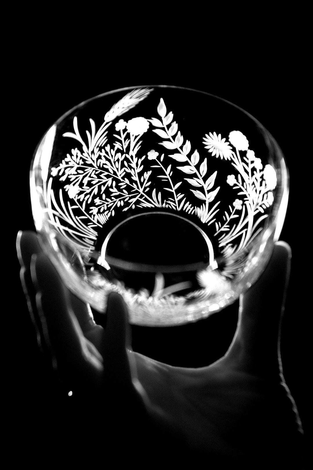 Sklo: Čiré, Ručně ryté, Bezolovnatý český křišťál