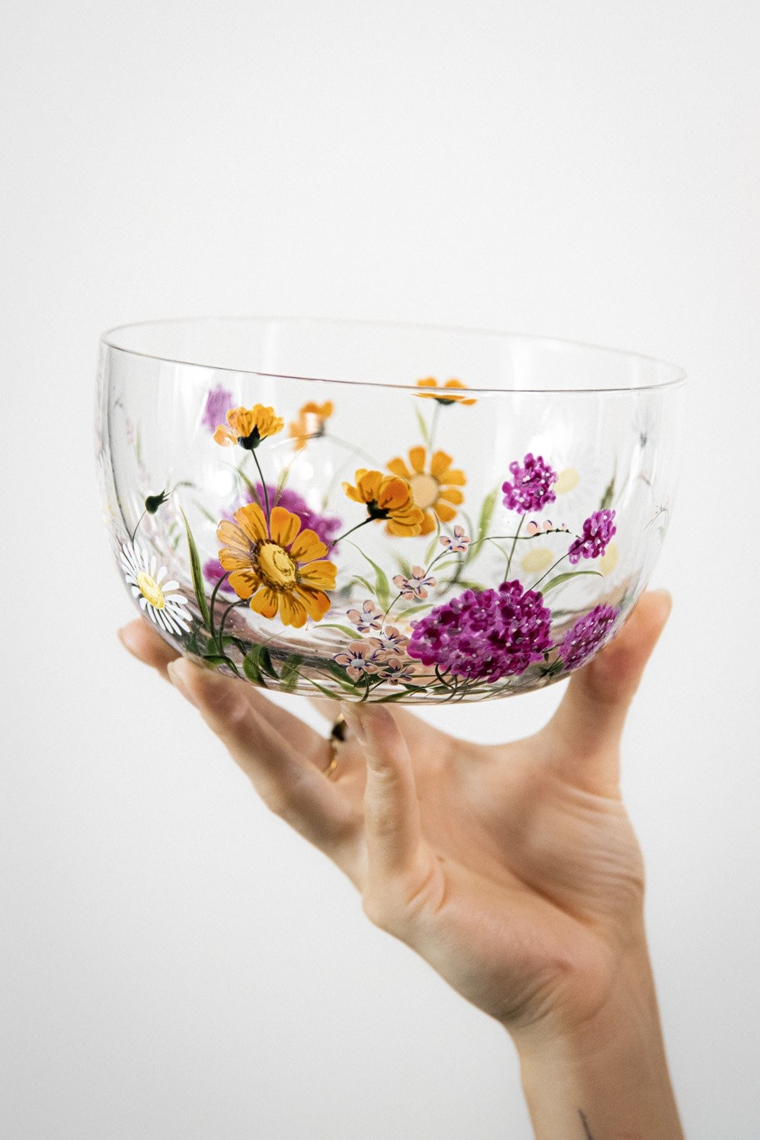 Ručně malované květy na misce Lush rozzáří každý okamžik barevnou radostí. Dopřejte si letní radosti při každé příležitosti.