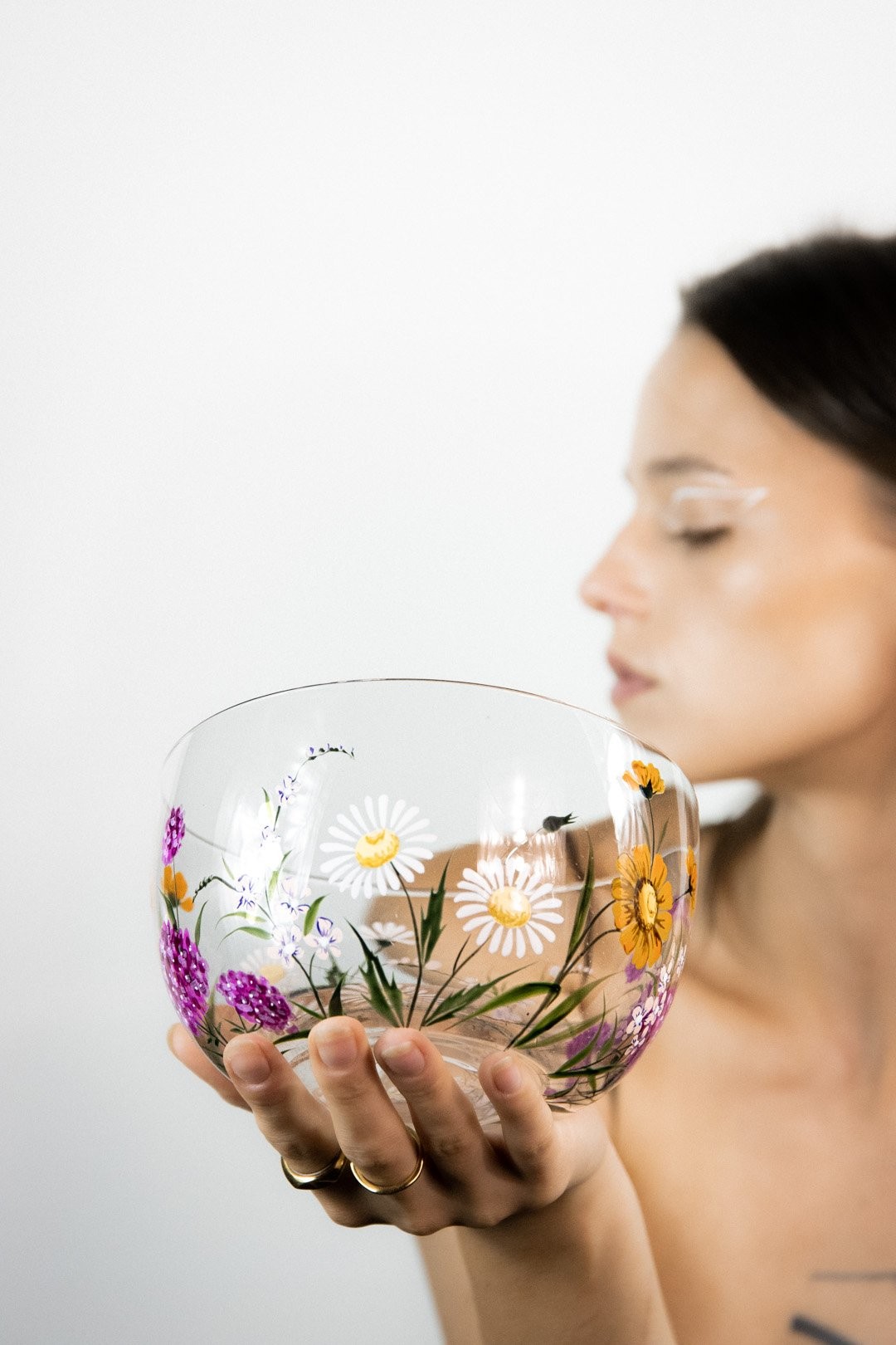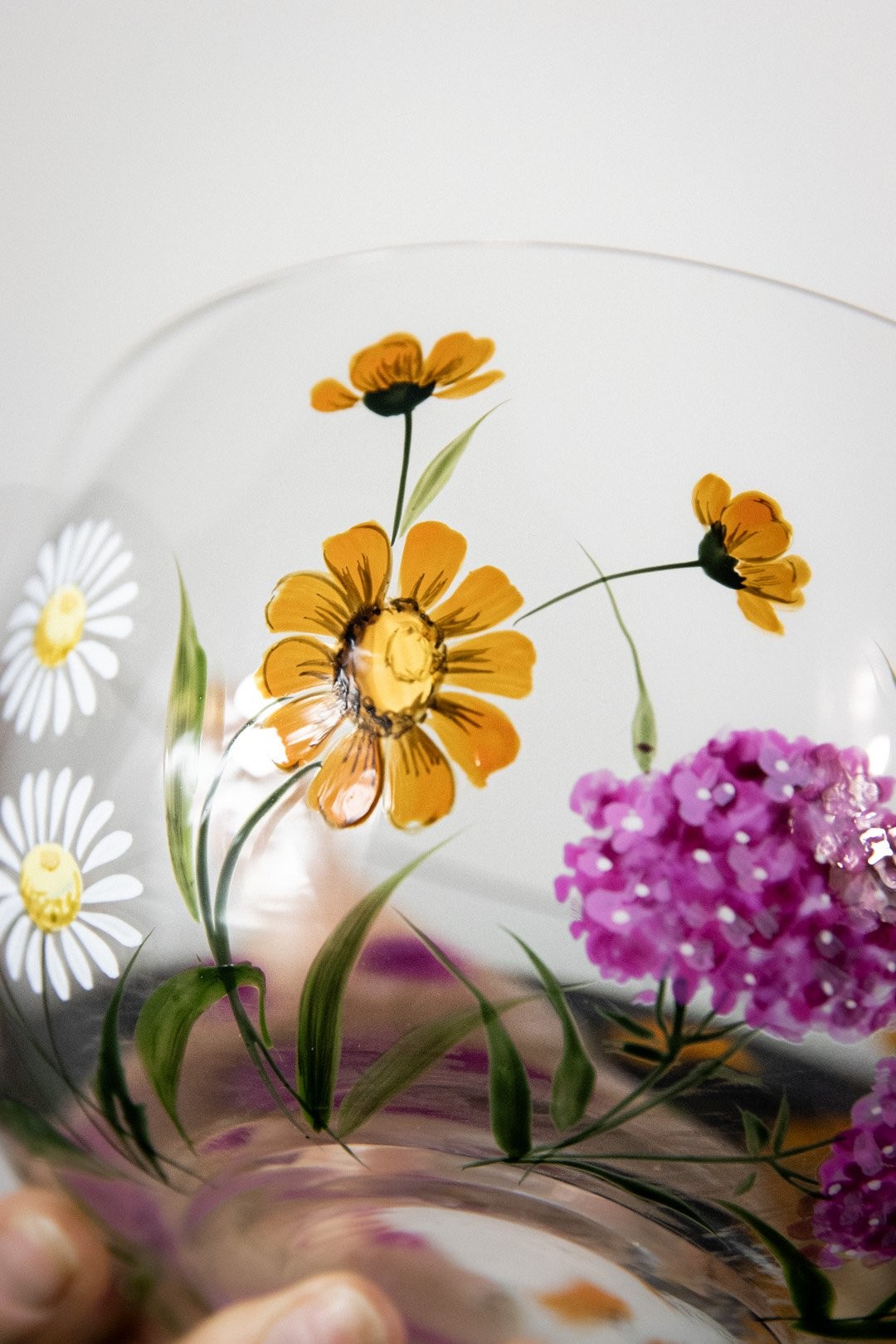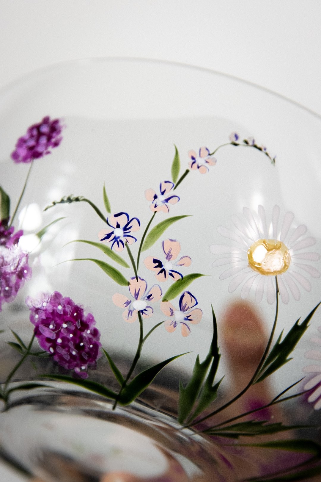 Sklo: Čiré, Ručně malované, Bezolovnatý český křišťál