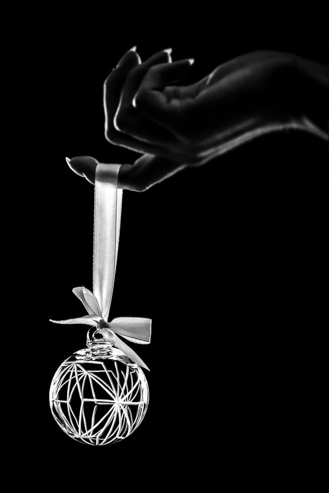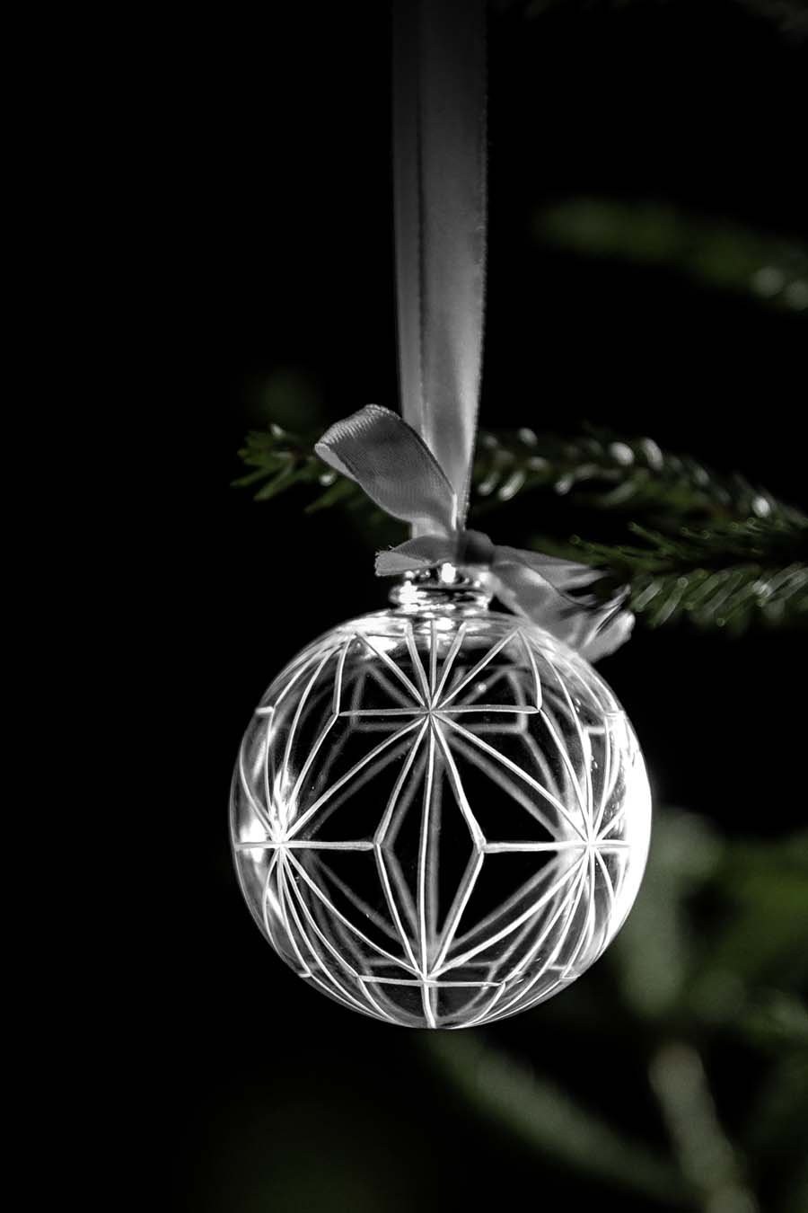 Glory, téměř geometrický design skládá motiv hvězd, které k vánocům neodmyslitelně patří. Propadněte kouzlu Vánoc s ručně rytými elegány na vašem stromečku.