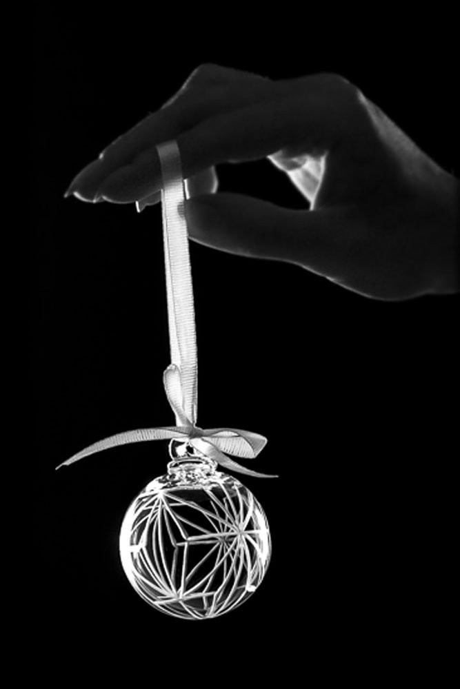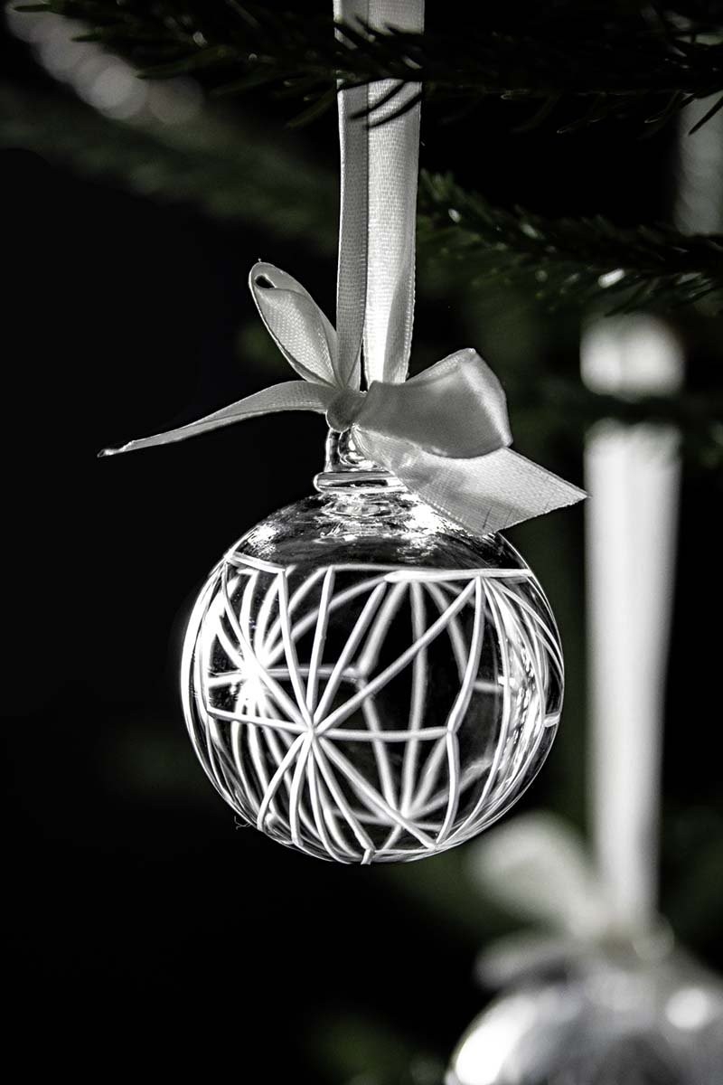 Glory, téměř geometrický design skládá motiv hvězd, které k vánocům neodmyslitelně patří. Propadněte kouzlu Vánoc s ručně rytými elegány na vašem stromečku.