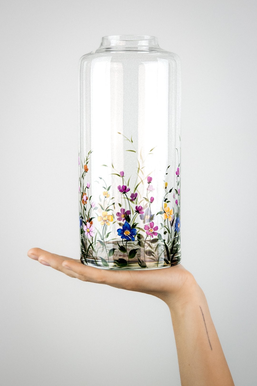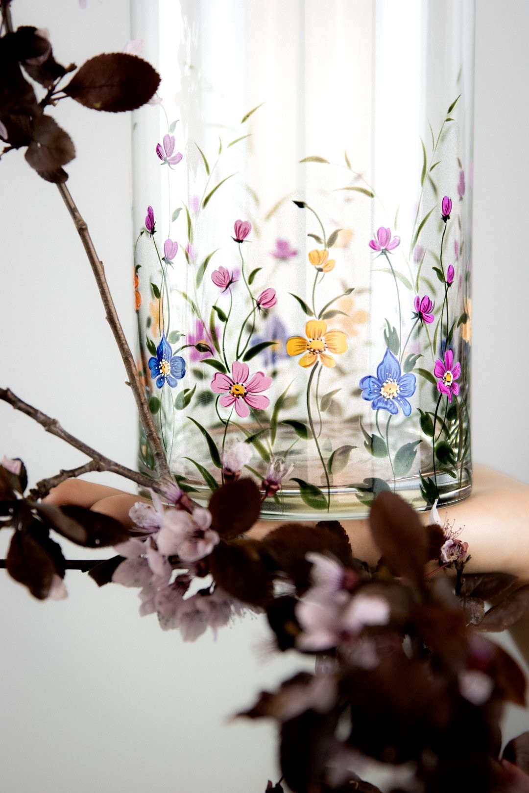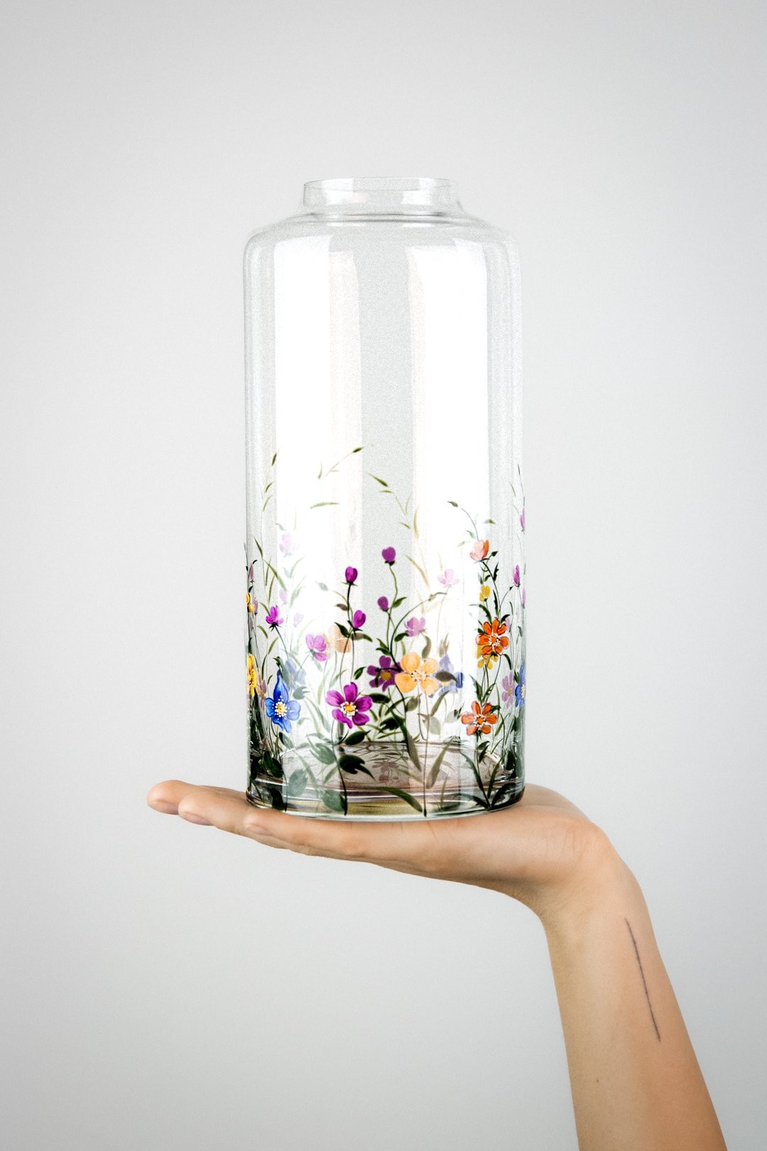 Ručně malovaná sklenička ROSELLE je oslavou barev, které rozzáří každý okamžik. Bohaté květy v pestrých odstínech působí živě, radostně a přirozeně přitahují pohled. Jejich záře vnáší do každodenních chvílí lehkost a krásu, která vykouzlí úsměv při každém doteku a s každým pohledem tak připomíná, jak okouzlující může být svět plný květů všech druhů.