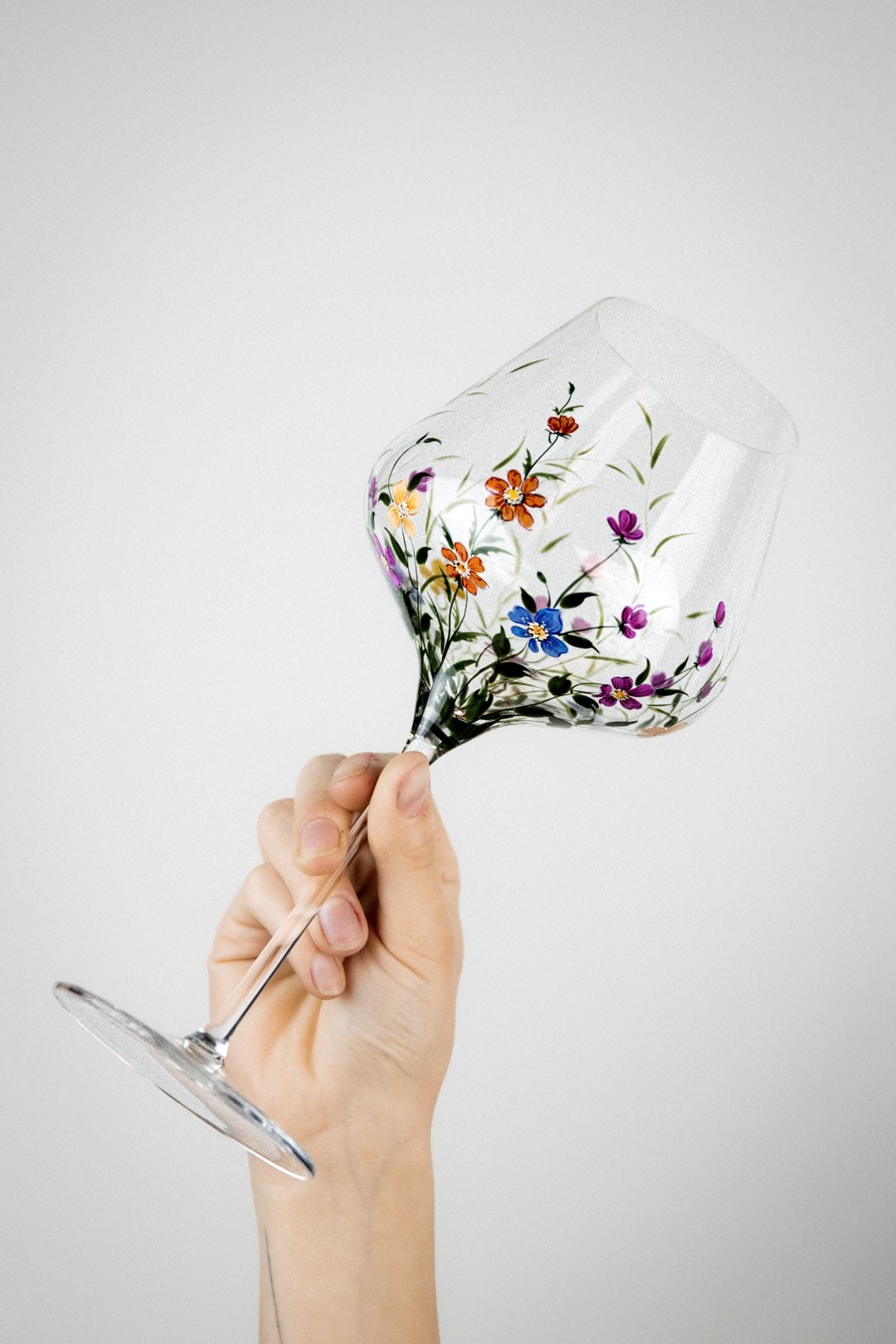 Ručně malovaná sklenička ROSELLE je oslavou barev, které rozzáří každý okamžik. Bohaté květy v pestrých odstínech působí živě, radostně a přirozeně přitahují pohled. Jejich záře vnáší do každodenních chvílí lehkost a krásu, která vykouzlí úsměv při každém doteku a  s každým douškem tak připomíná, jak okouzlující může být svět plný květů všech druhů.