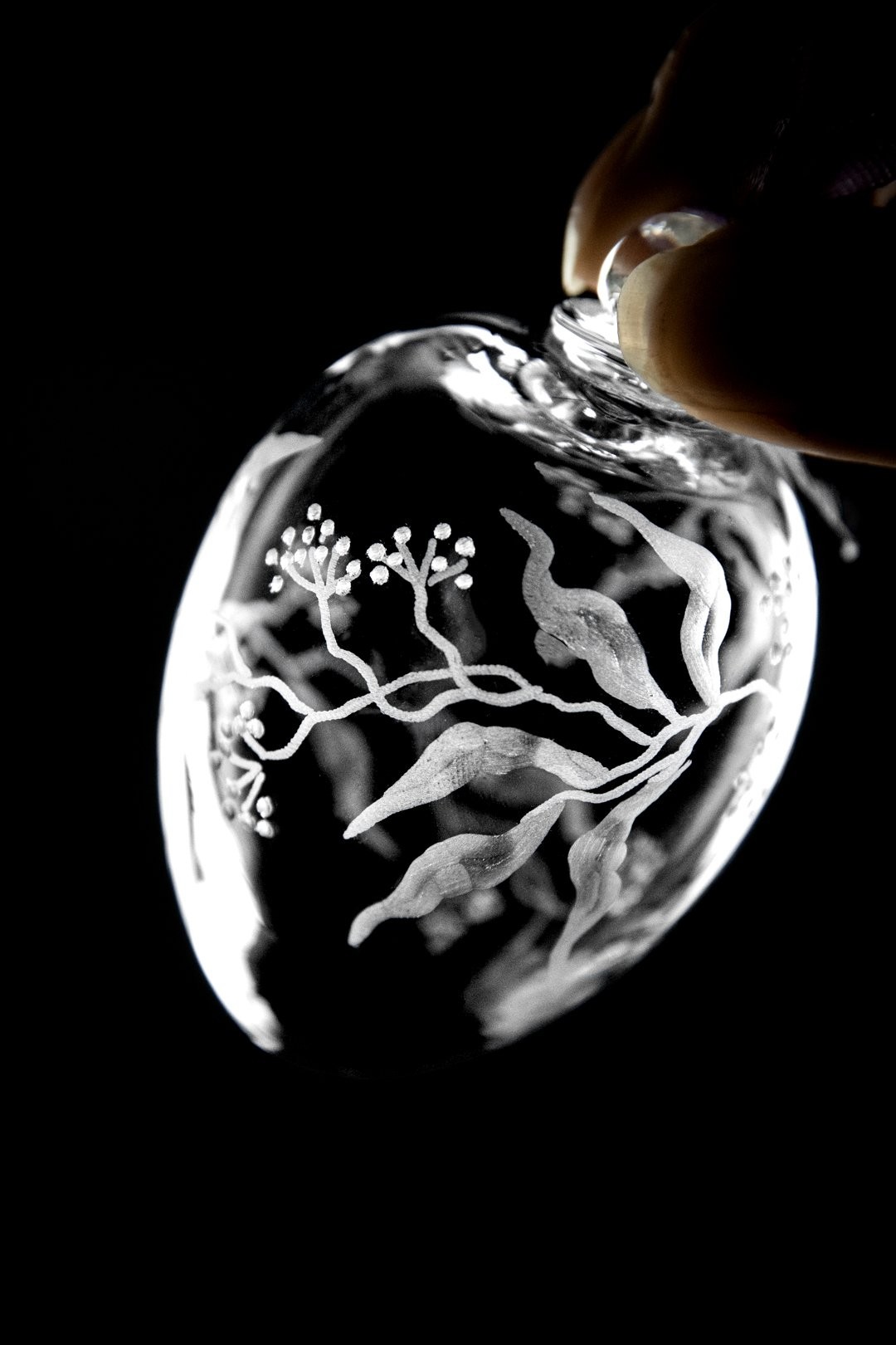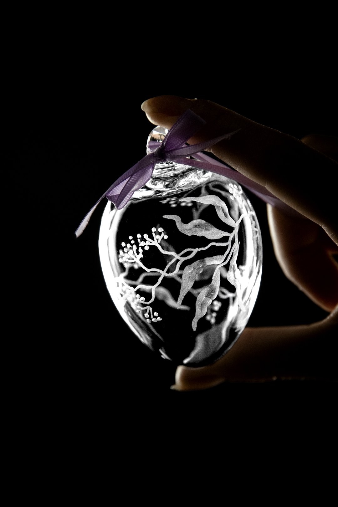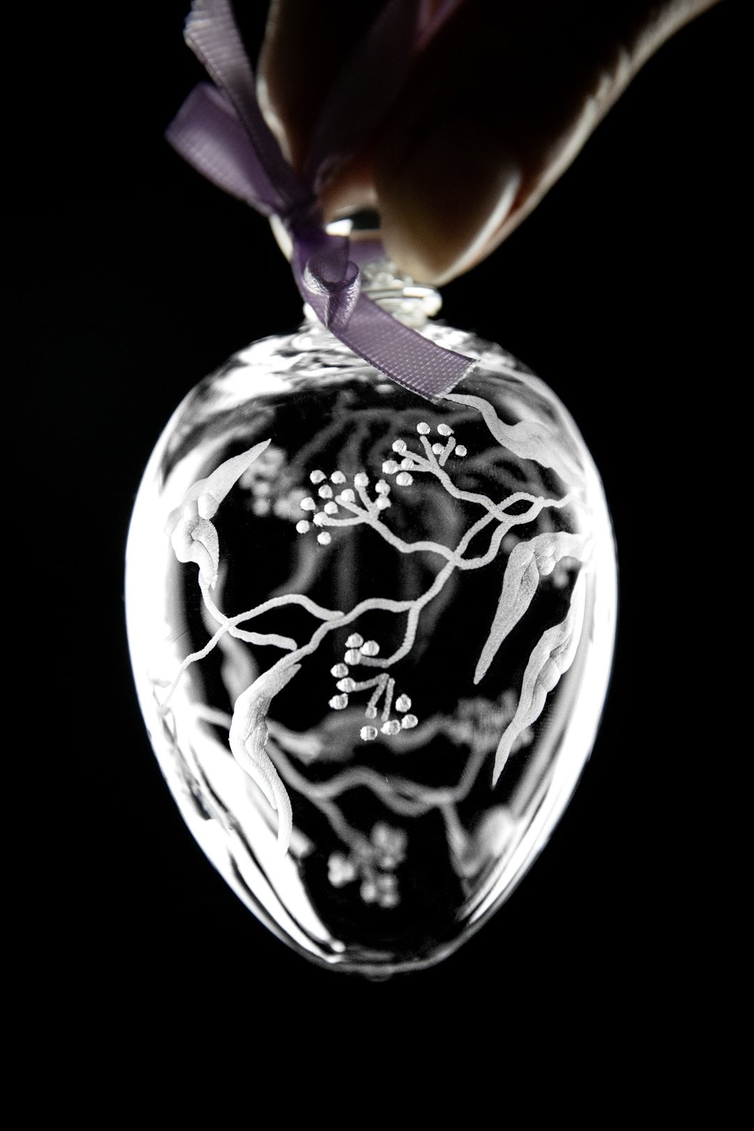 Přivítejte jaro s českými ručně foukanými vajíčky. Křišťálové vajíčko objímá ručně rytý motiv po celém obvod, který podtrhne jarní atmosféru v každé domácnosti.