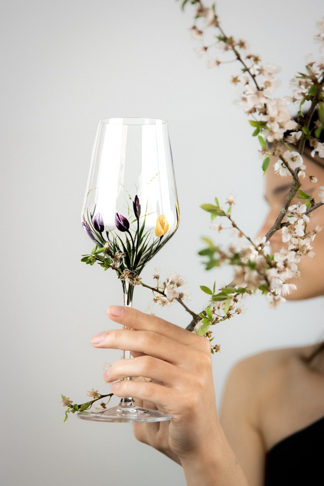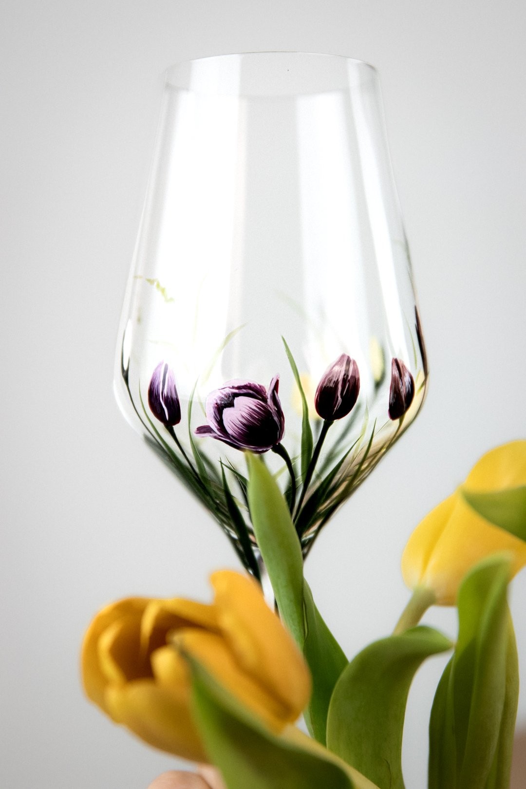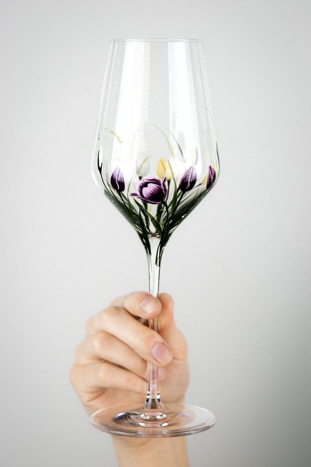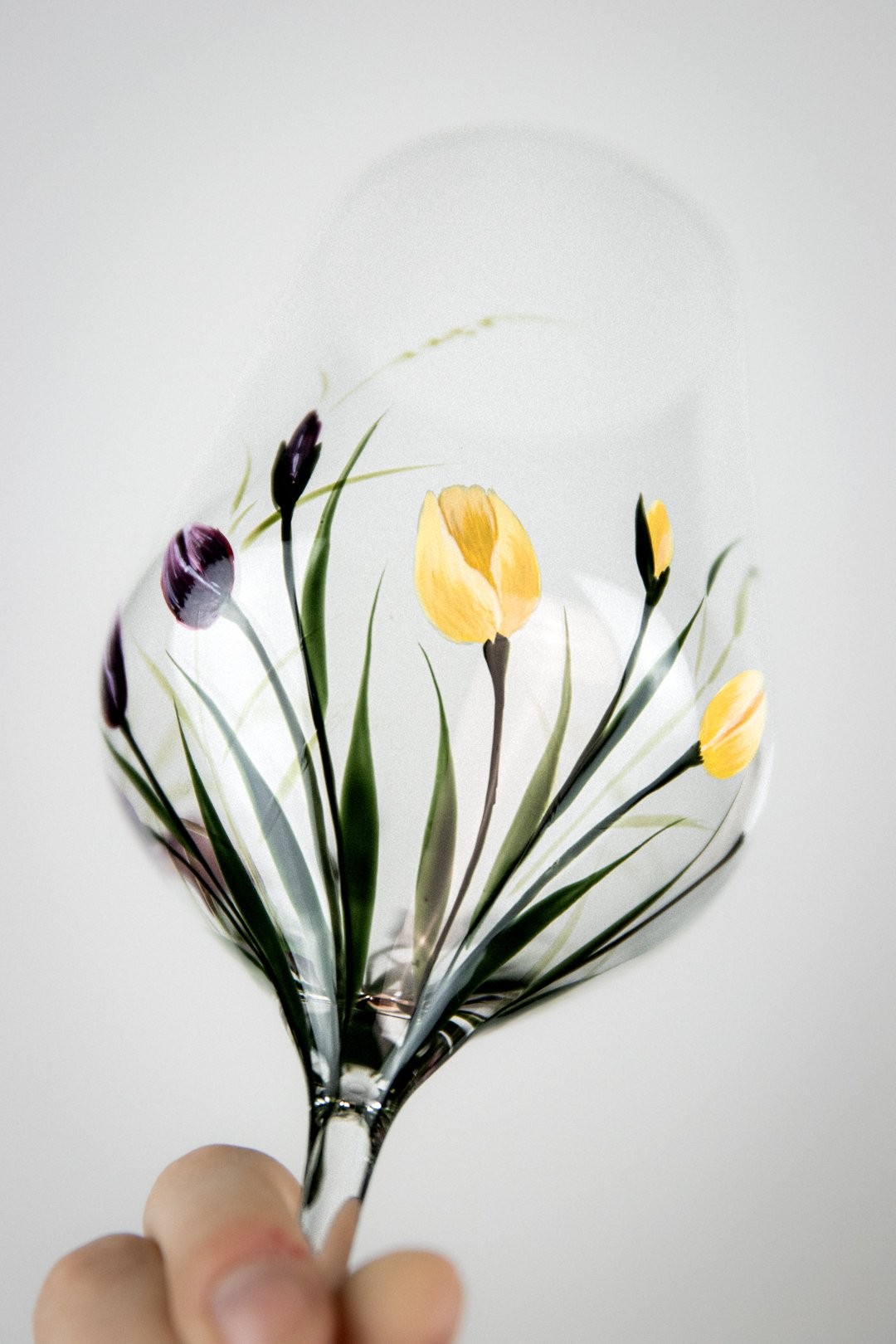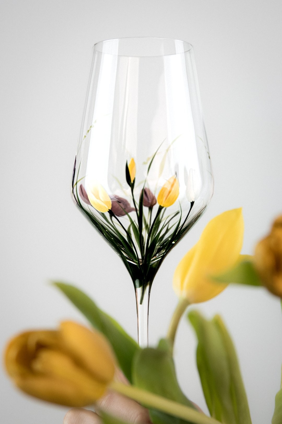 Ručně malovaná sklenička TULIPS je oslavou jednoduché krásy jara. Jemný motiv tulipánů obepíná celý kalíšek a vytváří dojem, jako by květy sklo něžně objímaly. Každý detail je malovaný s citem pro lehkost a harmonii, aby vynikla čistota tvaru i půvab květin. TULIPS přináší do každého dne klid, radost a kousek rozkvetlé zahrady, kterou si můžete vychutnat s každým douškem.