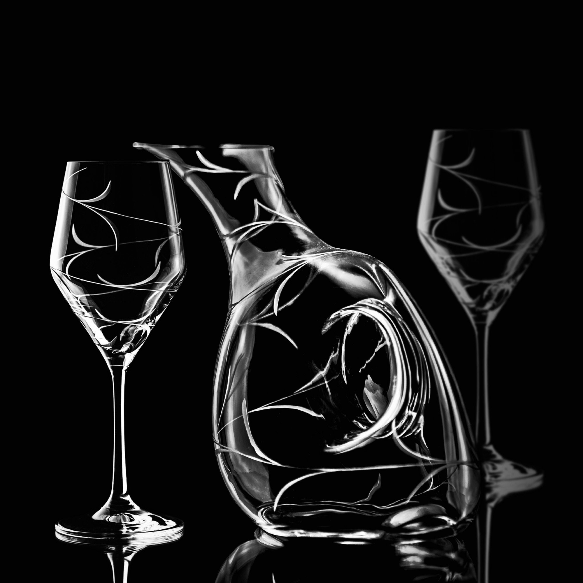 Dekor Ambience ve Vás vyvolá pocit nikdy nekončící klidné atmosféry a pohody. Precizní ruční rytina obemyká celý obvod kalichu a Vaše víno je tak slušivě podníceno ke slastnému ochutnání.