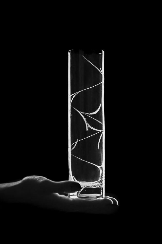 Design Ambience ve Vás vyvolá pocit nikdy nekončící klidné atmosféry a pohody. Precizní ruční rytina obemyká celý obvod vázy a veškerý její obsah je tak slušivě podnícen k pozornosti.