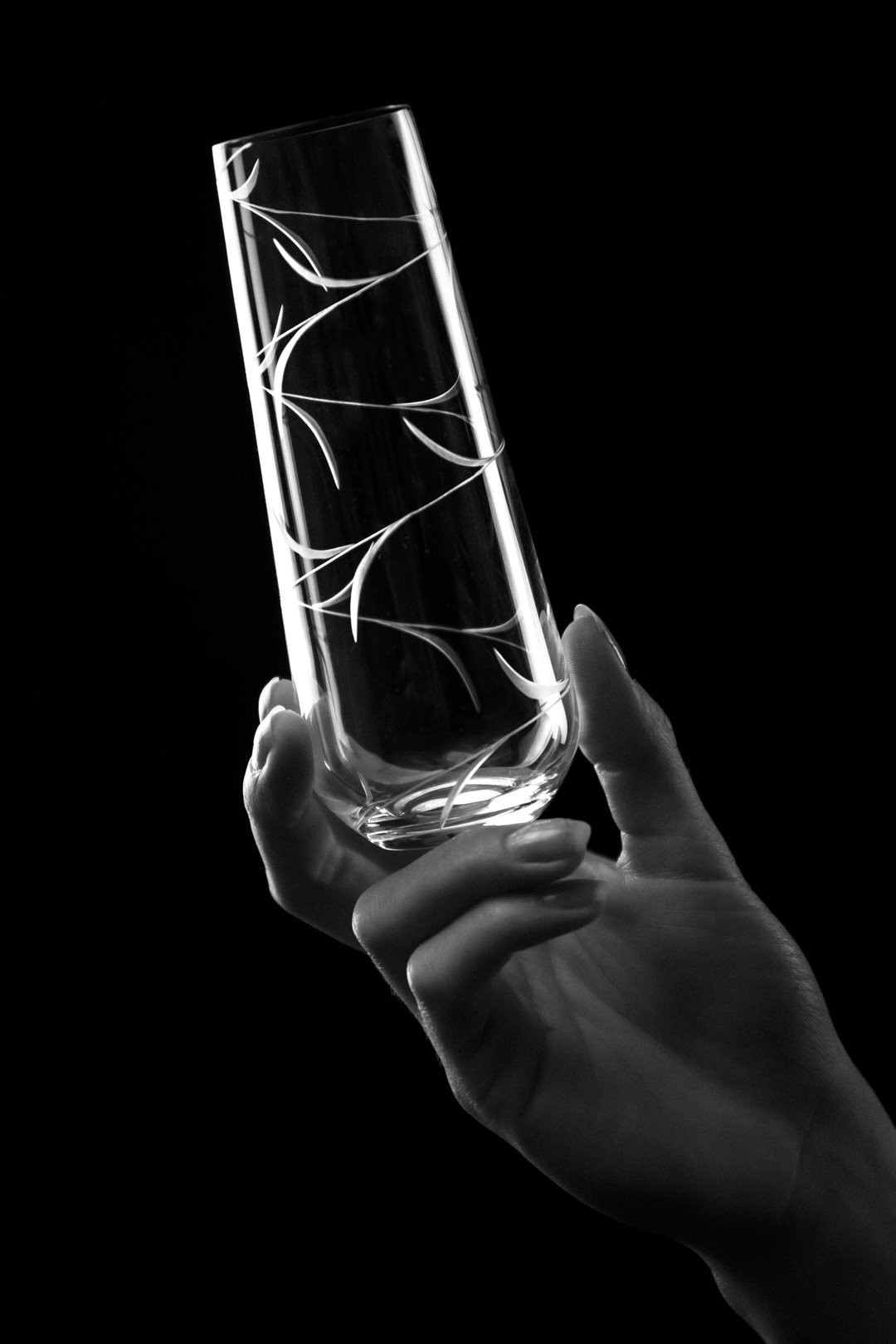 Dekor Ambience ve Vás vyvolá pocit nikdy nekončící klidné atmosféry a pohody. Precizní ruční rytina obemyká celý obvod kalichu a Vaše prosecco je tak slušivě podníceno ke slastnému ochutnání.