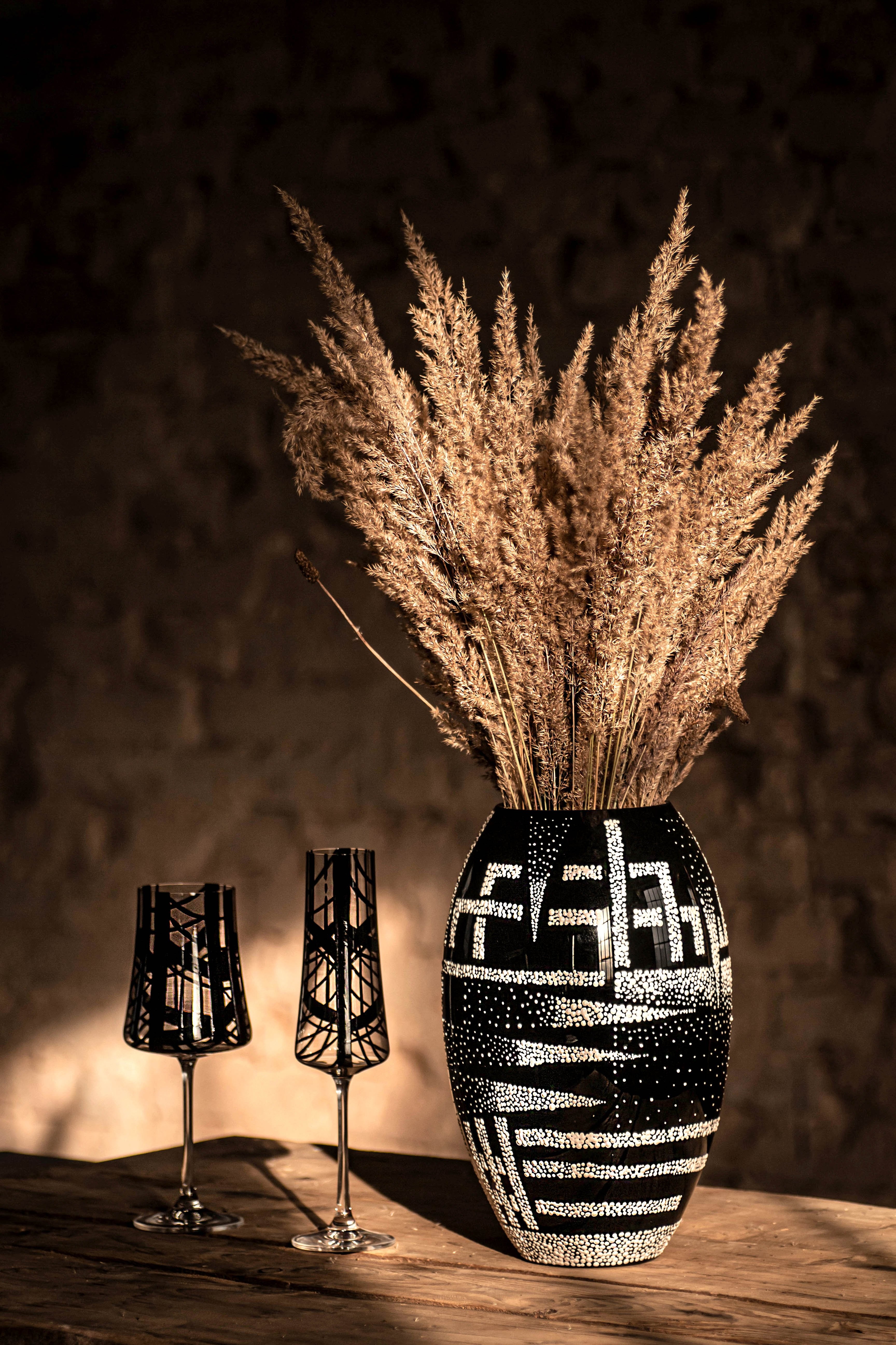Motiv Art nouveau Vás upoutá a už nenechá na sebe zapomenout. Nedovolí, aby ho cokoliv zastínilo, ba naopak spíše podpořilo jeho výraznost a dominanci. Sklenice na červené víno se stane Vaším nepostradatelným společníkem v domácnosti. Podívejte se i na jiné umělecké sklo z této řady a slaďte svůj stůl k extravagantní dokonalosti.