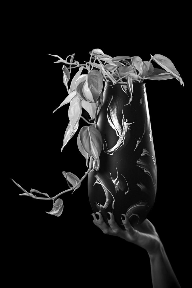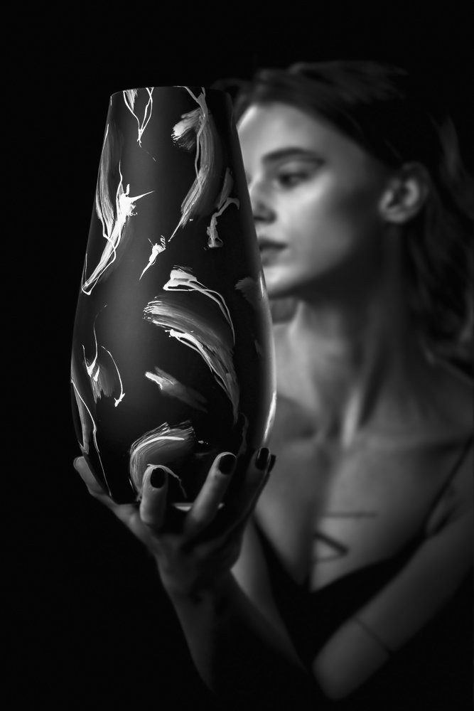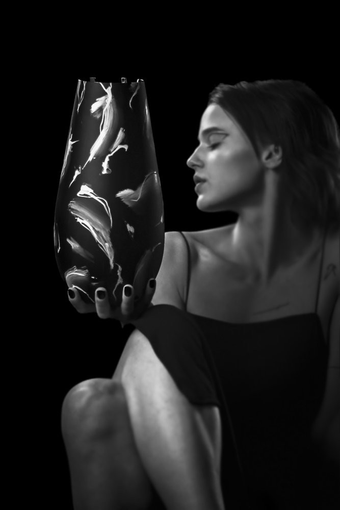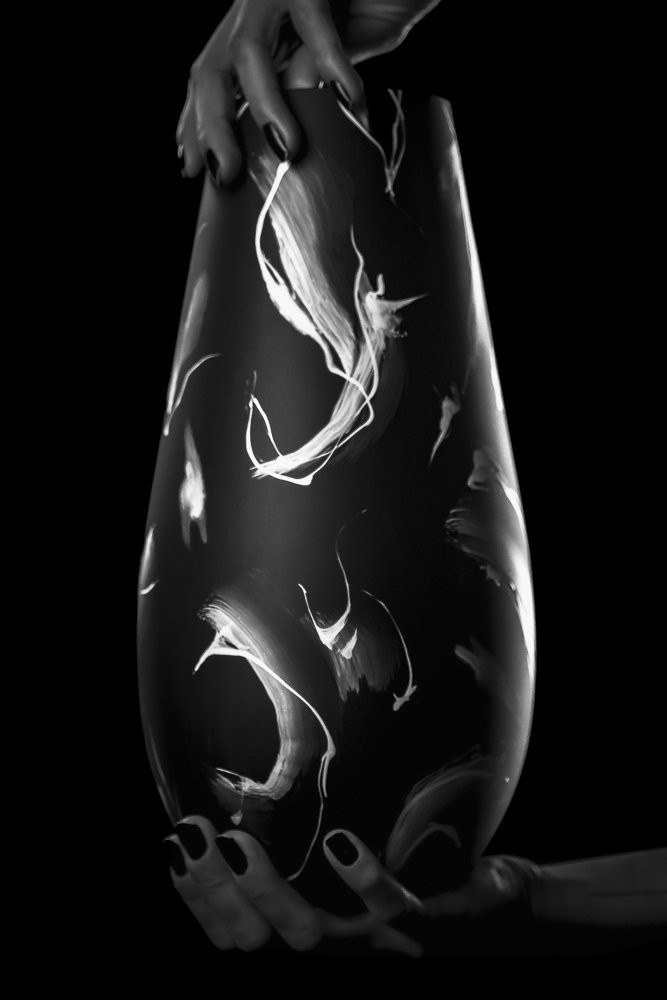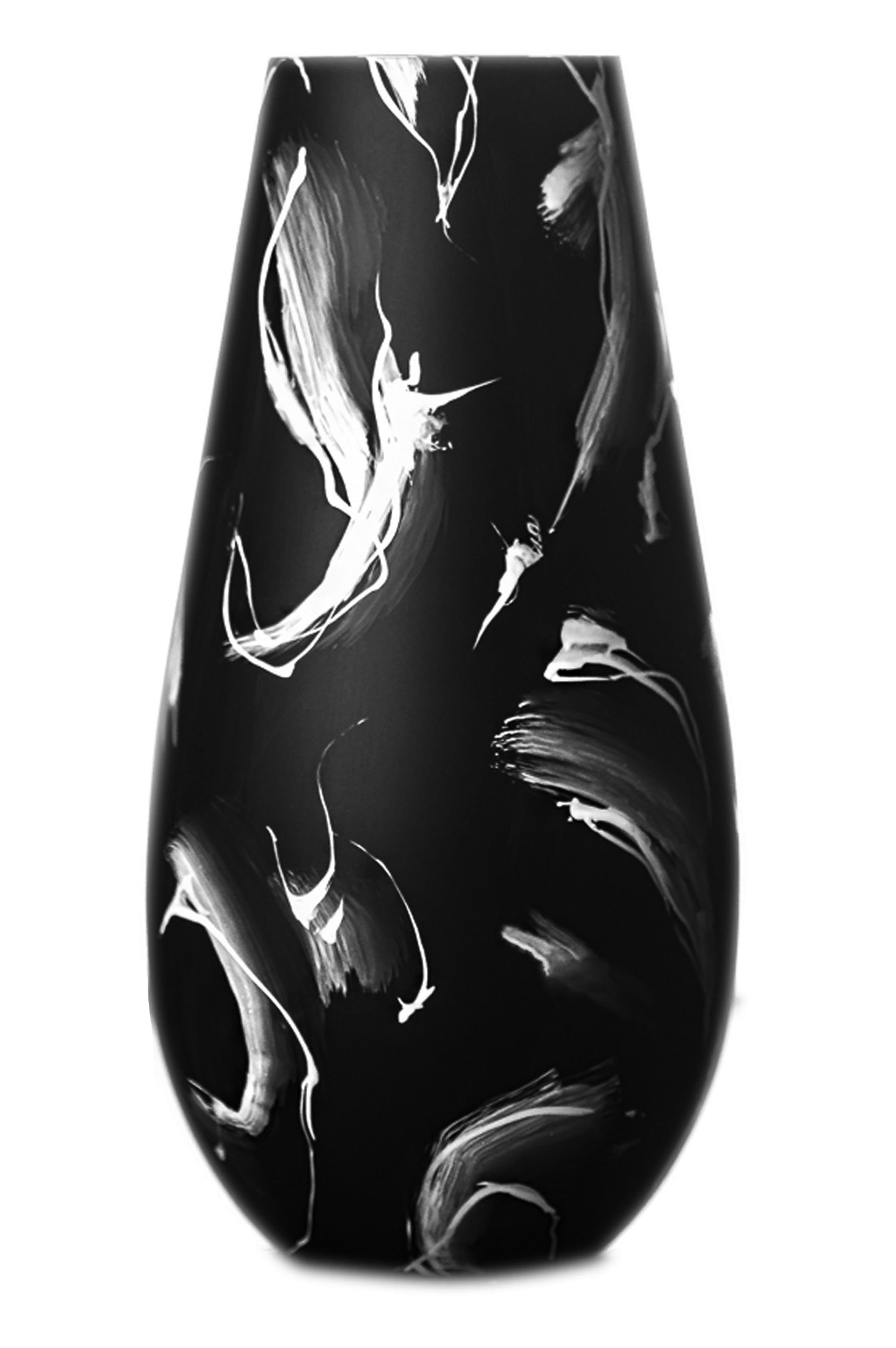 Kolekce Bastille Vás svou bílou malbou na černém podkladu beznadějně pohltí. Tato 30 cm abstraktní váza se stylově vyjme v každé místnosti a to i bez naplnění. Tahy jsou při ruční malbě vedeny pocity malíře, a proto může docházet k jemným rozdílům tvořícím jedinečný originál. Vsaďte na abstrakci a pozvěte tento originál k sobě domů.
