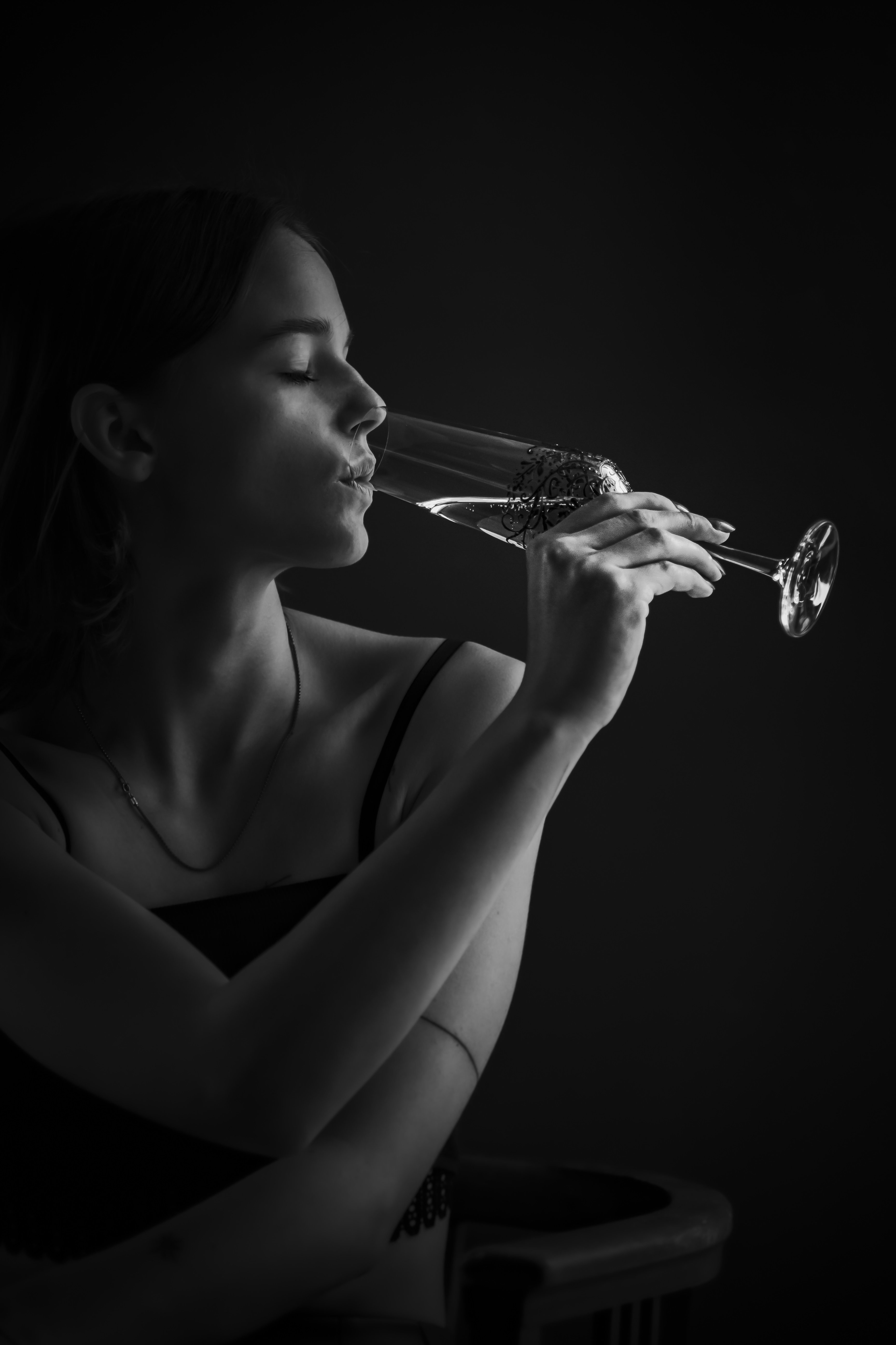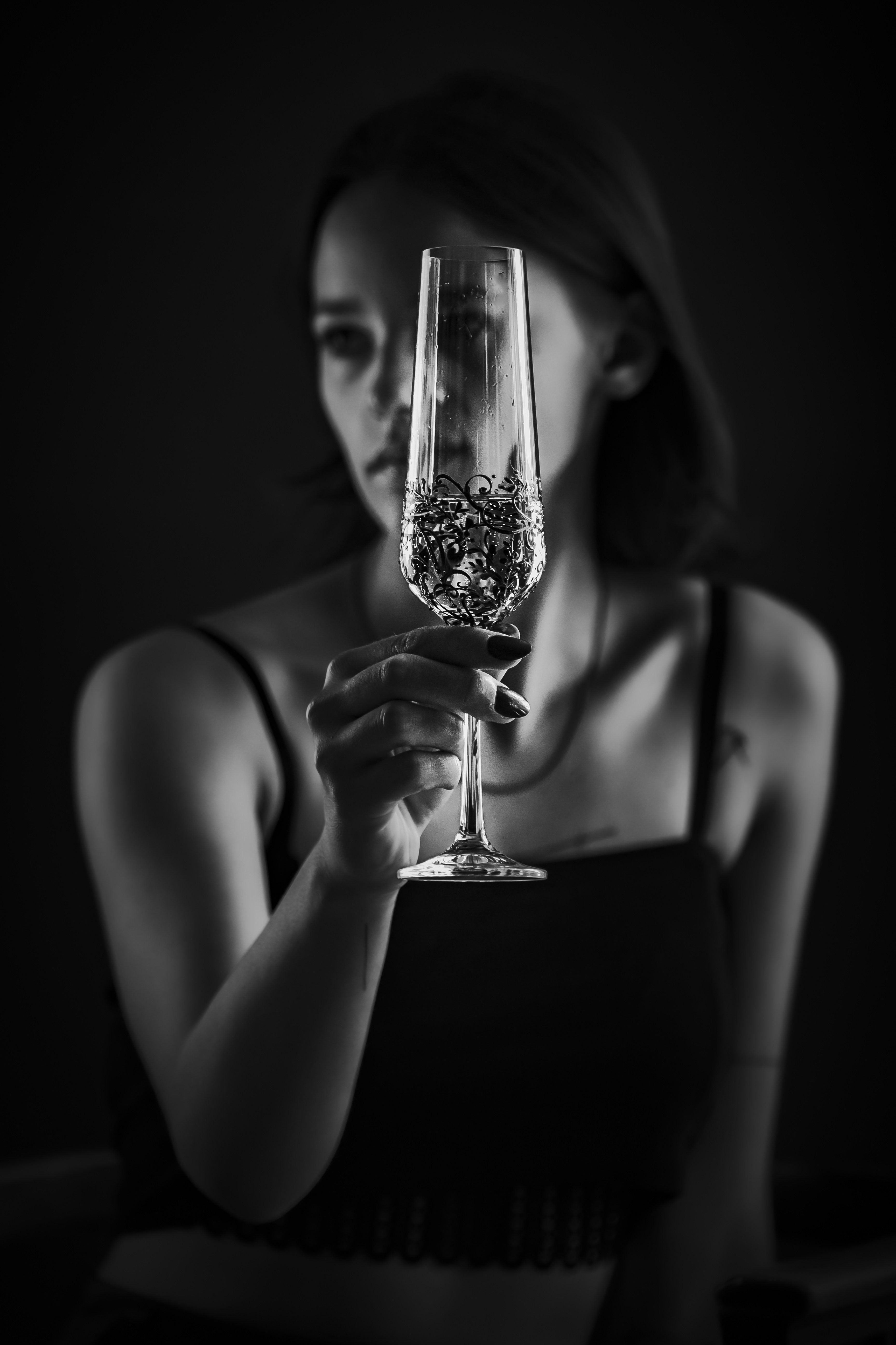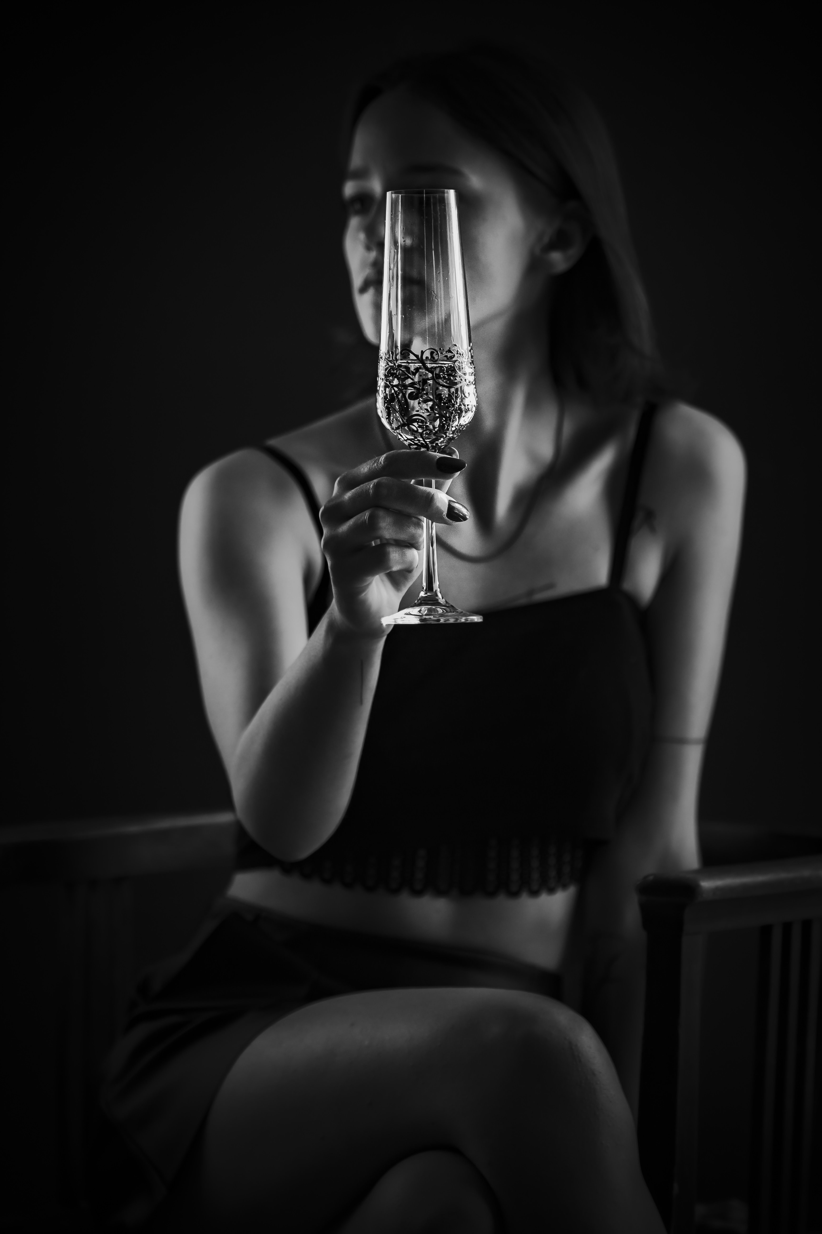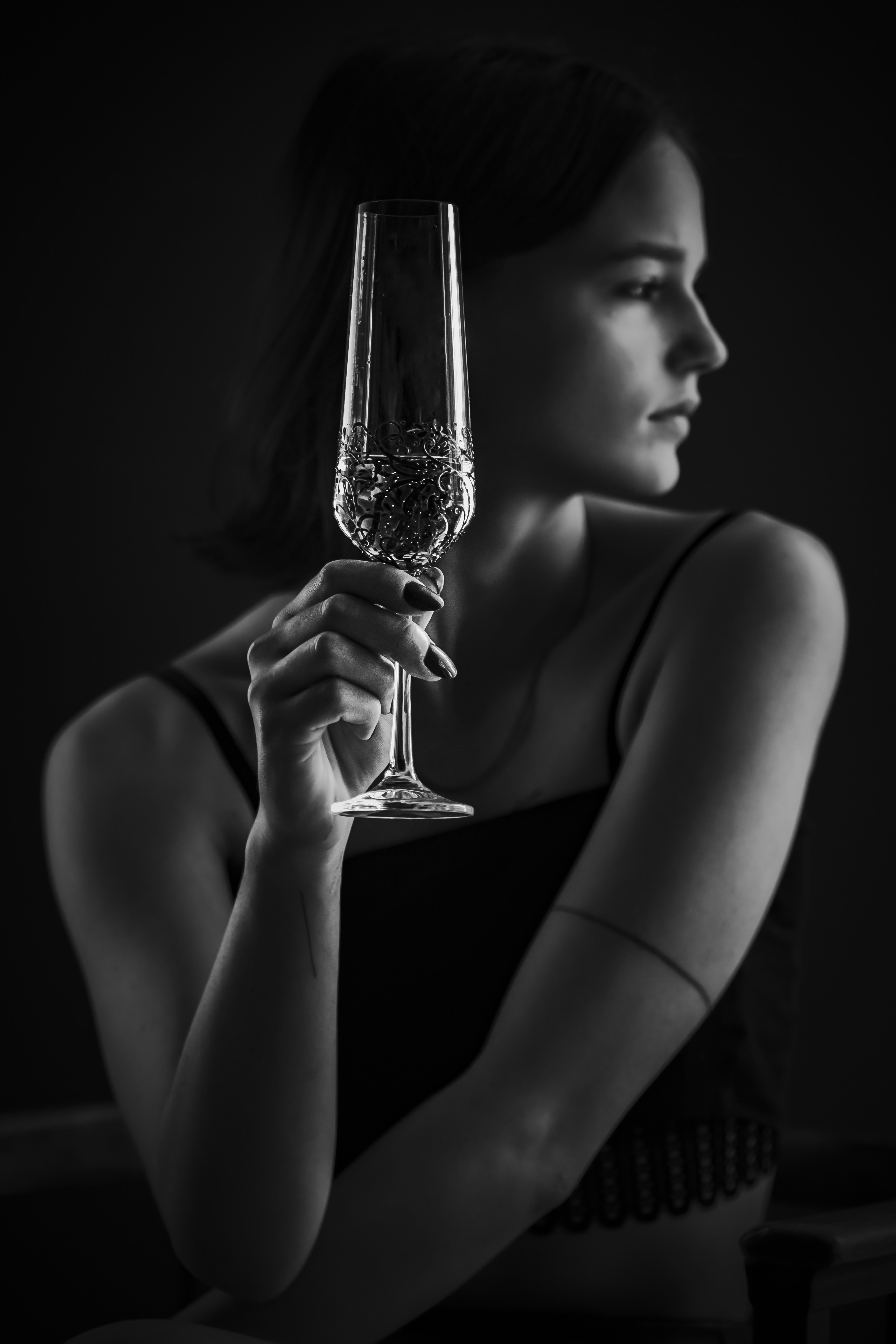 Precizní ručně malovaná reliéfní dekorace na sklenici na šampaňské. I takto by se dala popsat tato úchvatně romantická černá malba, která jen tak nedovolí člověku odvrátit zrak. Naopak ho vtáhne do svých elegantně tvarovaných křivek.