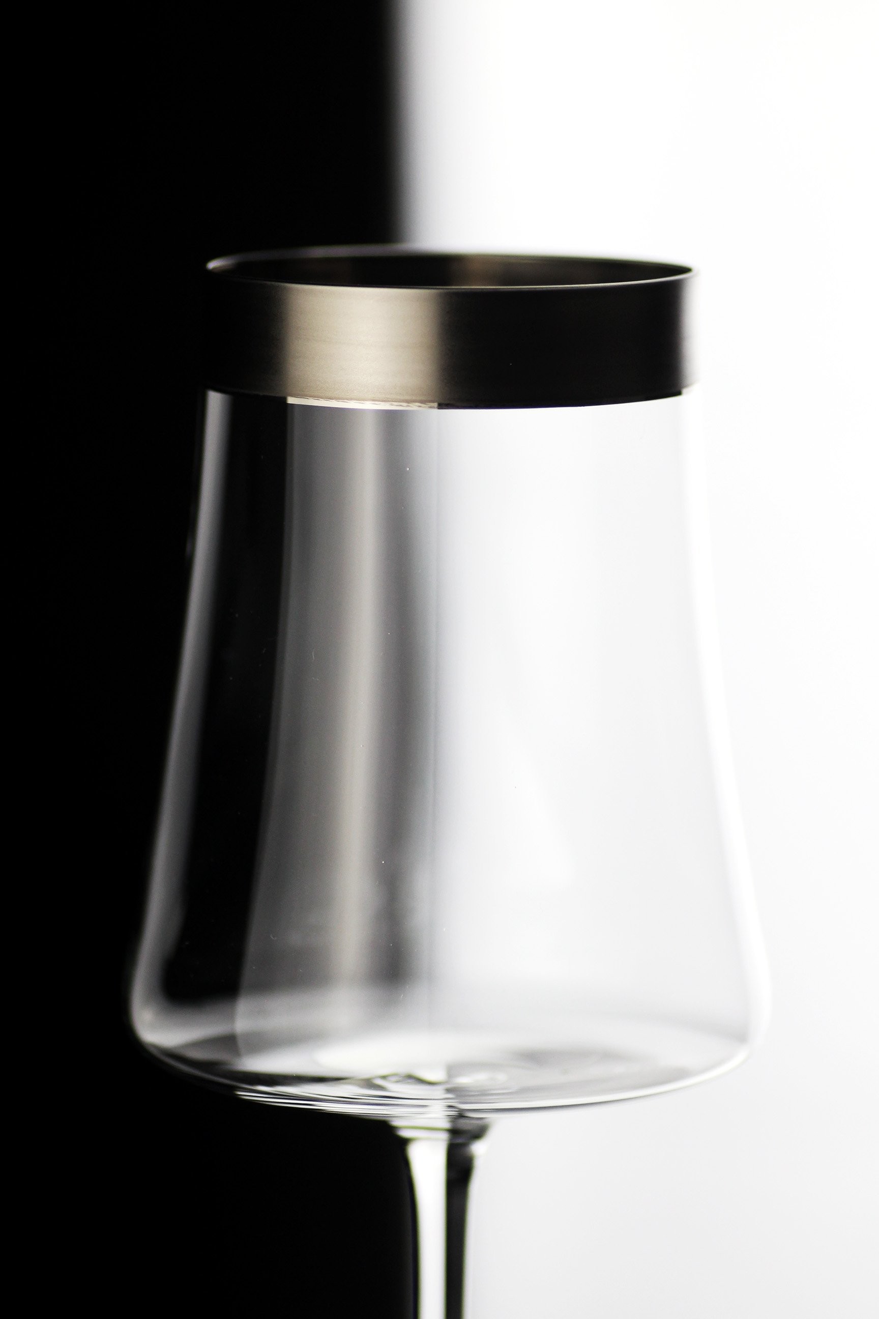Krásná moderní sklenice, která je určená na červené víno. Pití se stylem nebylo nikdy snazší. Jedinečný tvar společně s nádherným platinovým pásem z této sklenice dělá nutnost pro každého, kdo dá přednost eleganci namísto obyčejného.