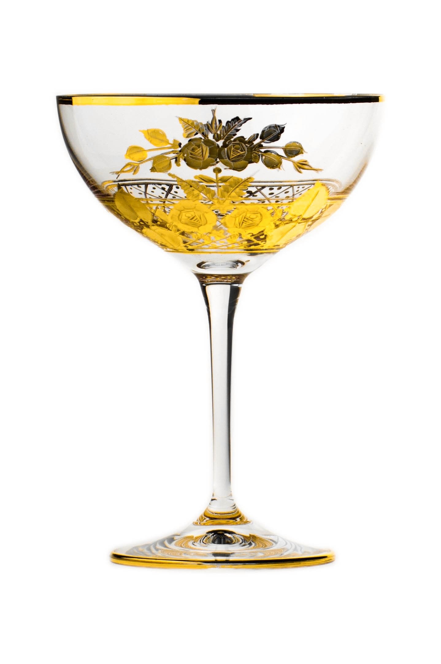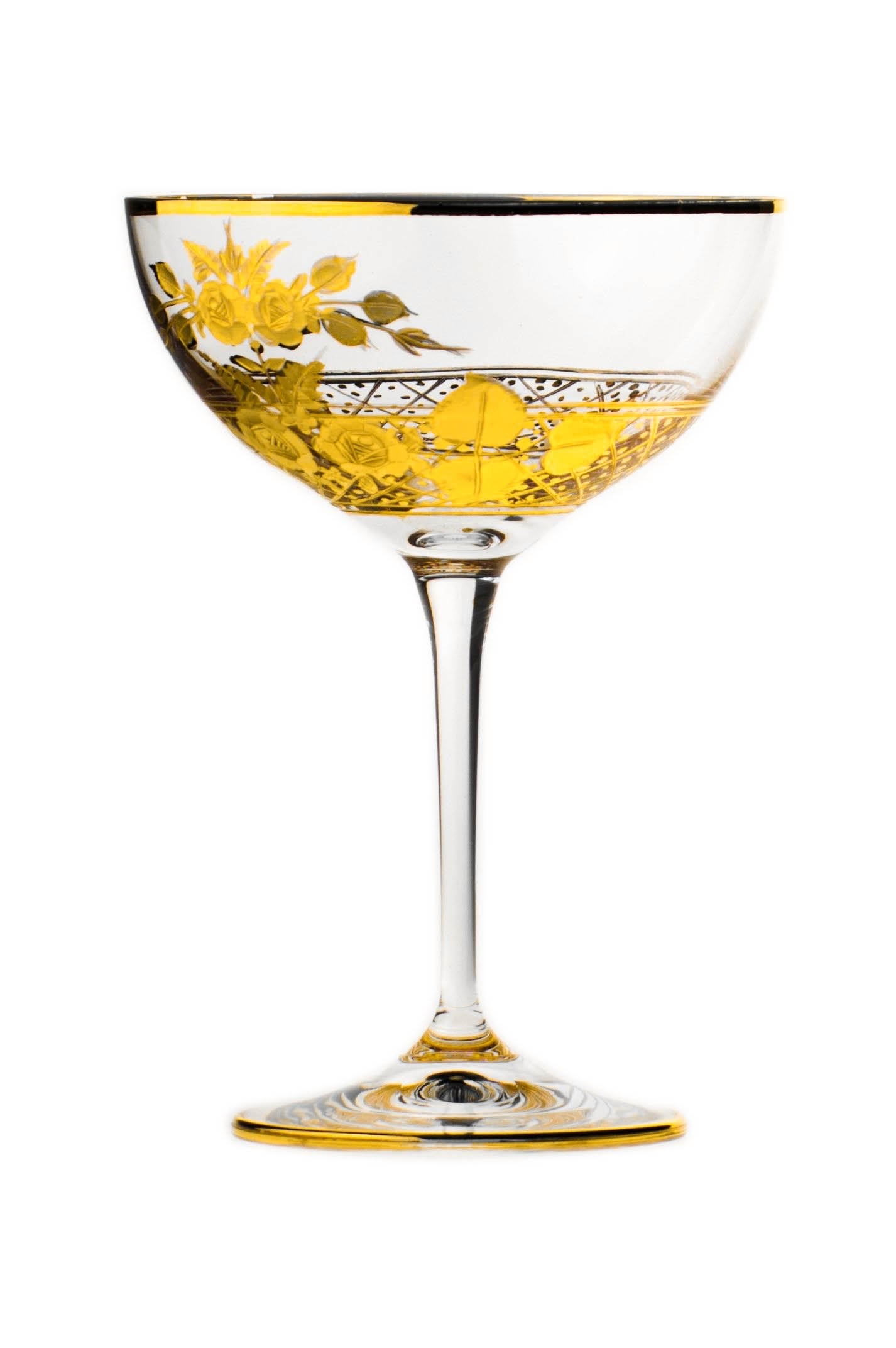 Tato sklenice je určena k popíjení koktejlu a sektu s objemem 210 ml. Bohatý ručně rytý motiv kytice je dodatečně zvýrazněn matným karátovým zlatem a doplněn zlatými lesklými ráfky. Nevšední řada Bouquet je zhotovována v několika tvarech sklenic dle druhu nápoje a je charakteristická vyzlacovanou rytinou.