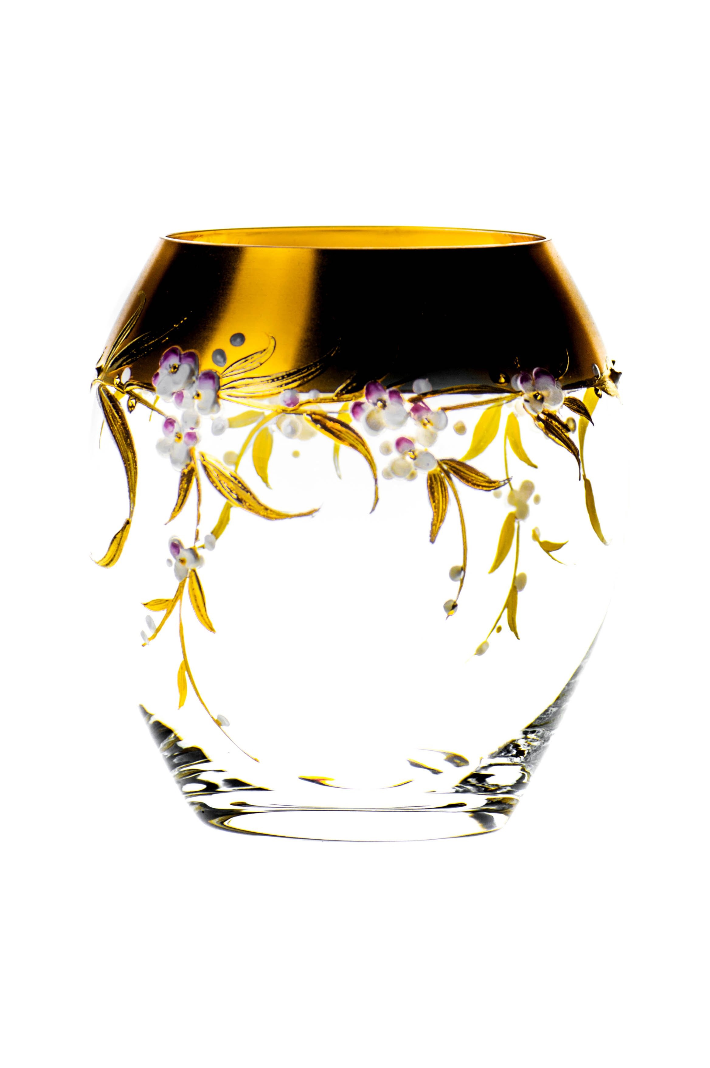 Tato něžná vázička z řady Delicate je krásným doplňkem do každého domova. K dekoraci bylo zvoleno karátové zlato v podobě širokého matného ráfku u otvoru a lístečků obklopujících ručně malované bílé kytičky. Moderní malá vázička nabízí spoustu originálních využití, které závisí pouze na fantazii.