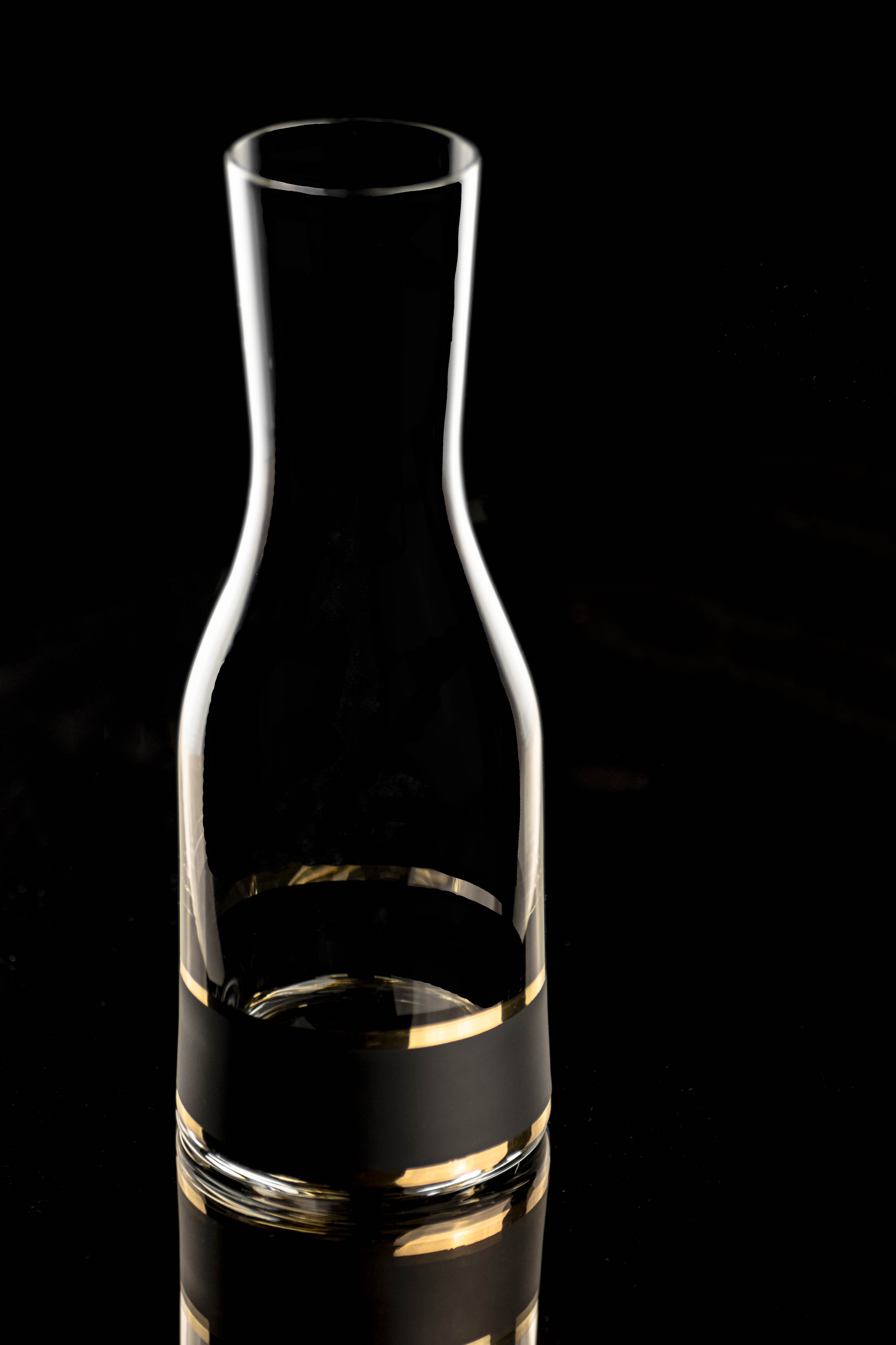 Láhev na vodu zaručeně dodá mimořádný efekt při servírování. Prudce elegantní řada Delight přidá na výjimečnosti každé příležitosti, která si říká o připravení perfektního skleněného setu. Také se skvěle hodí jako nevšední dárek pro každého, kdo je milovníkem matné černé, zlaté a ruční práce.