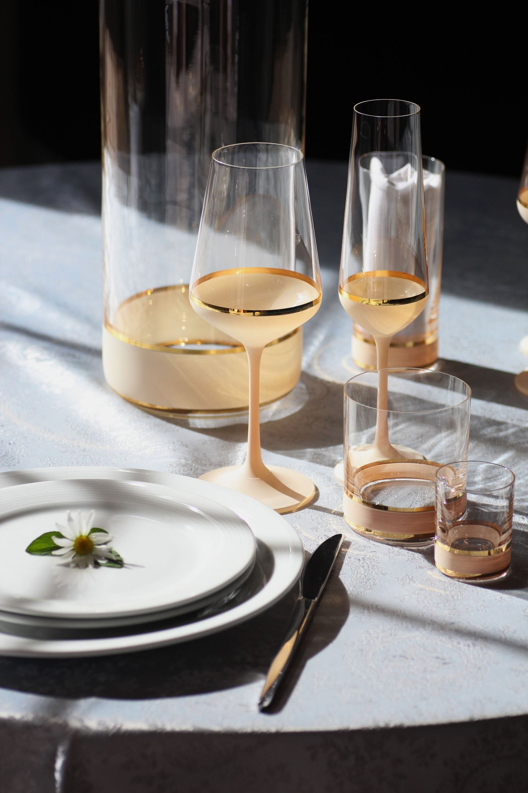 Sklenice dodává mimořádný efekt a požitek z kvalitního sektu s objemem 200 ml. Prudce elegantní řada Delight přidá na výjimečnosti každé příležitosti, která si říká o připravení perfektních sklenic k přípitku i jako nevšední dárek pro každého, kdo je milovníkem klasické krémové, zlaté a ruční práce.