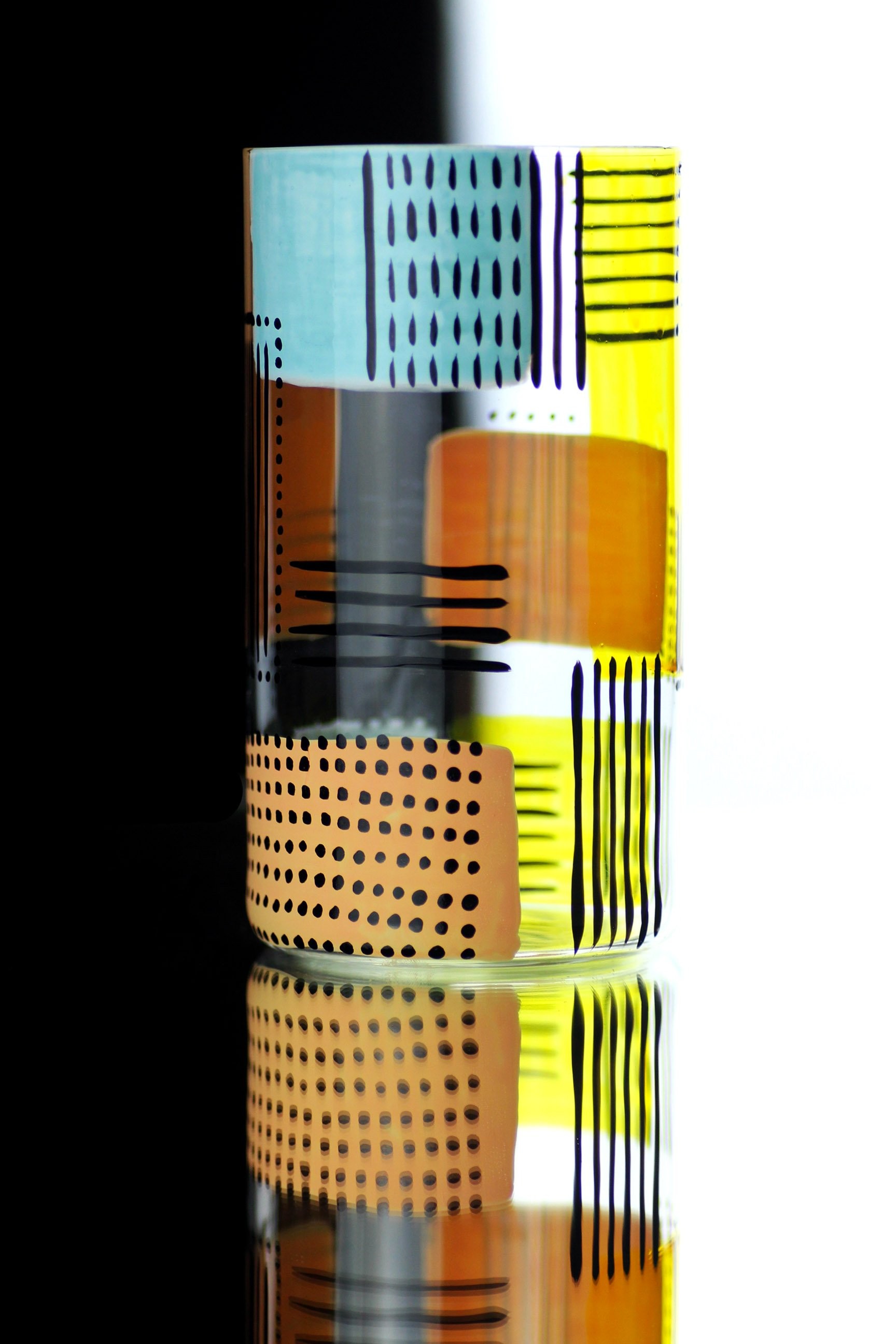 Nádherná kompletně ručně malovaná sklenice na vodu, která je ztělesněním kreativního umění. Tato 590 ml sklenice je hravá, zajímavá, barevná a originální. Být originální je tak snadné a tato ručně malovaná sklenička vám denně dobije vašeho uměleckého ducha.