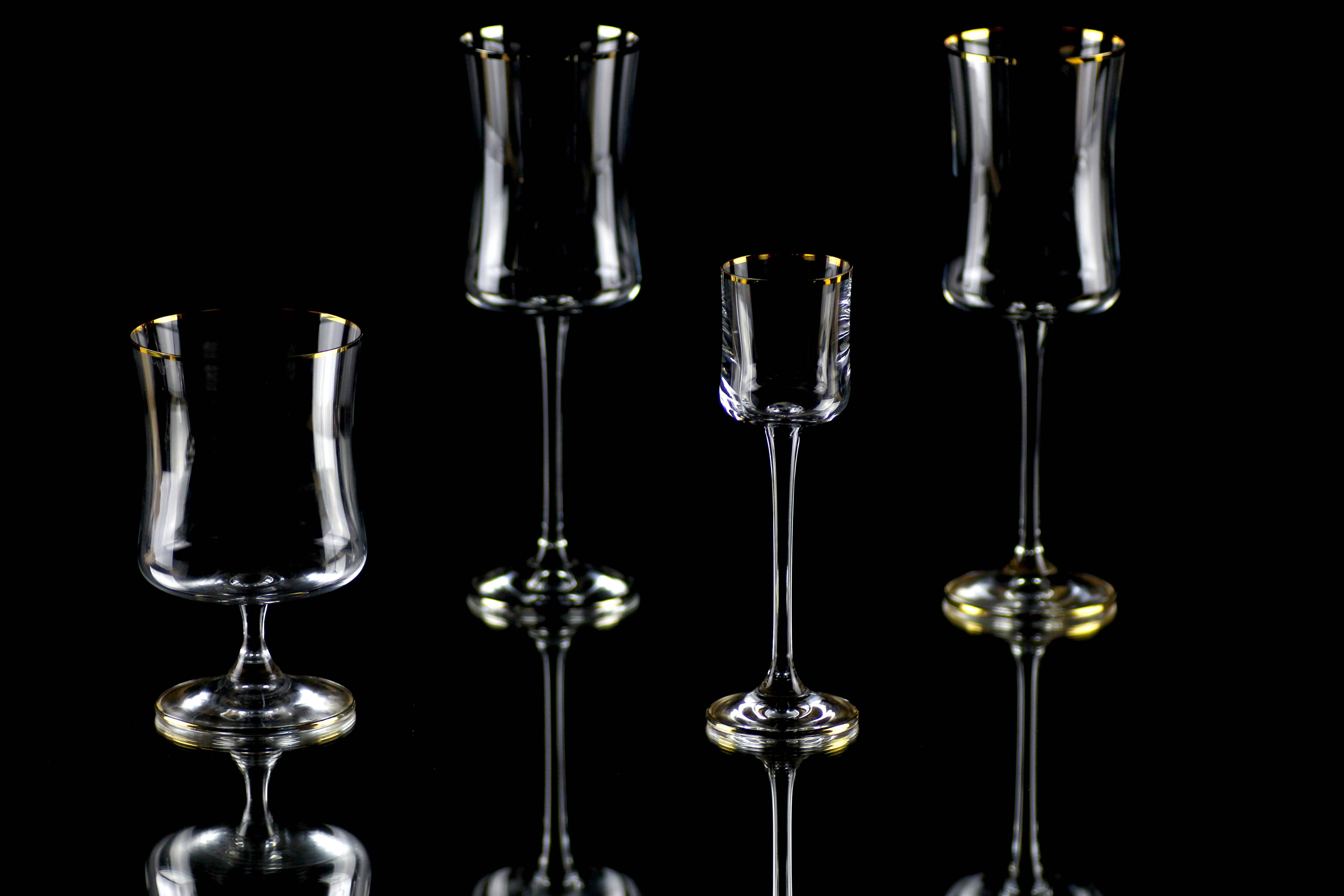 Sklo: Čiré, Ryzí zlato, Bezolovnatý český křišťál