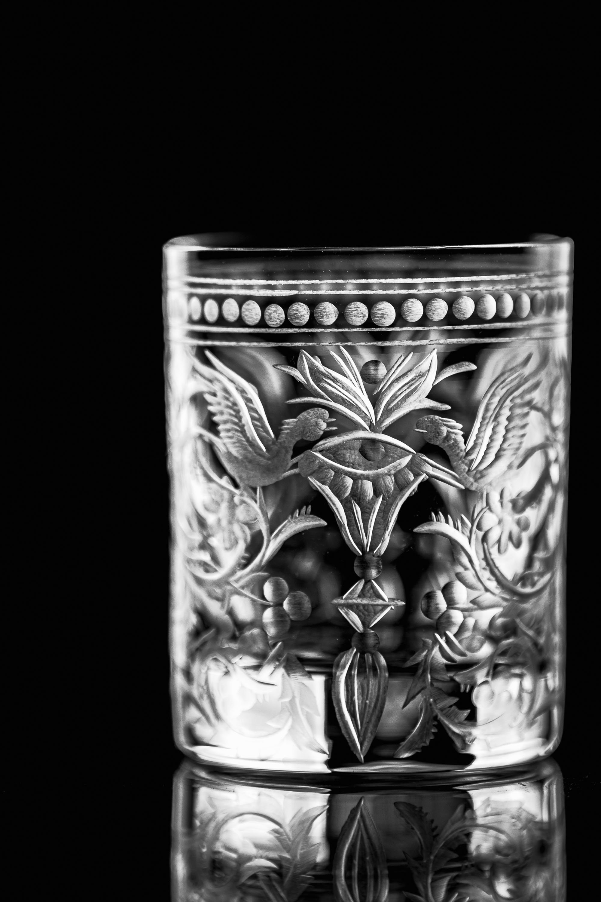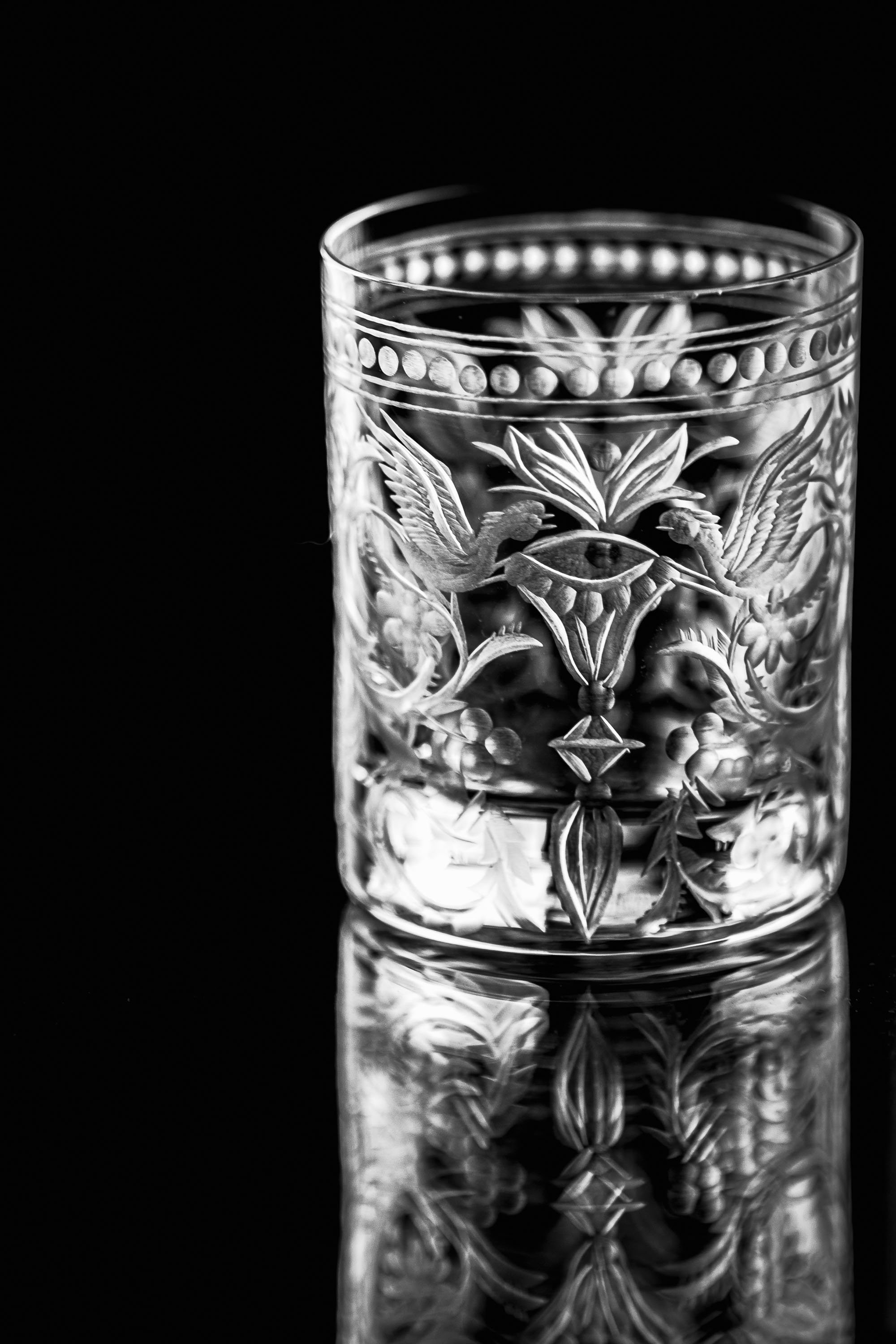 Sklenice na lihoviny je obohacena ručně rytým designem, který je nesmírně náročný na provedení. Ve výrobcích řady Evpas se tradice skloubí s moderním pojetím. Tento dekor vznikl již v začátcích naší rodinné sklárny. Pro jeho oblíbenost a nestárnoucí design se stal synonymem pro značku Evpas.