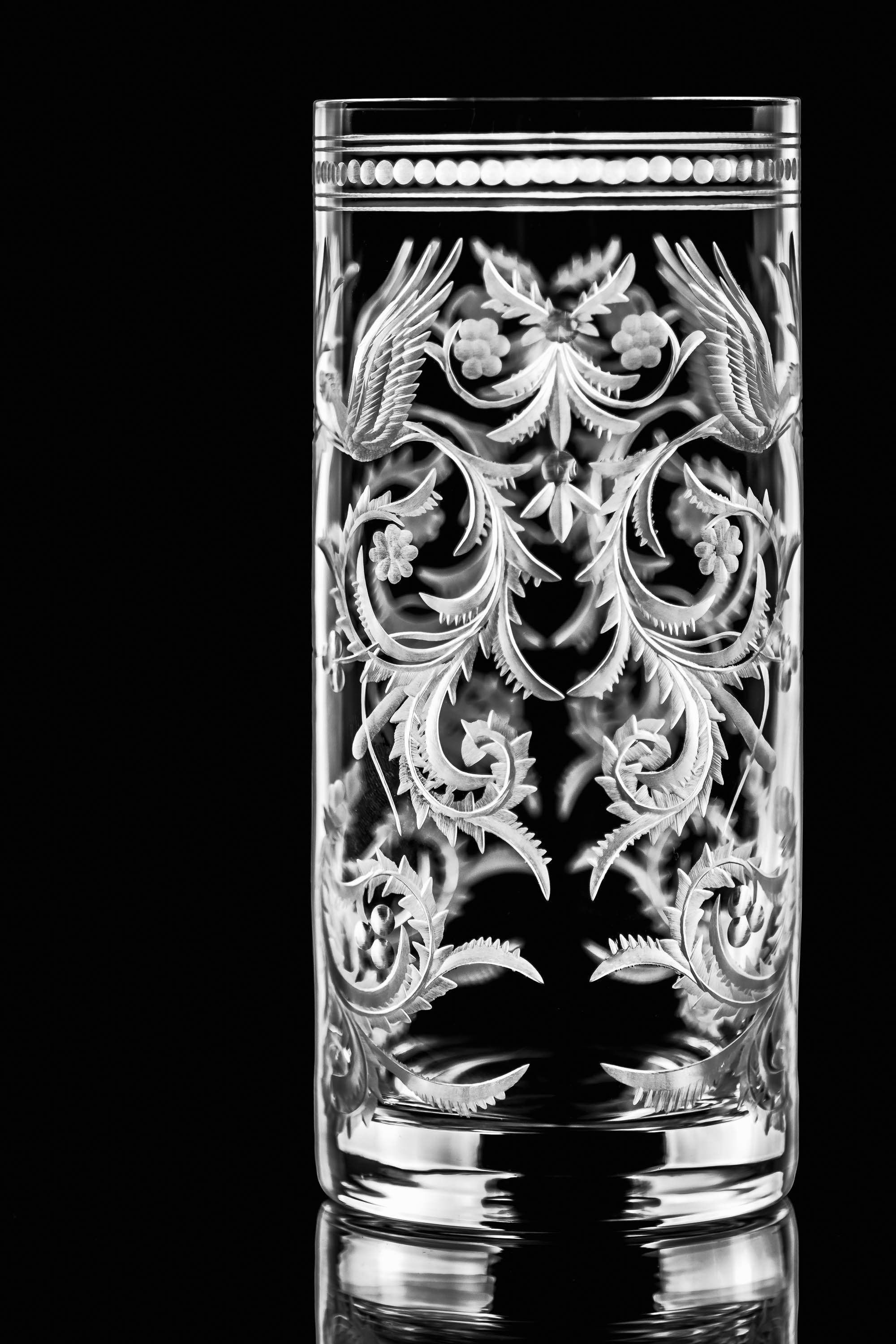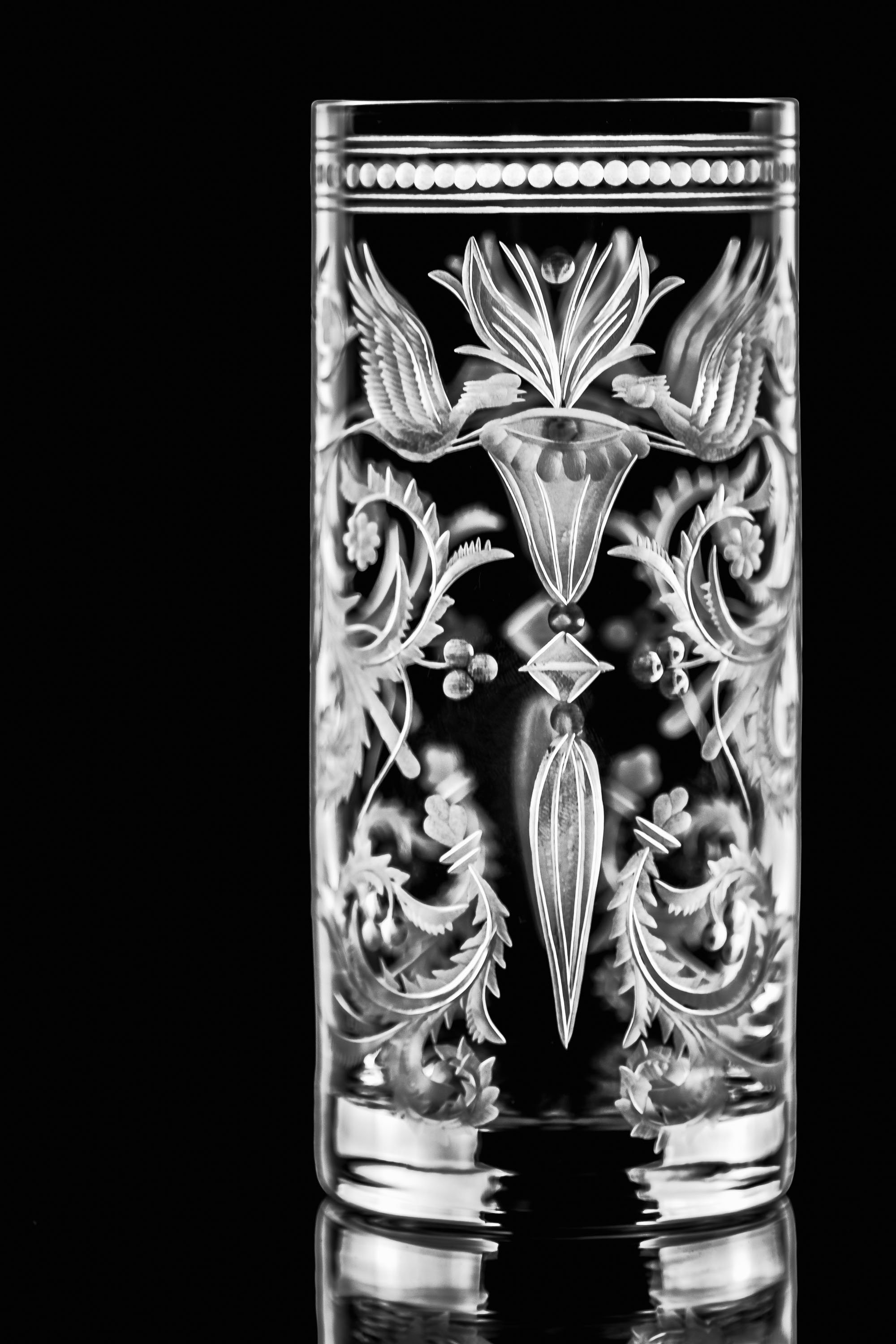 Sklo: Čiré, Ručně ryté, Bezolovnatý český křišťál