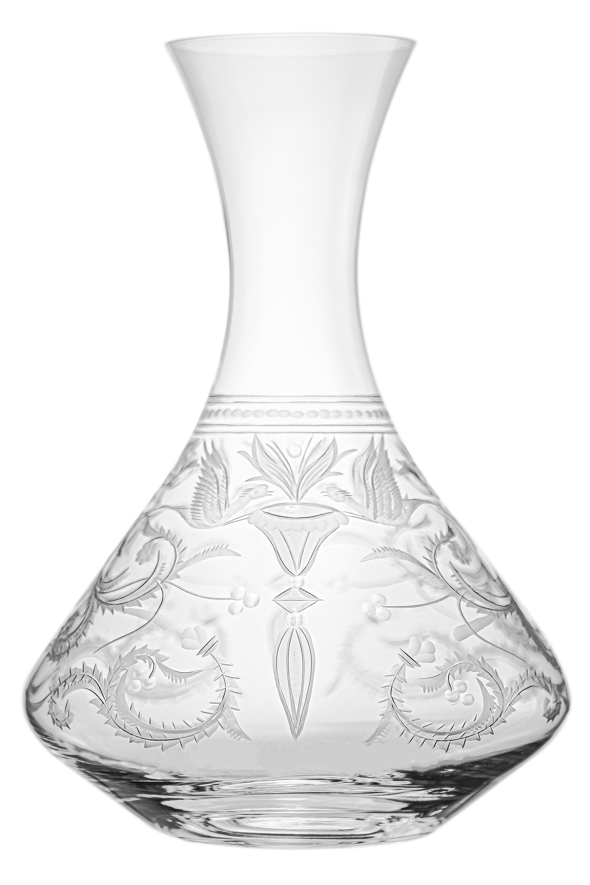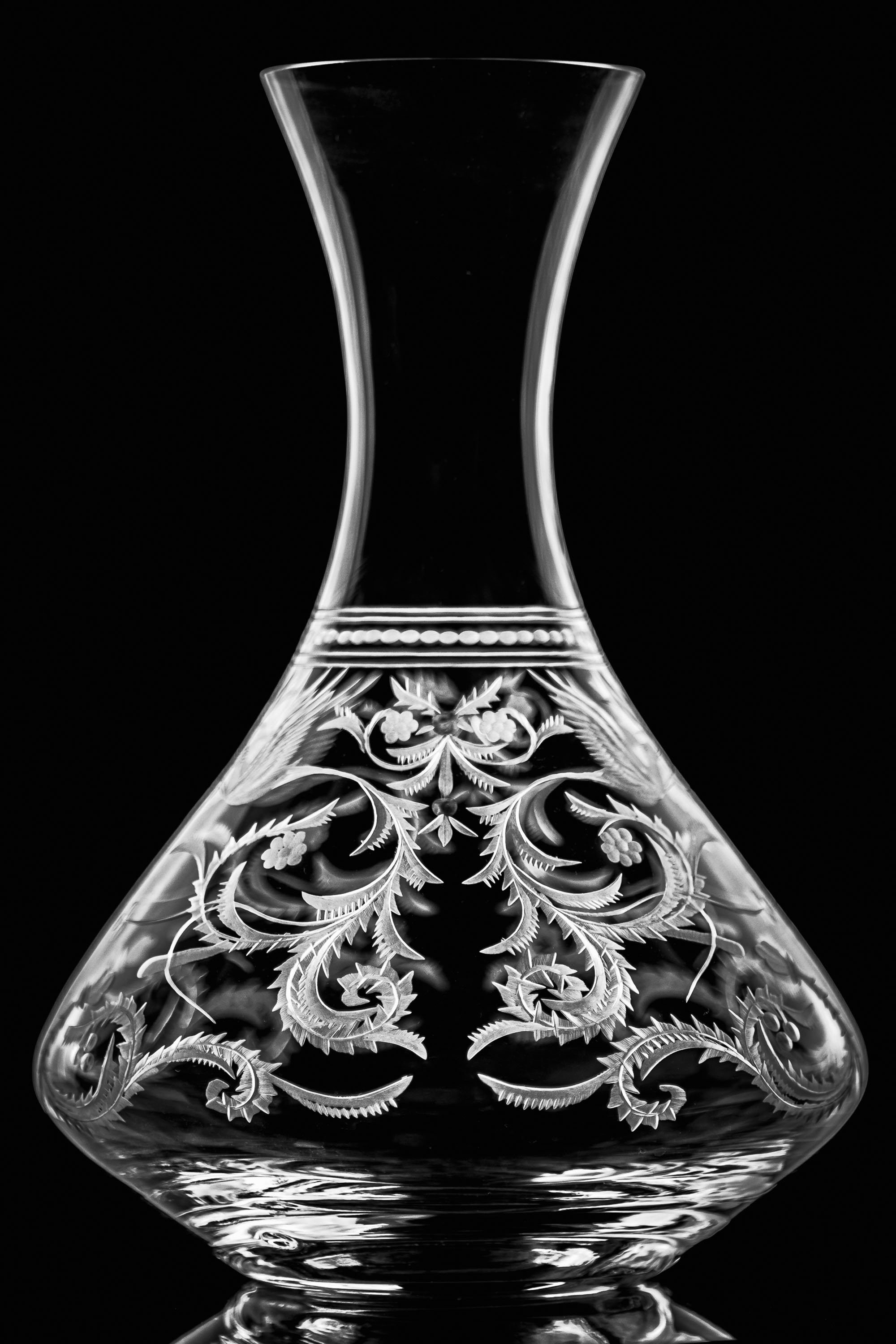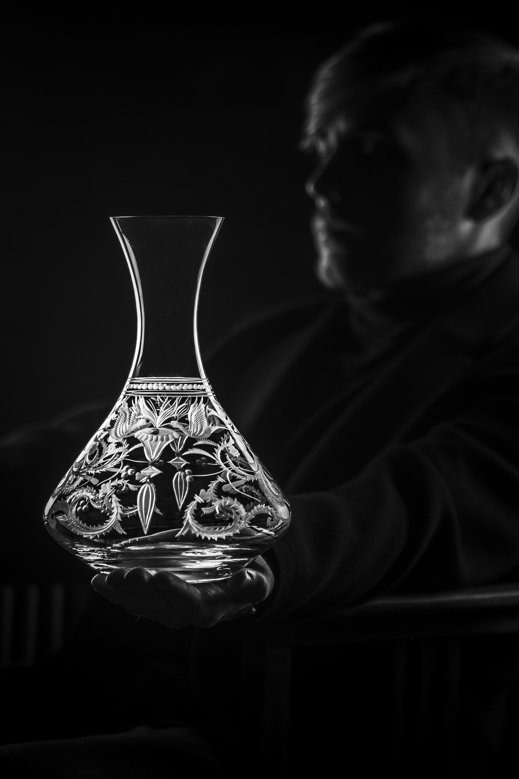 Luxusní dekantér na víno je obohacen ručně rytým designem, který je nesmírně náročný na provedení. Ve výrobcích řady Evpas se tradice skloubí s moderním pojetím. Tento dekor vznikl již v začátcích naší rodinné sklárny. Pro jeho oblíbenost a nestárnoucí design se stal synonymem pro značku Evpas.