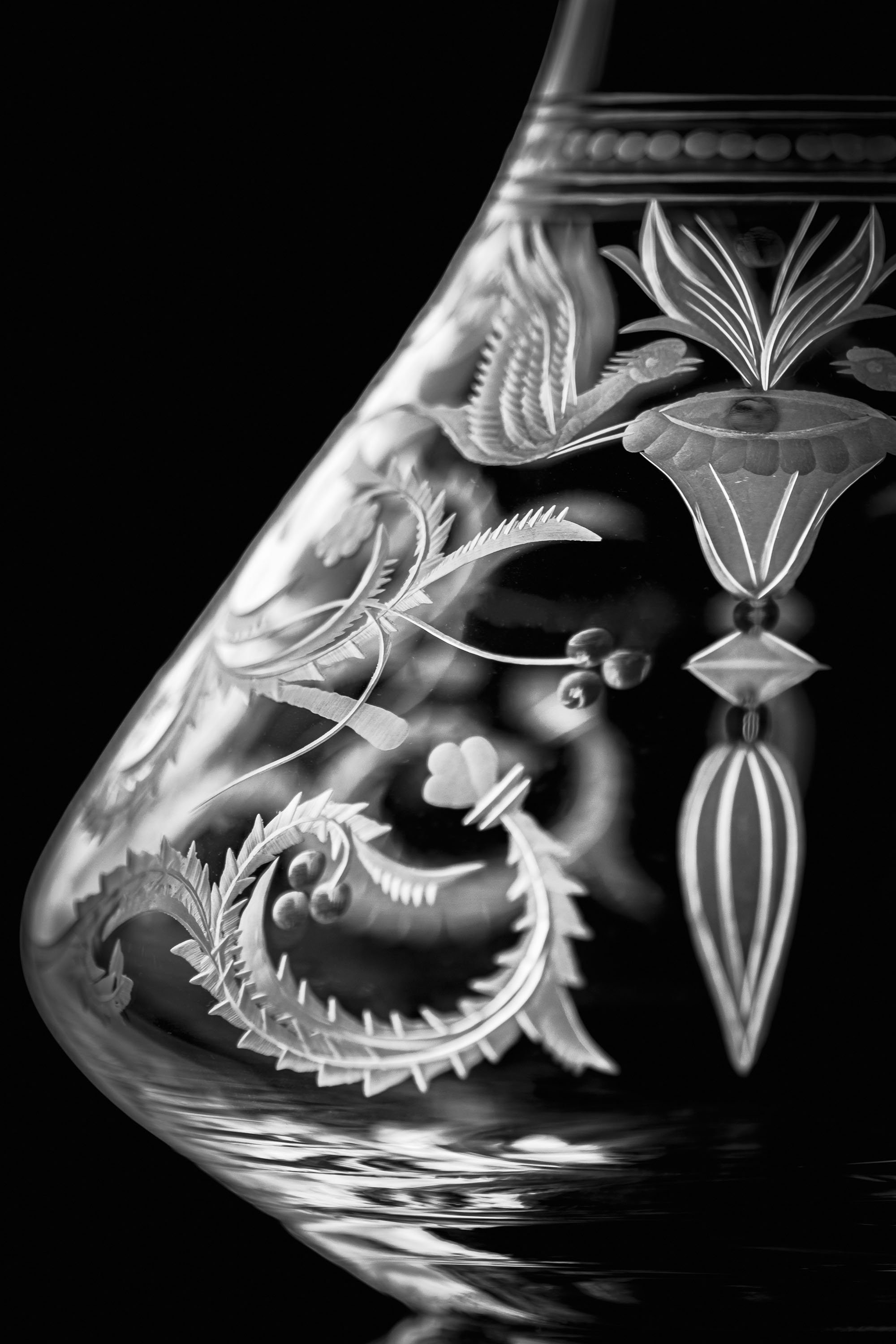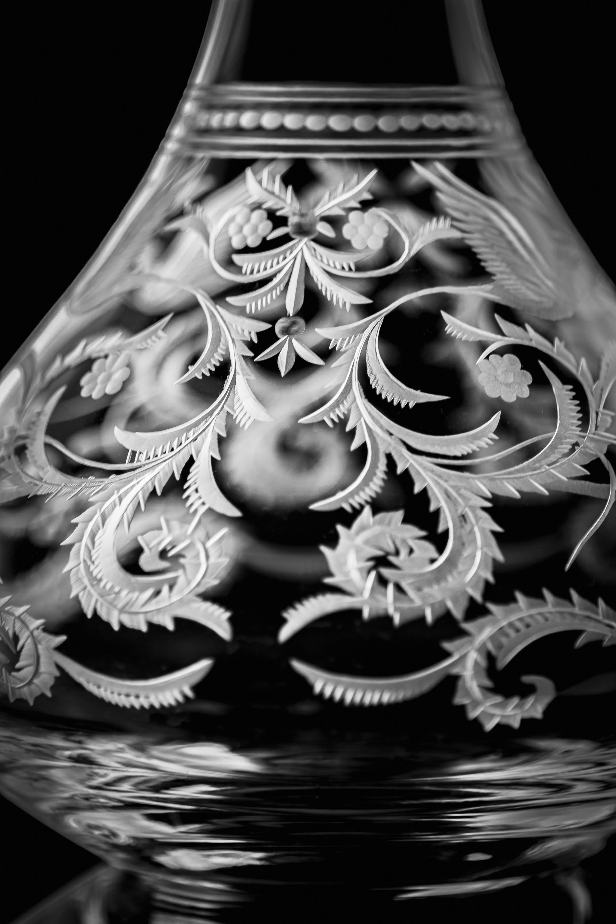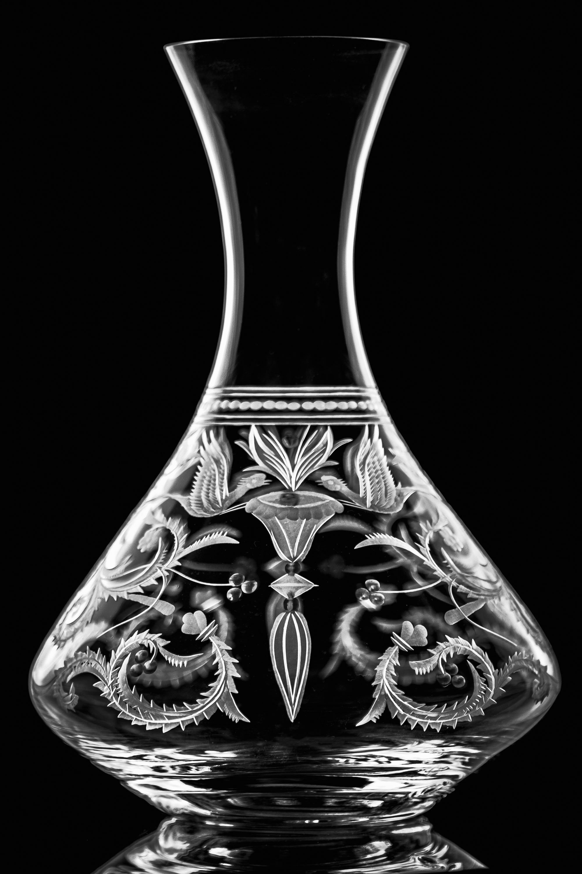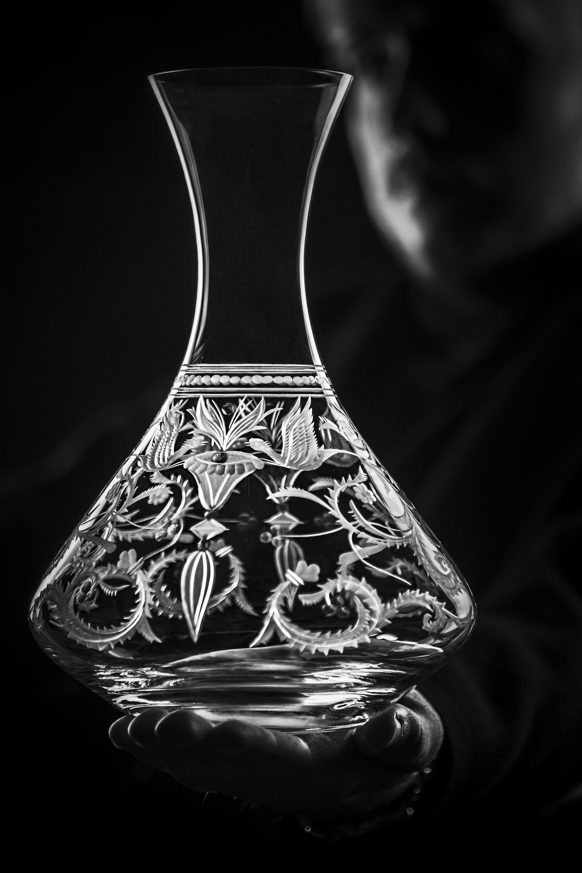 Luxusní dekantér na víno je obohacen ručně rytým designem, který je nesmírně náročný na provedení. Ve výrobcích řady Evpas se tradice skloubí s moderním pojetím. Tento dekor vznikl již v začátcích naší rodinné sklárny. Pro jeho oblíbenost a nestárnoucí design se stal synonymem pro značku Evpas.