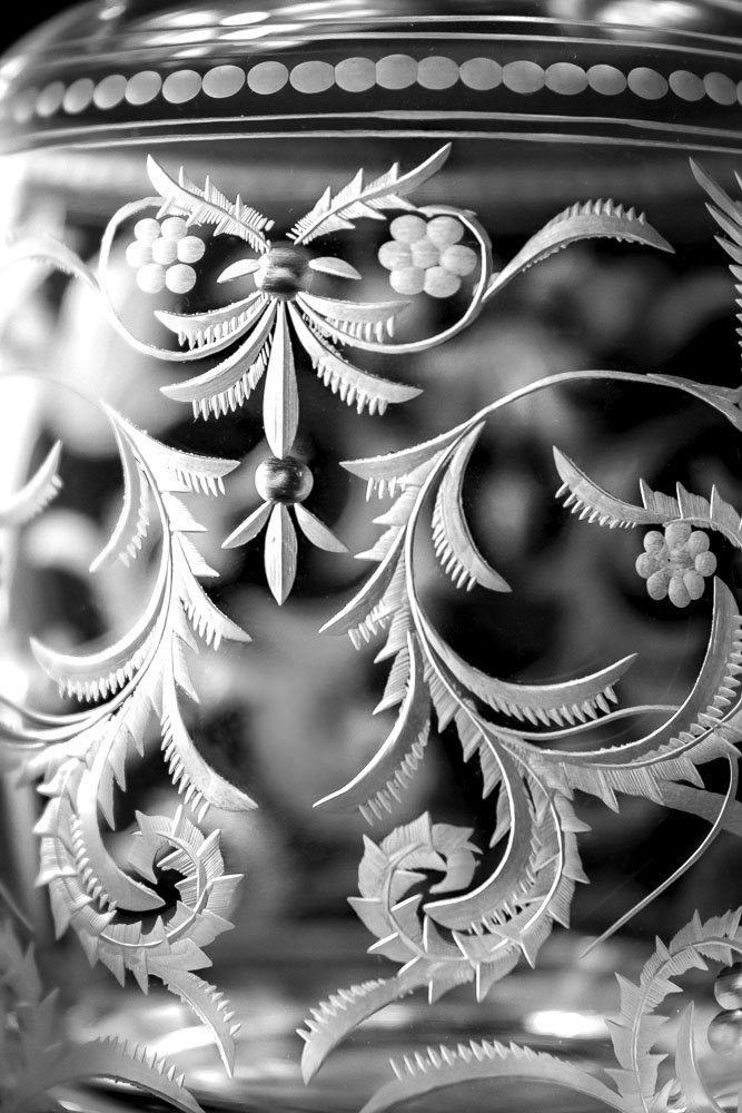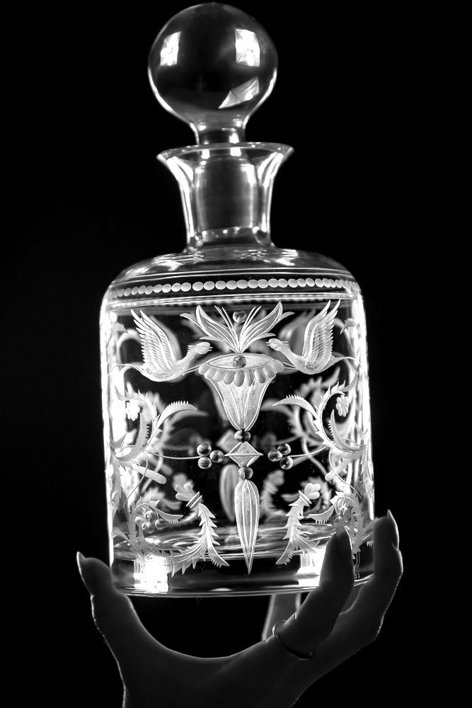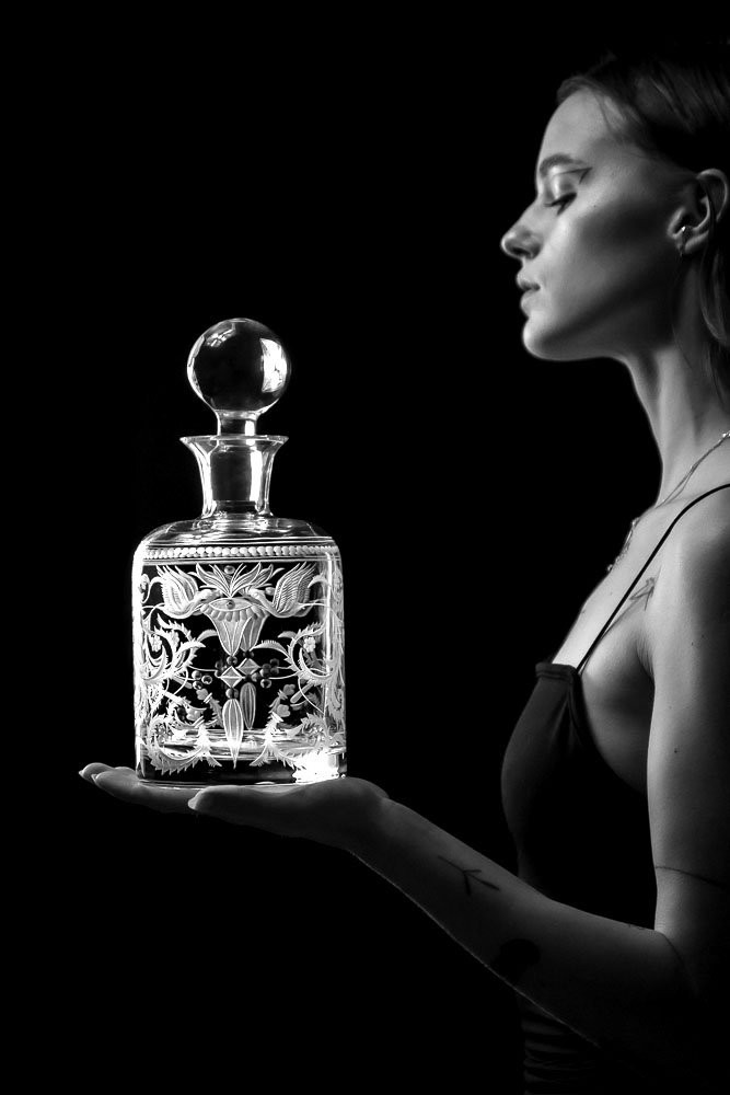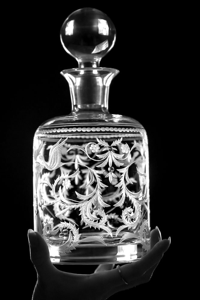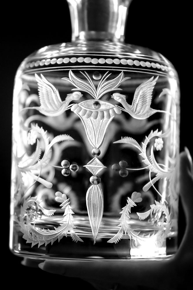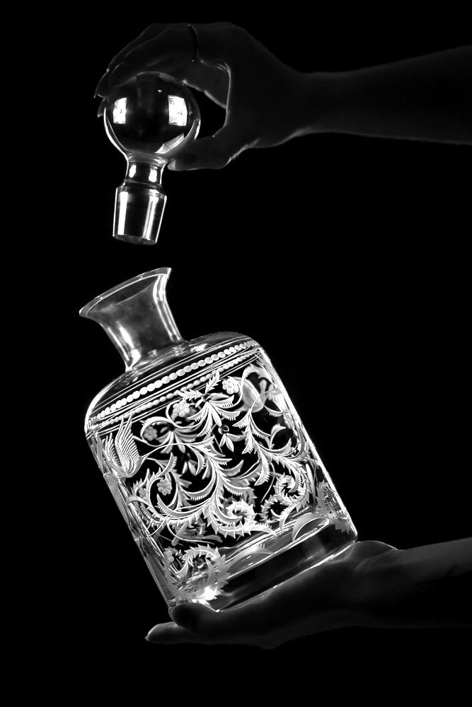 Nádherná láhev na whisky je obohacena ručně rytým bohatým dekorem, který je nesmírně náročný na provedení. Ve výrobcích řady Evpas se tradice skloubí s moderním pojetím. Tento dekor vznikl již při začátcích sklárny. Pro jeho oblíbenost a nestárnoucí design se stal synonymem pro značku Evpas.