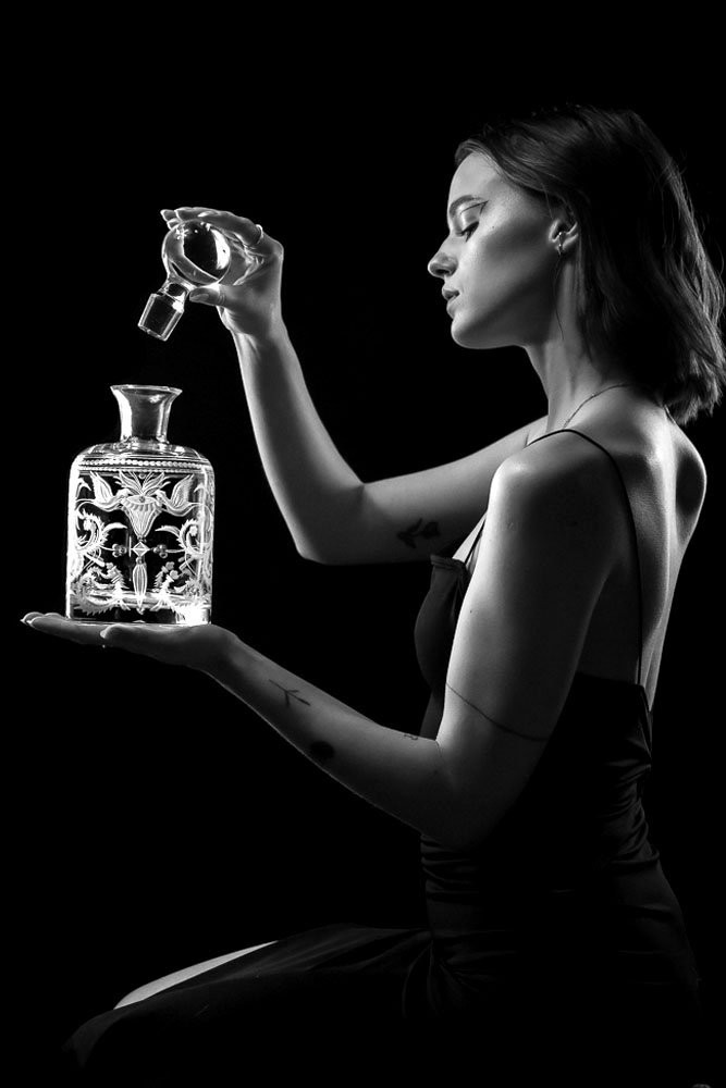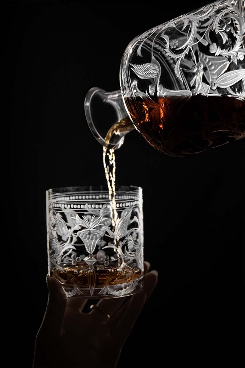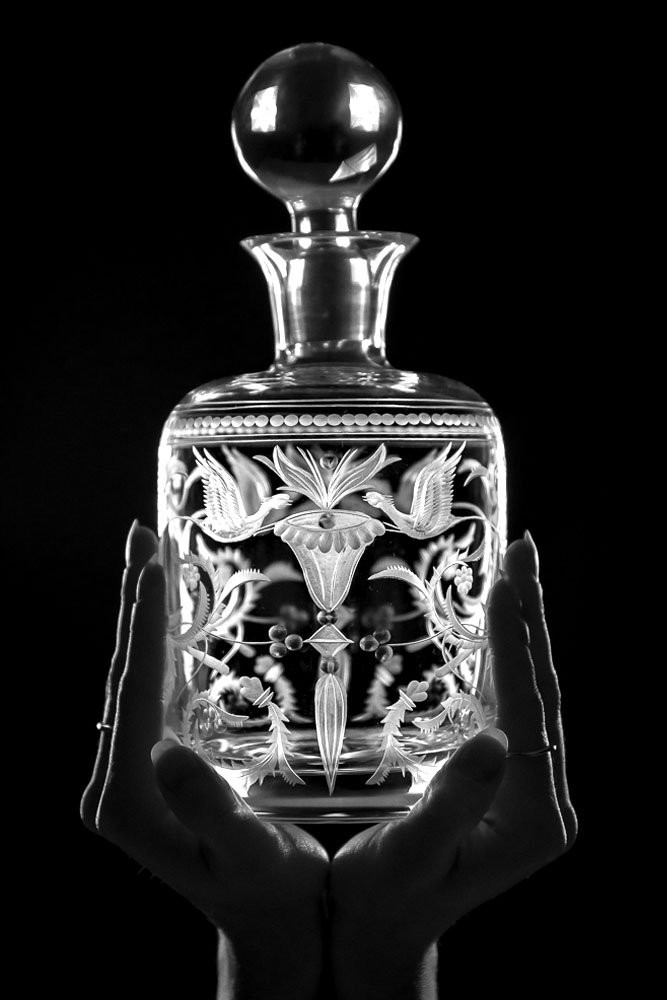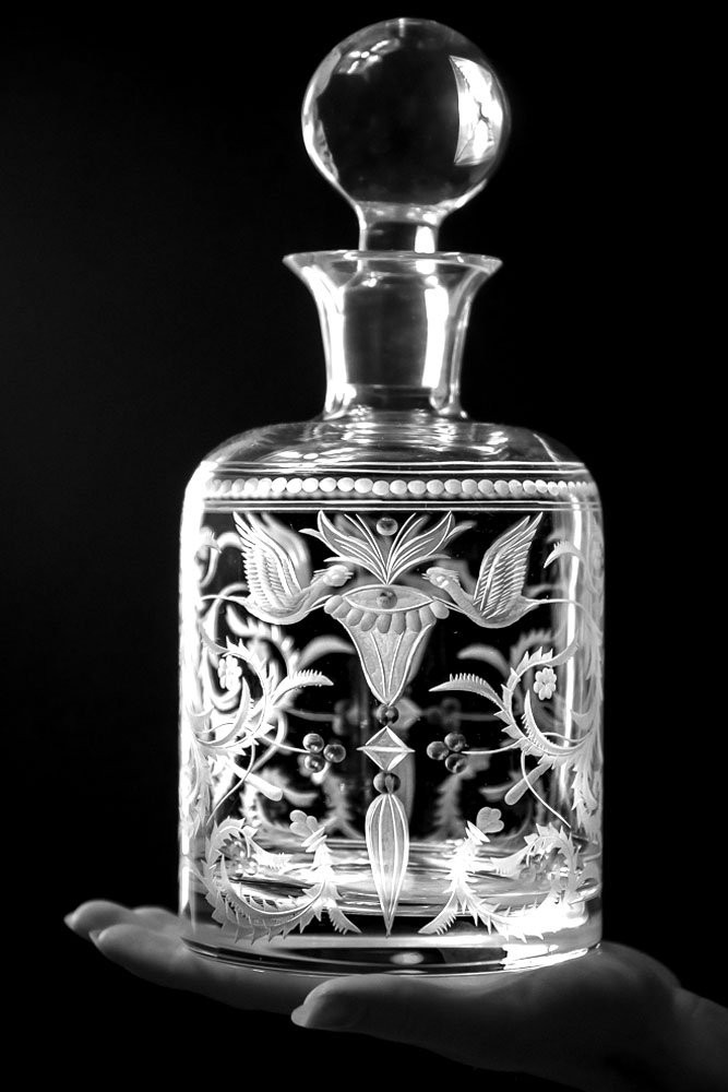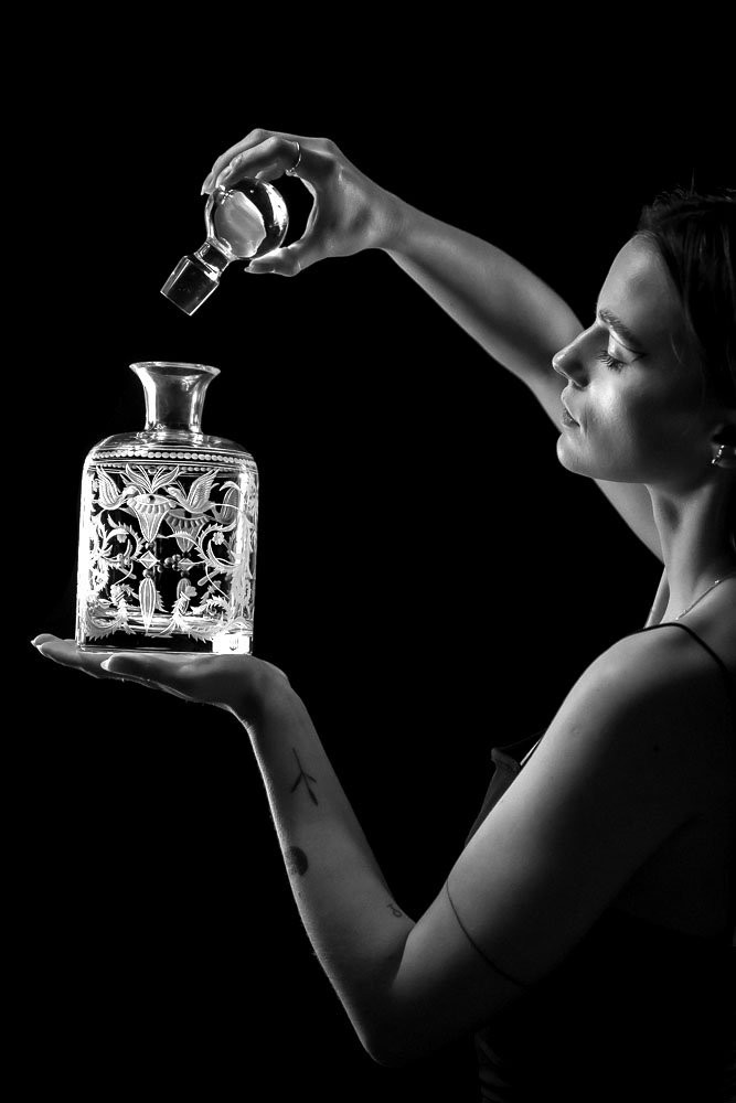 Nádherná láhev na whisky je obohacena ručně rytým bohatým dekorem, který je nesmírně náročný na provedení. Ve výrobcích řady Evpas se tradice skloubí s moderním pojetím. Tento dekor vznikl již při začátcích sklárny. Pro jeho oblíbenost a nestárnoucí design se stal synonymem pro značku Evpas.