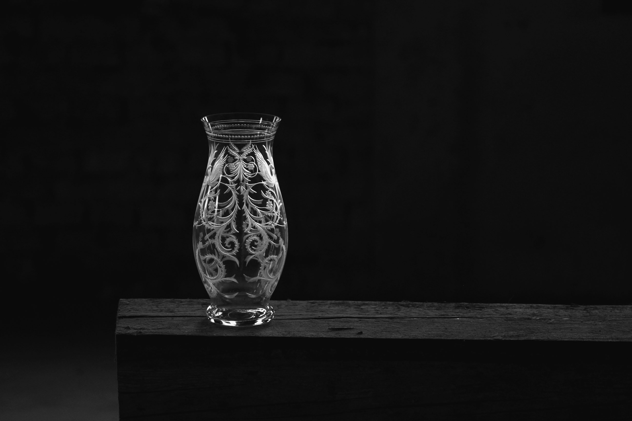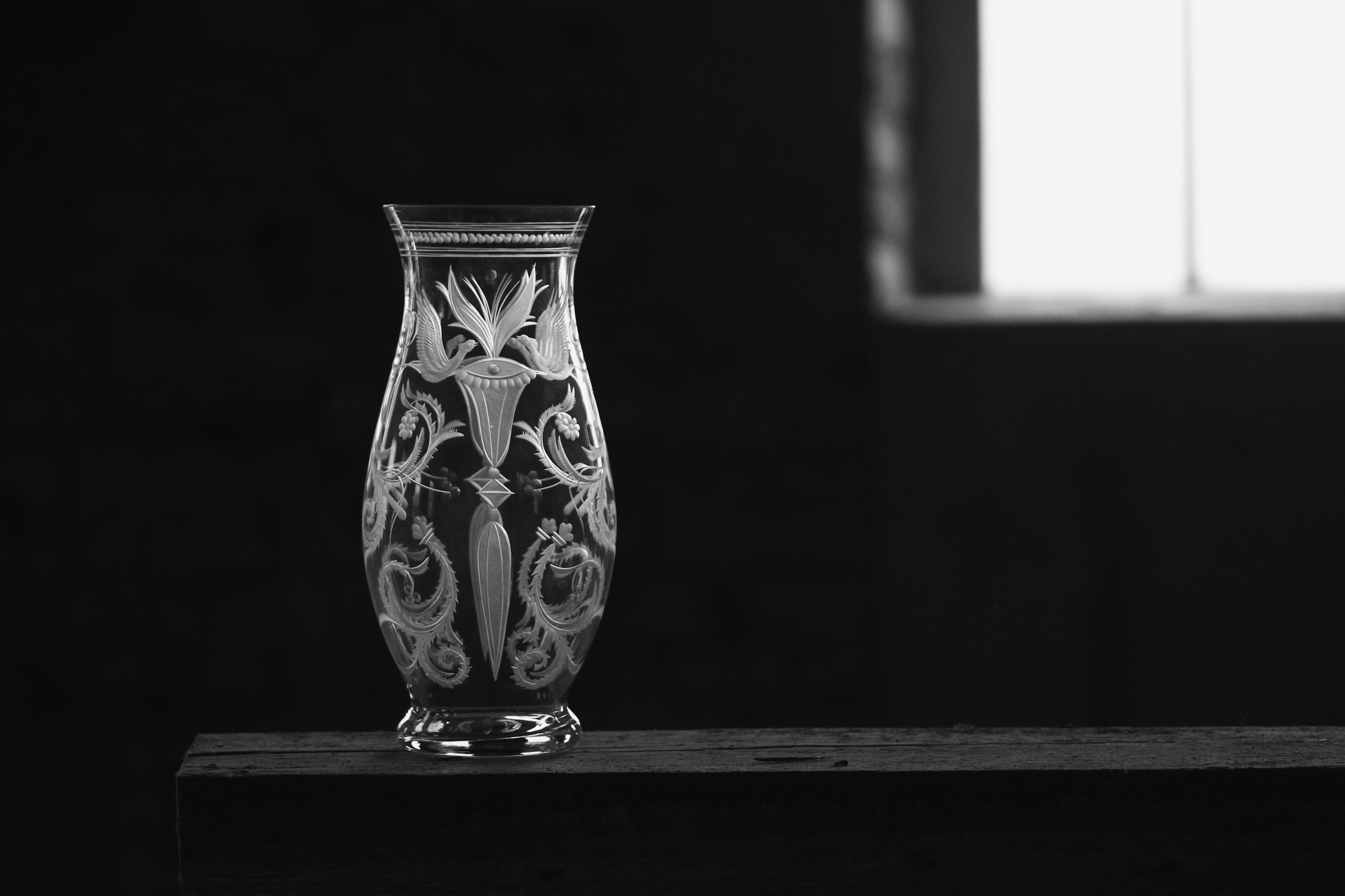 Sklo: Čiré, Ručně ryté, Bezolovnatý český křišťál