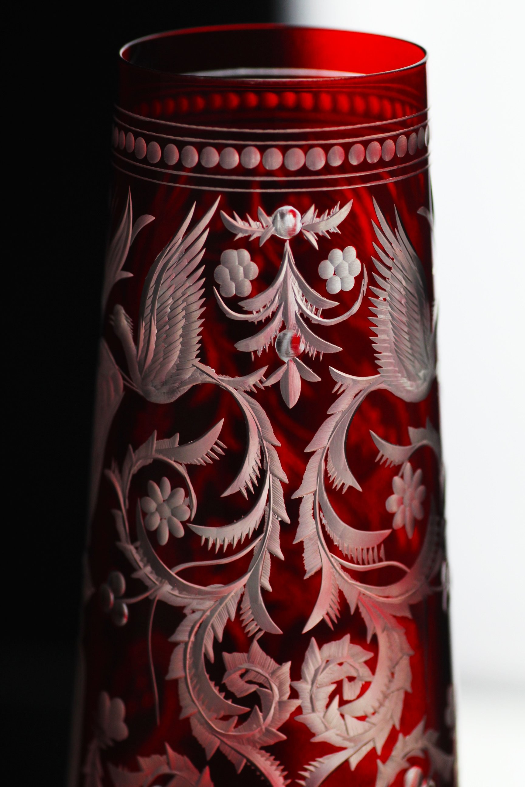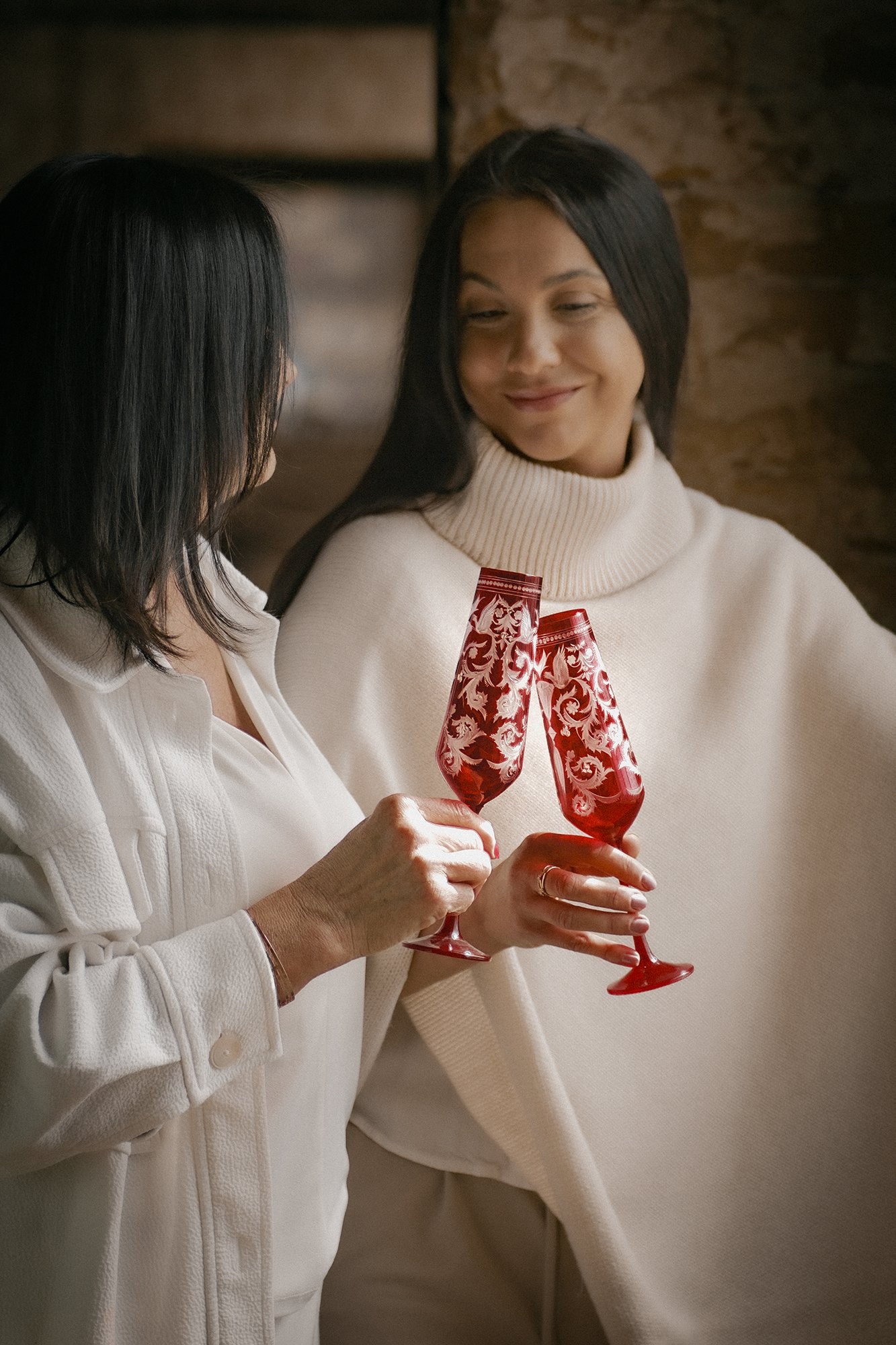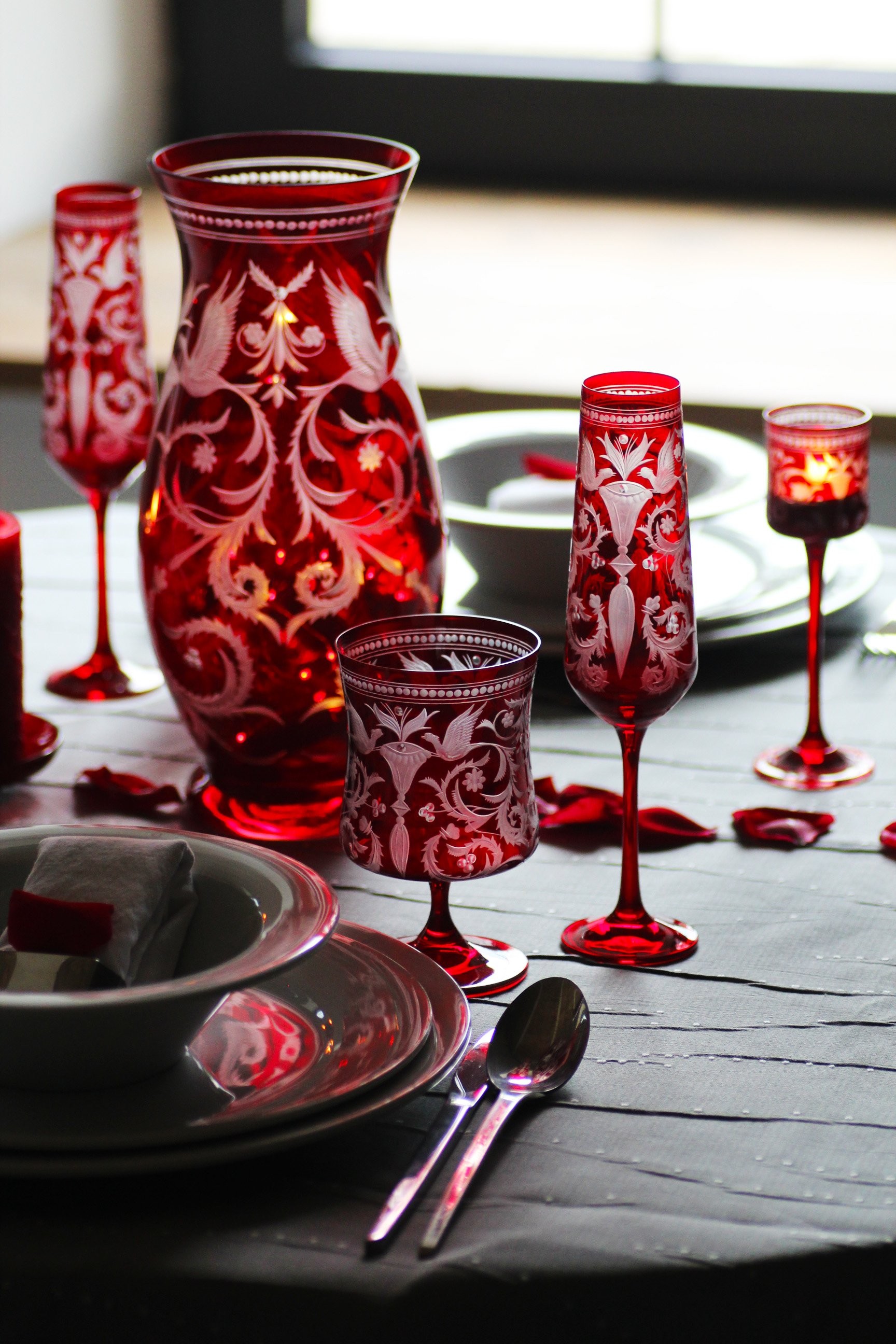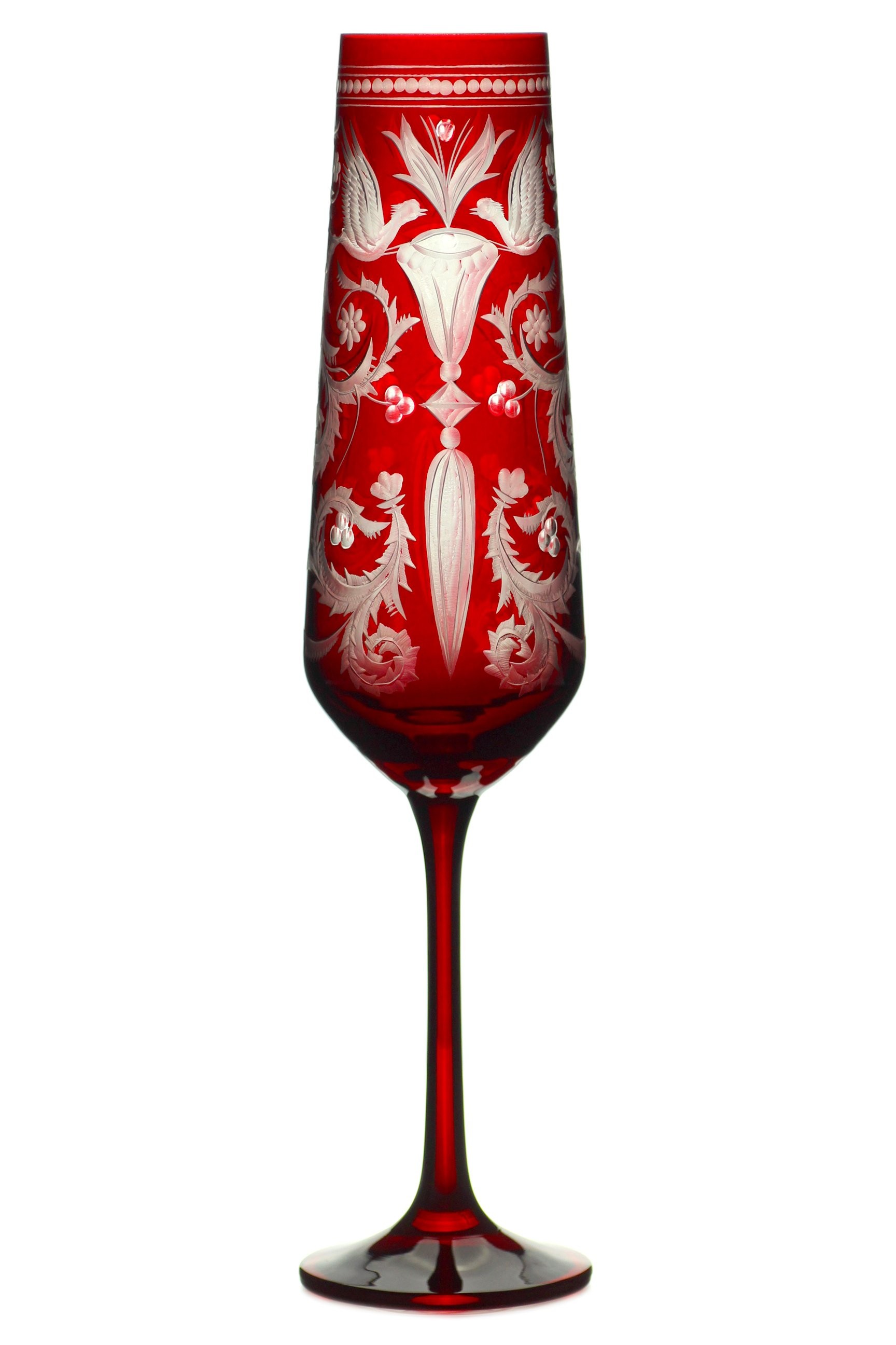 Sklenice na šampaňské v granátové barvě, která je ručně prorývaná, díky čemuž je zvýrazněn bohatý a náročný dekor. Doporučujeme doplnění o láhev Evpas garnet nebo ostatní výrobky z téže řady pro Váš prostřený stůl. Tento dekor vznikl již při začátcích sklárny. Pro jeho oblíbenost a nestárnoucí design se stal synonymem pro značku Evpas.