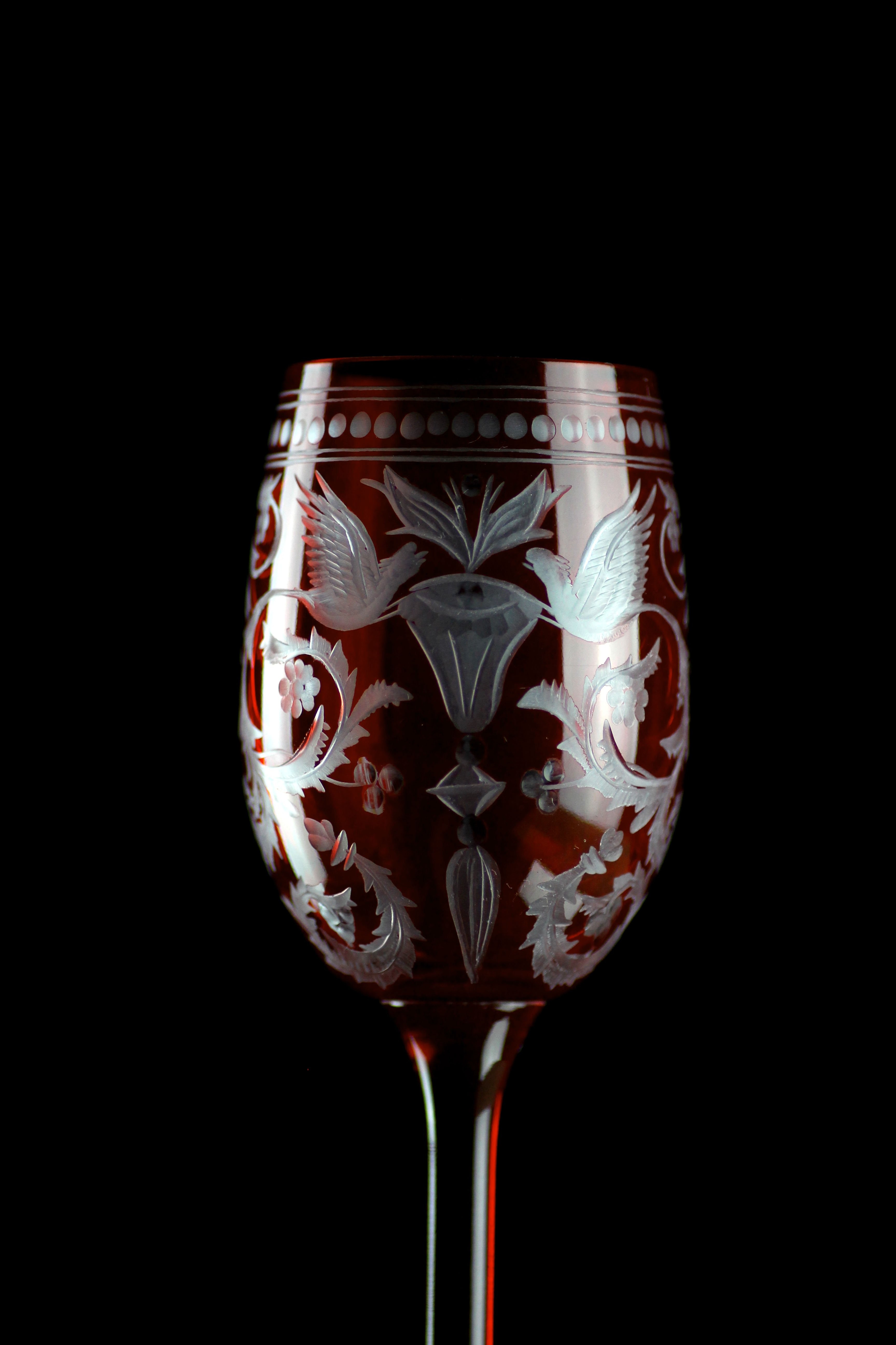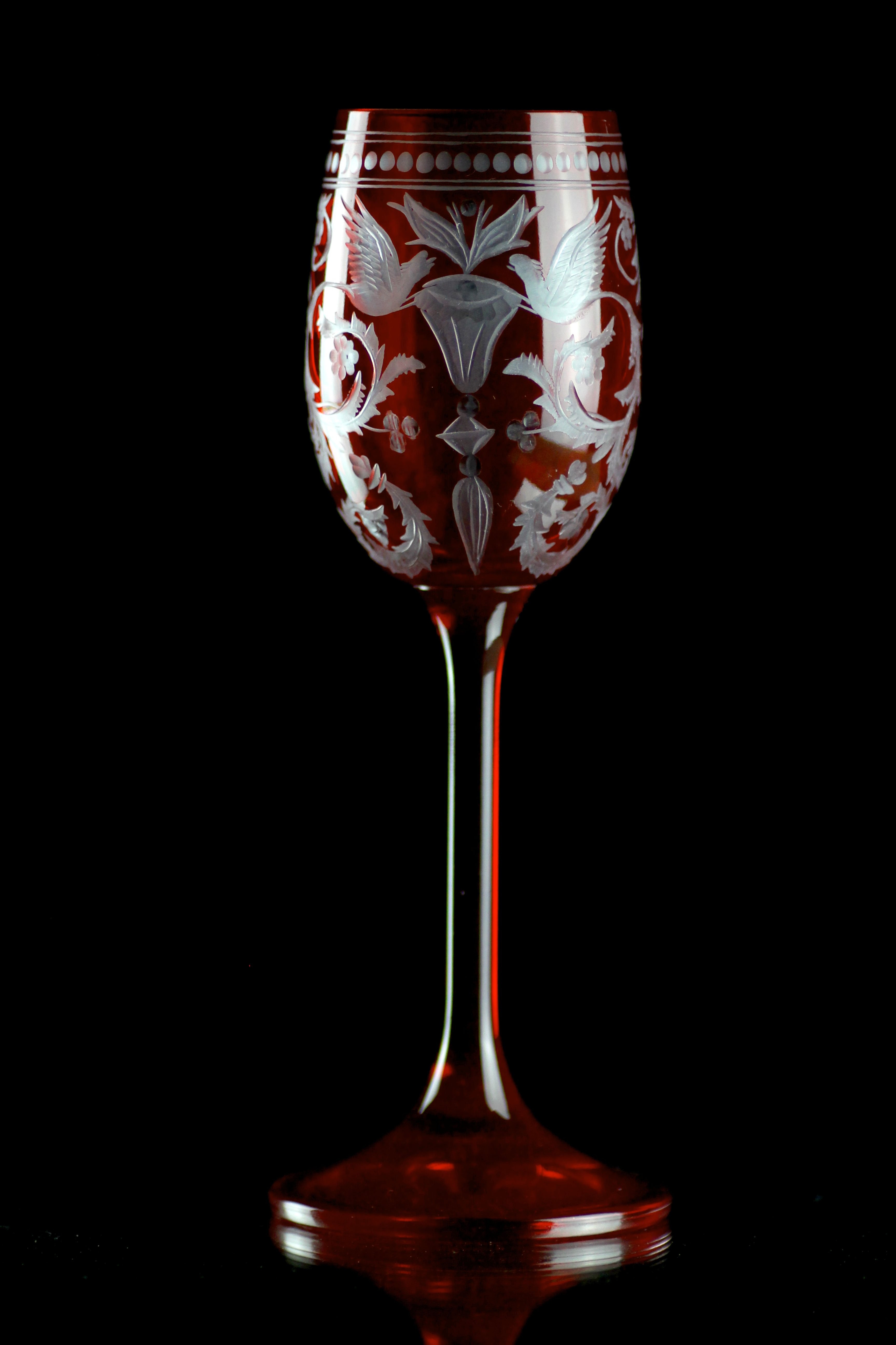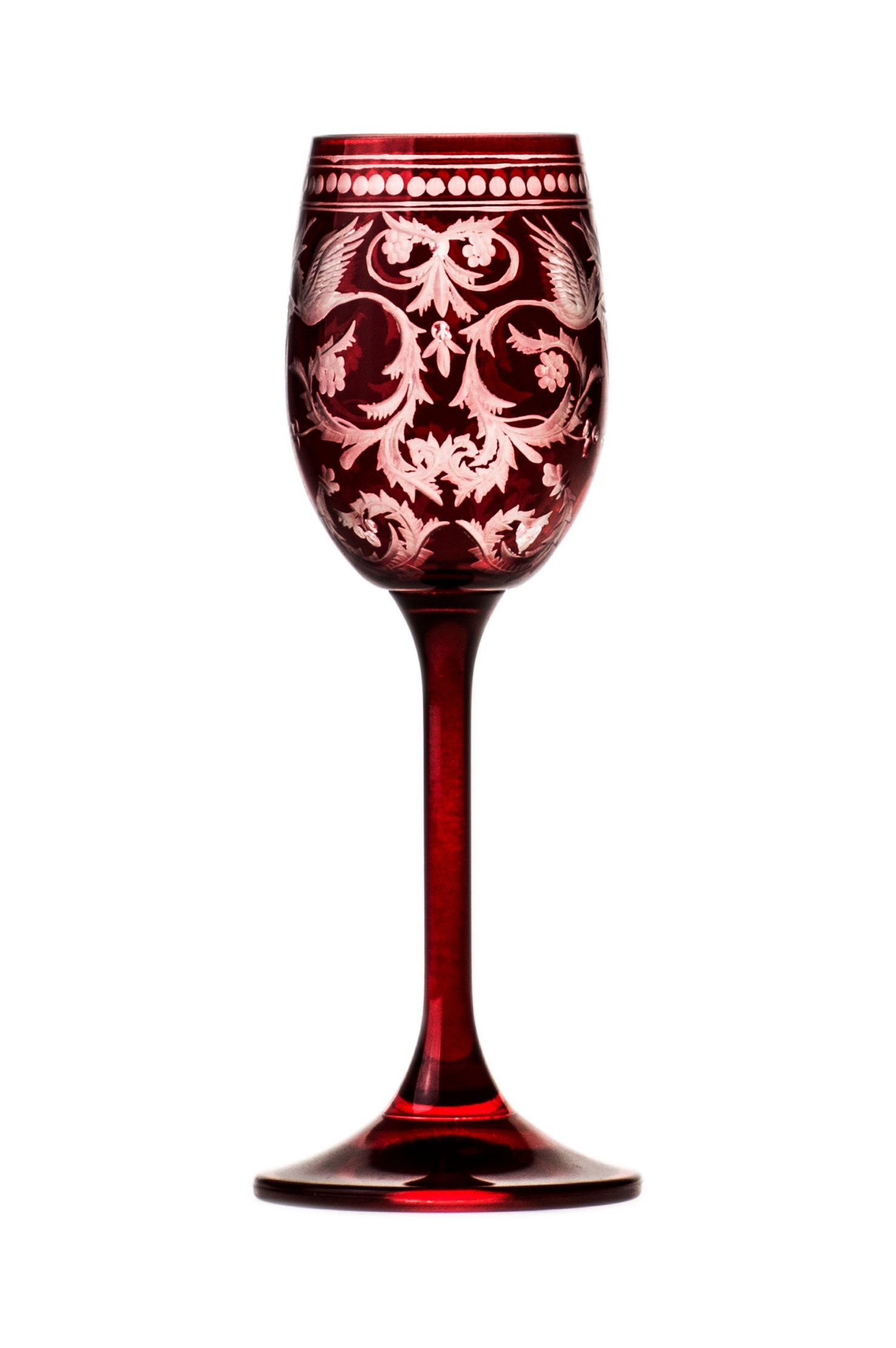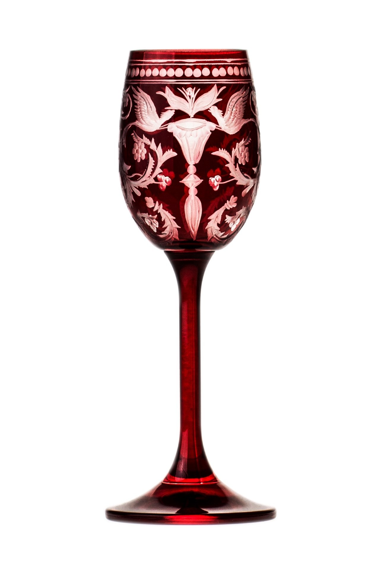 Sklenice na likér a lihoviny v granátové barvě, která je ručně prorývaná, díky čemuž je zvýrazněn bohatý a náročný dekor. Doporučujeme doplnění do soupravy o láhev Evpas garnet nebo ostatní výrobky z téže řady pro Váš prostřený stůl. Tento dekor vznikl již při začátcích sklárny. Pro jeho oblíbenost a nestárnoucí design se stal synonymem pro značku Evpas.