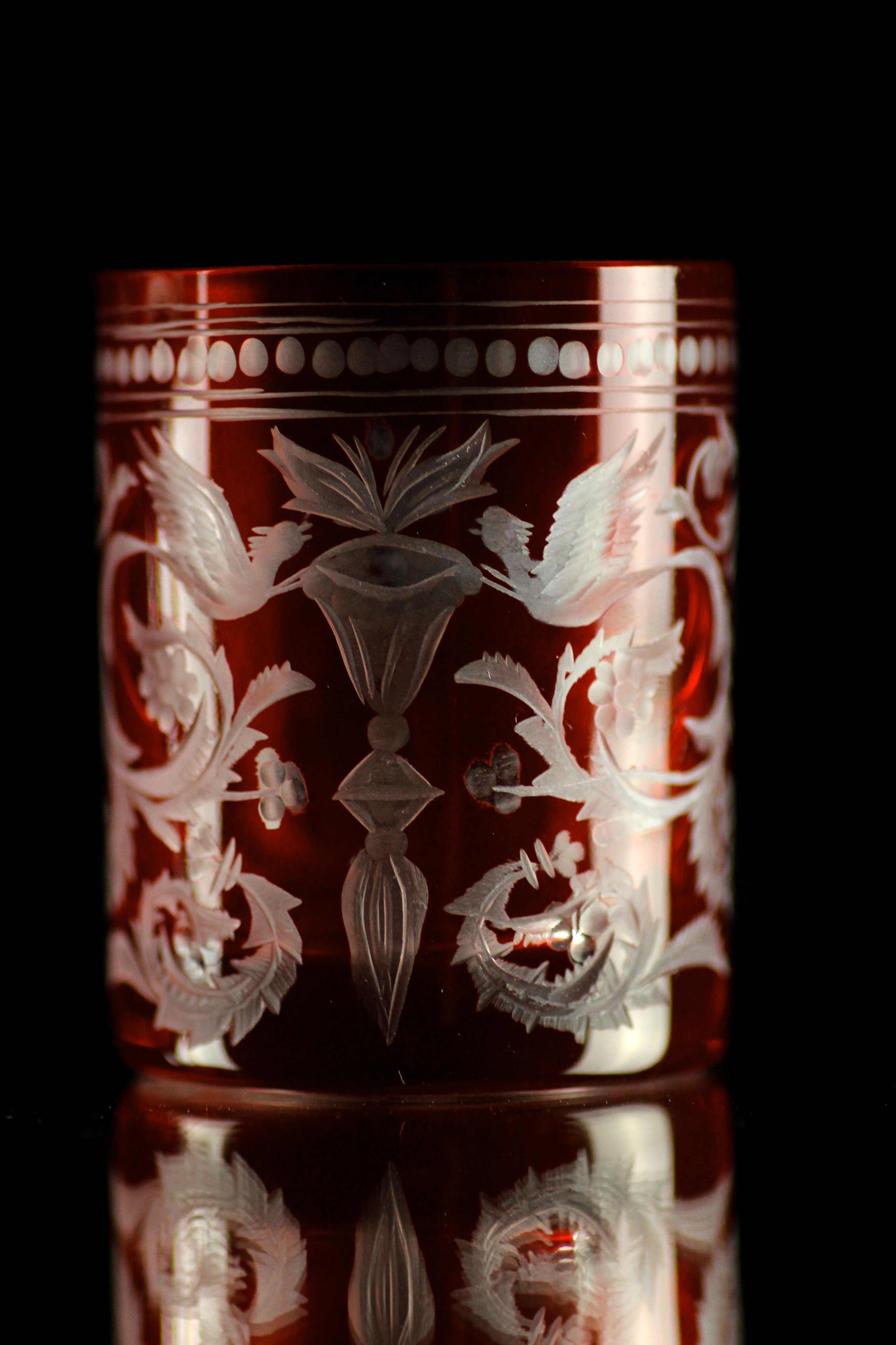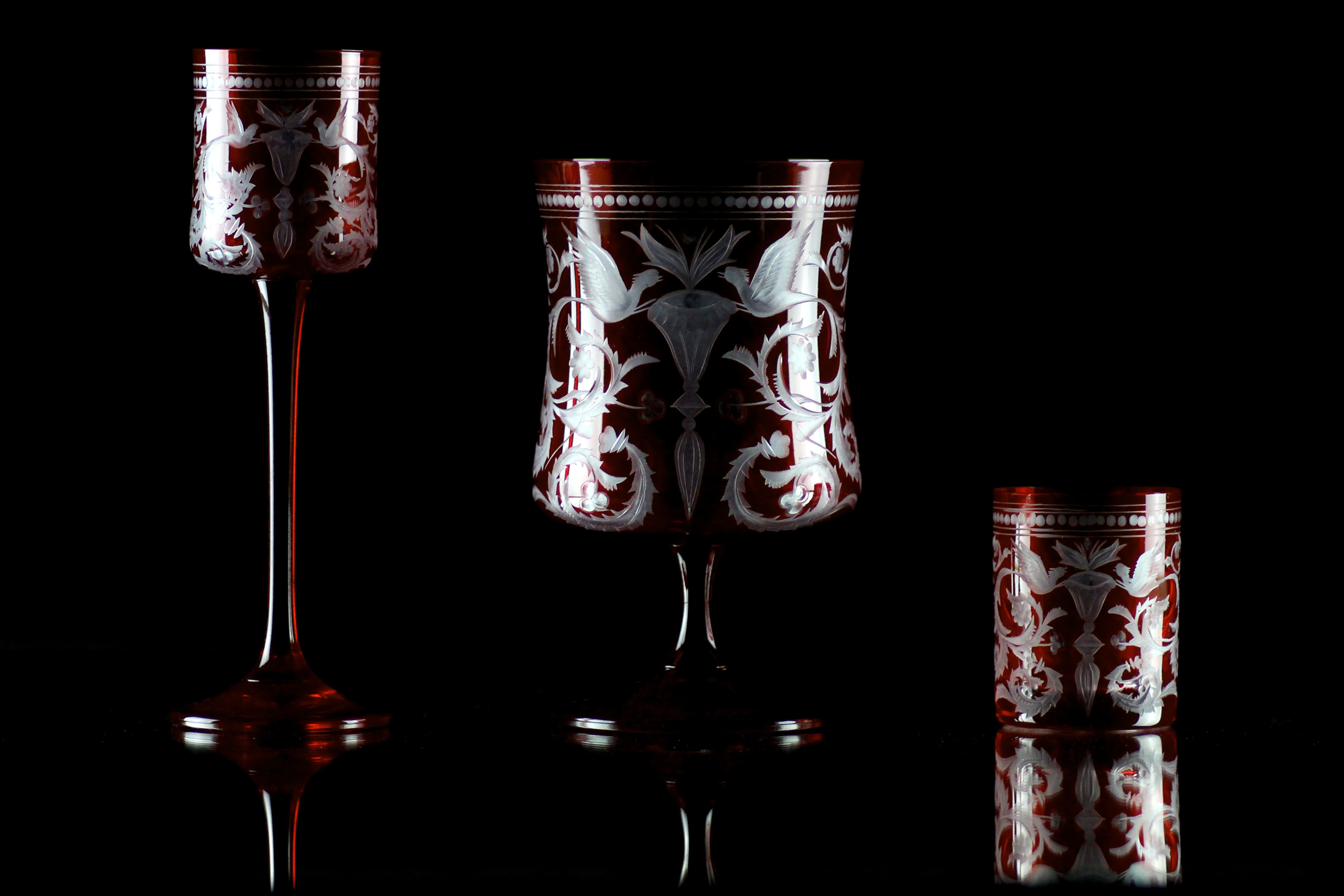 Sklo: Čiré, Barevné, Ručně ryté, Bezolovnatý český křišťál