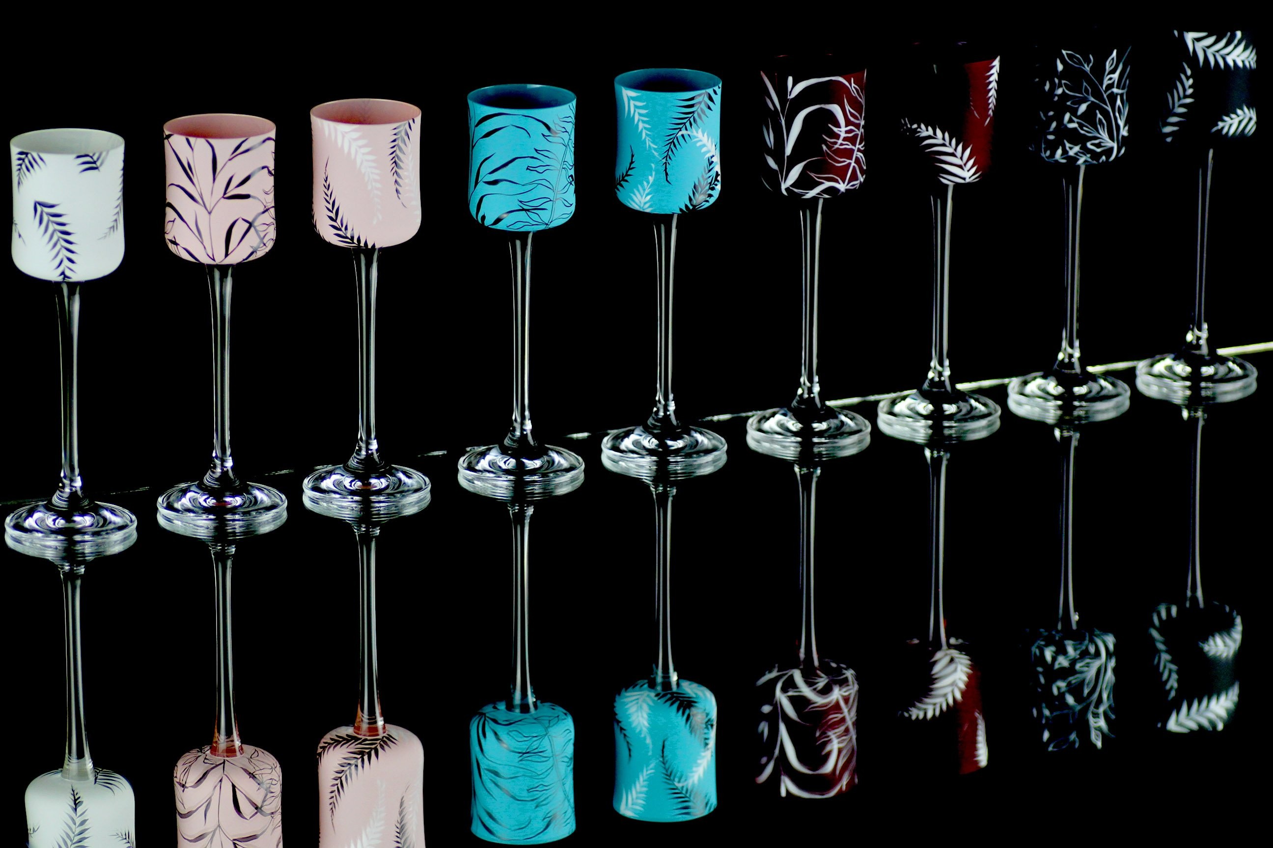 Sklo: Čiré, Barevné, Ručně malované, Bezolovnatý český křišťál