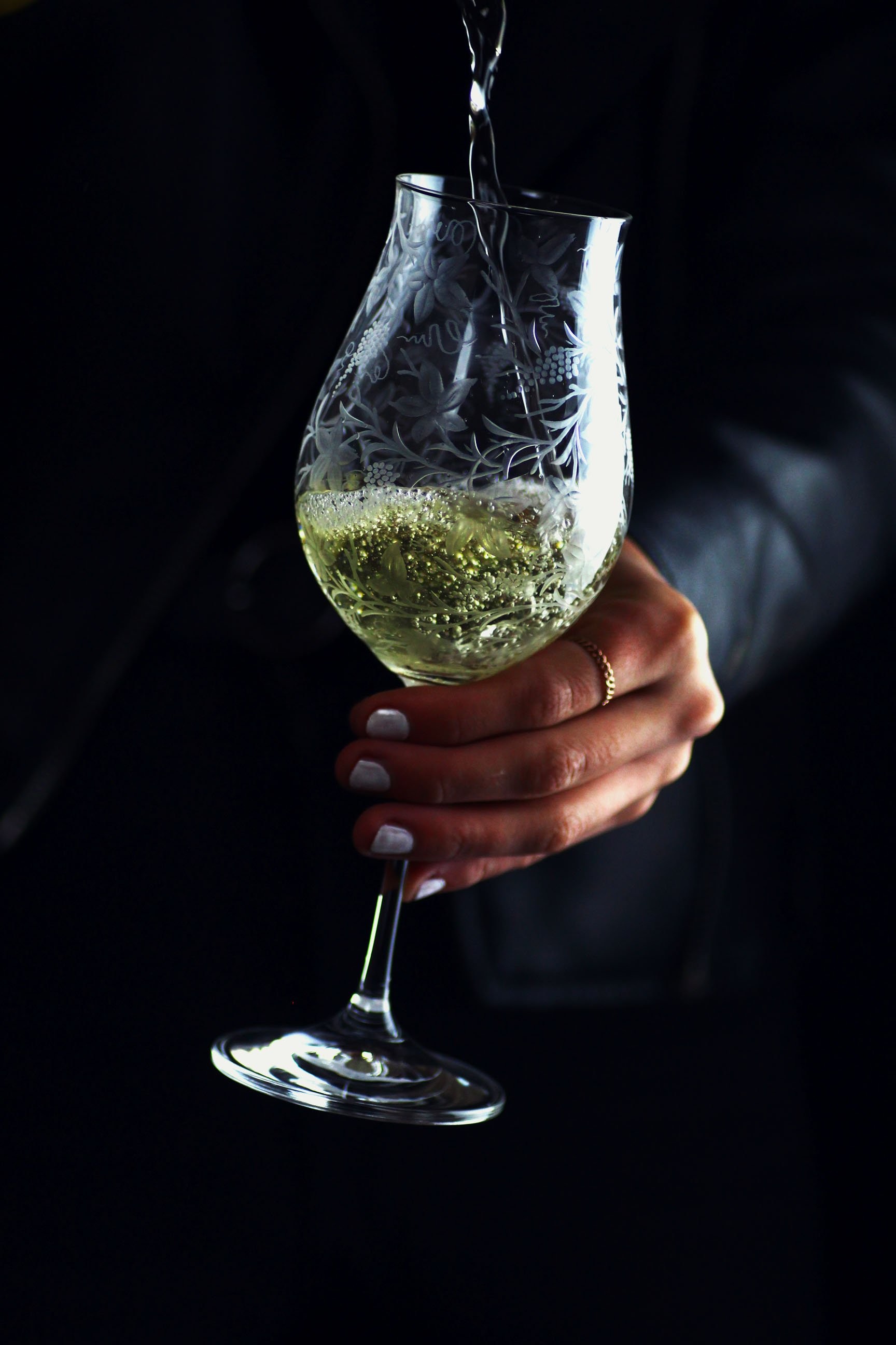 Ručně rytá sklenice na bílé víno 340 ml