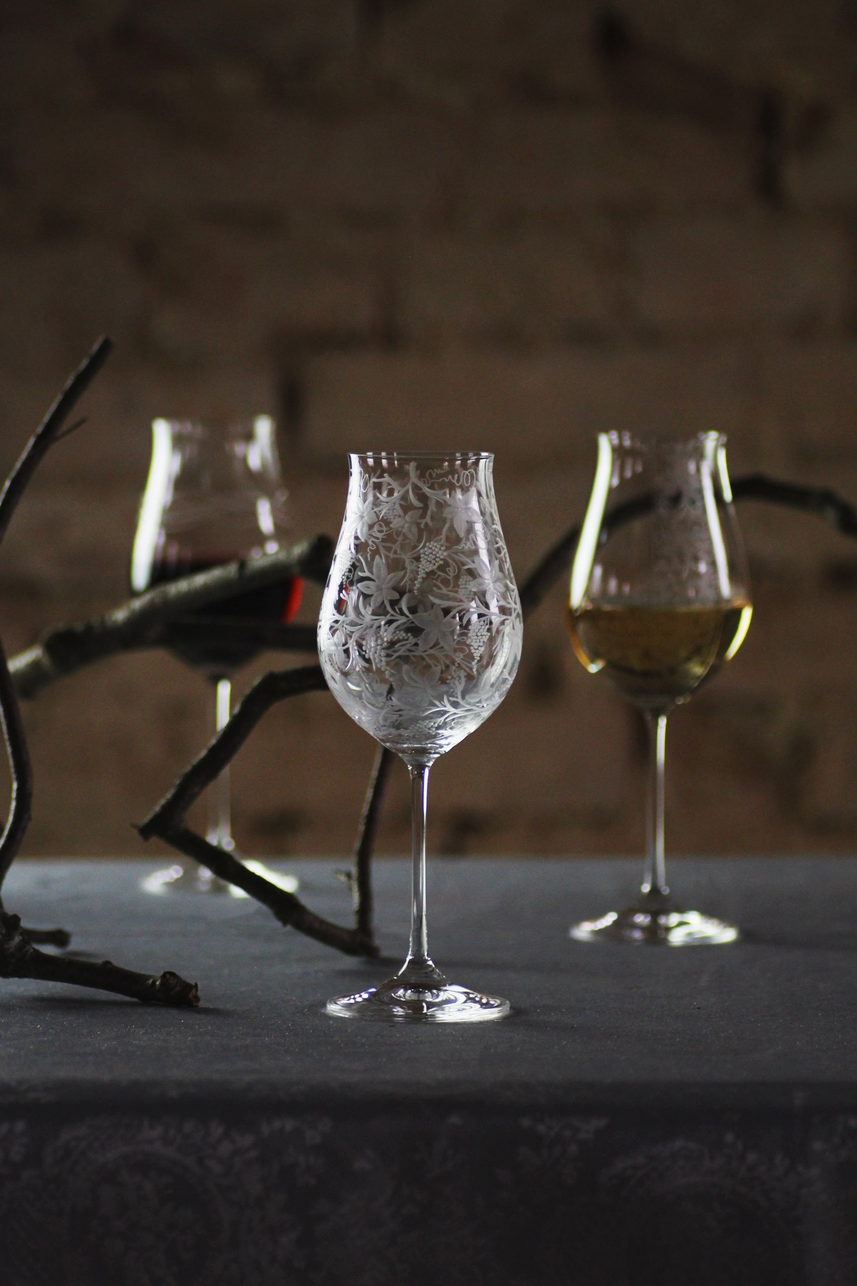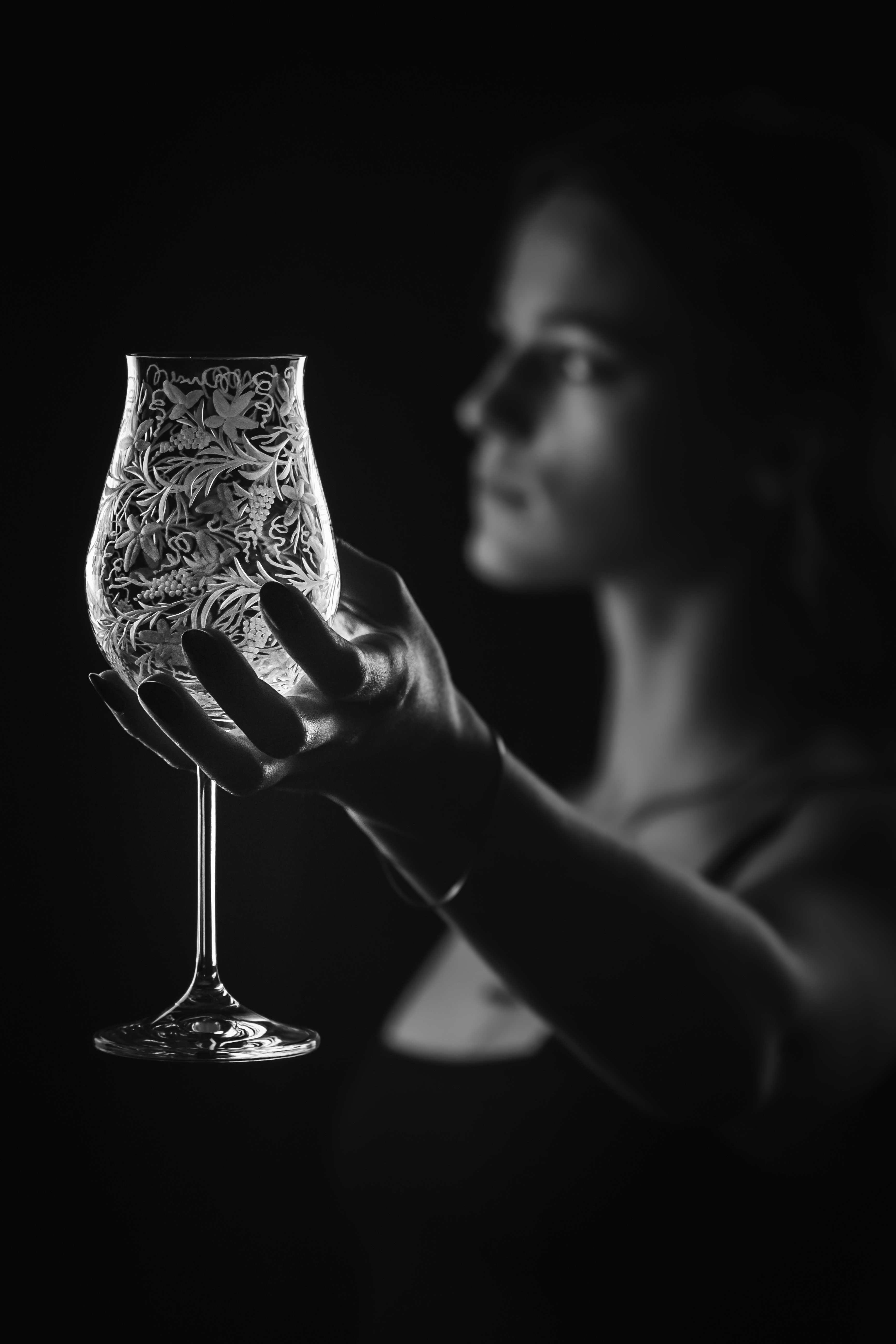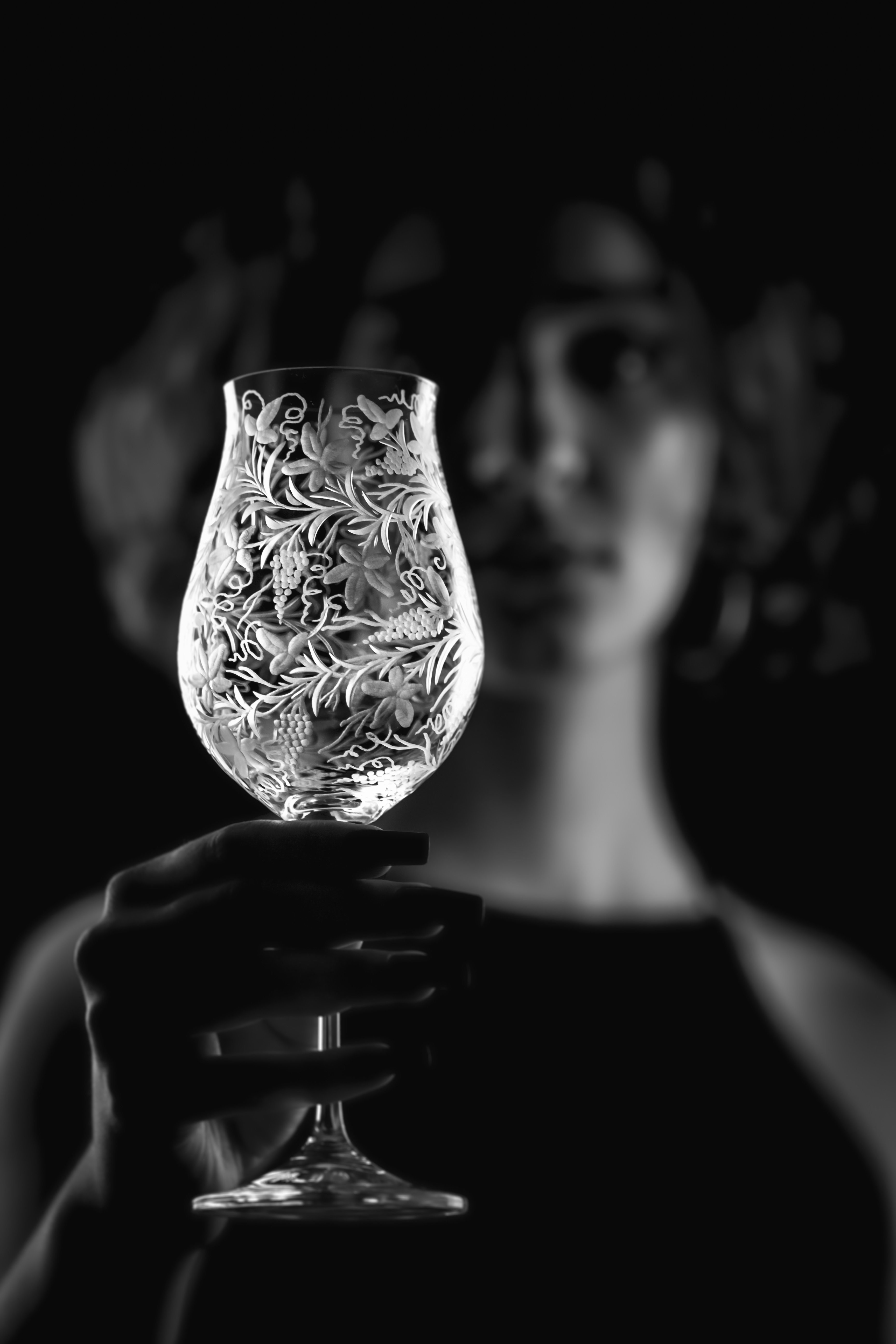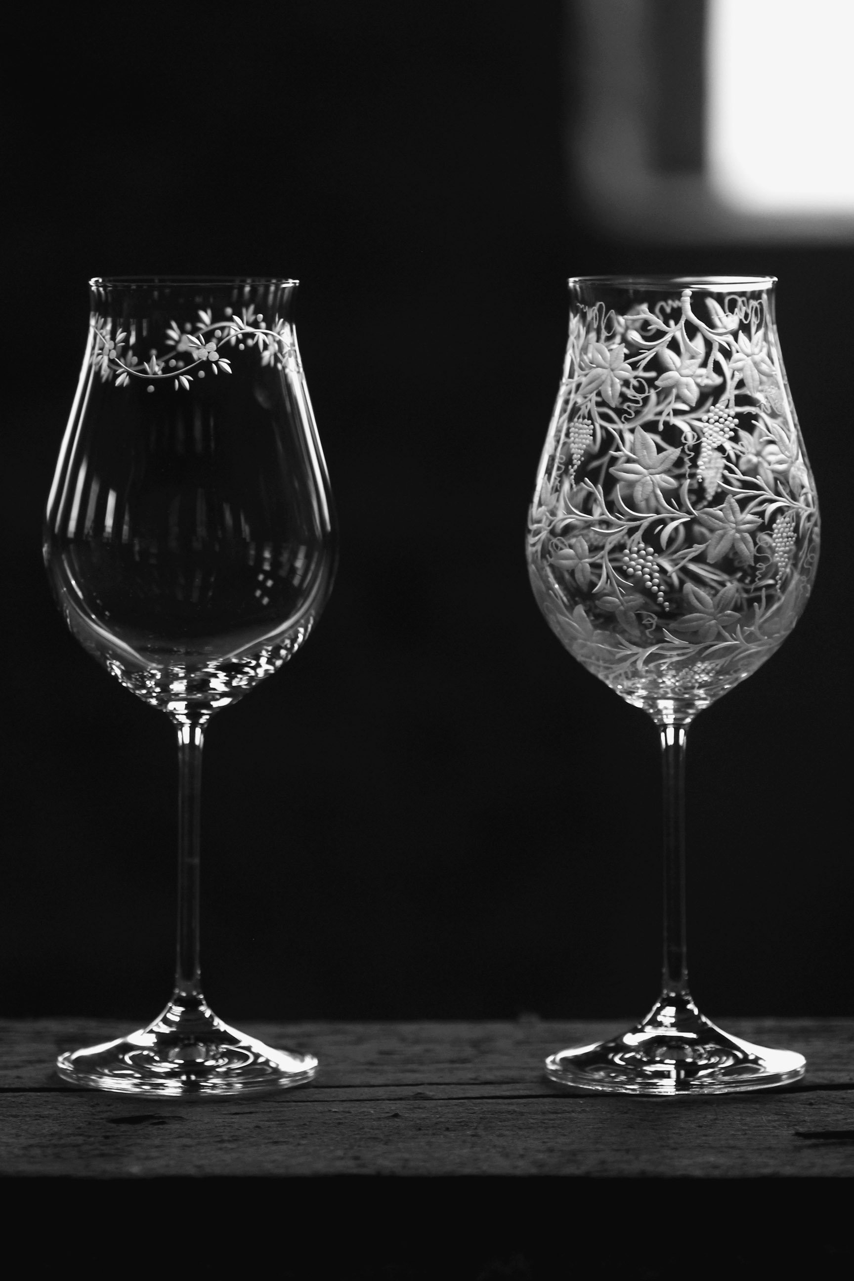 Speciální a překrásná sklenice pro milovníky vinného moku. Celý povrch kalichu je bohatě ručně rytý stylizovanou vinnou révou, která umocňuje a nenarušuje vaše klidné chvíle a požitek z vína.