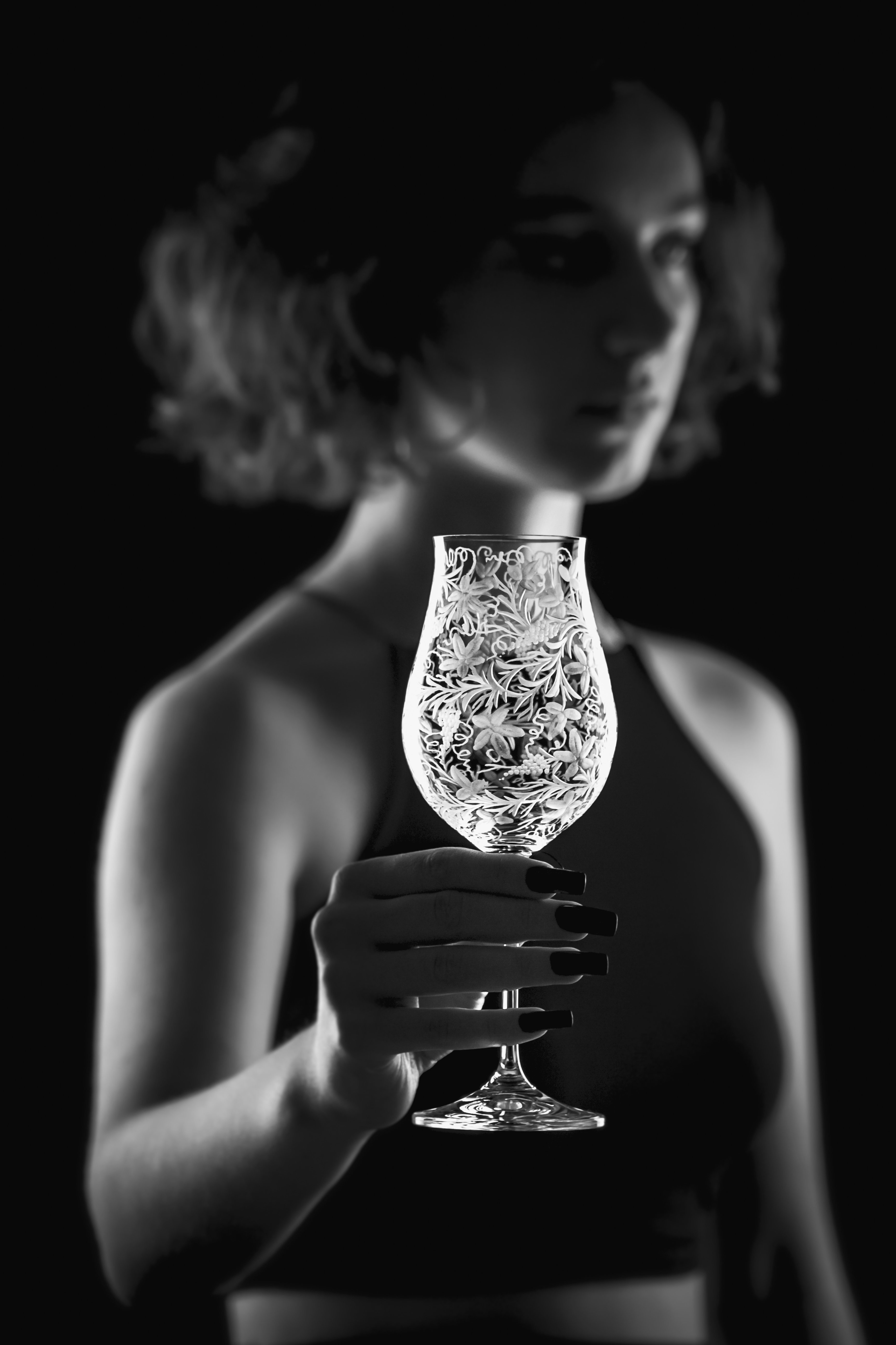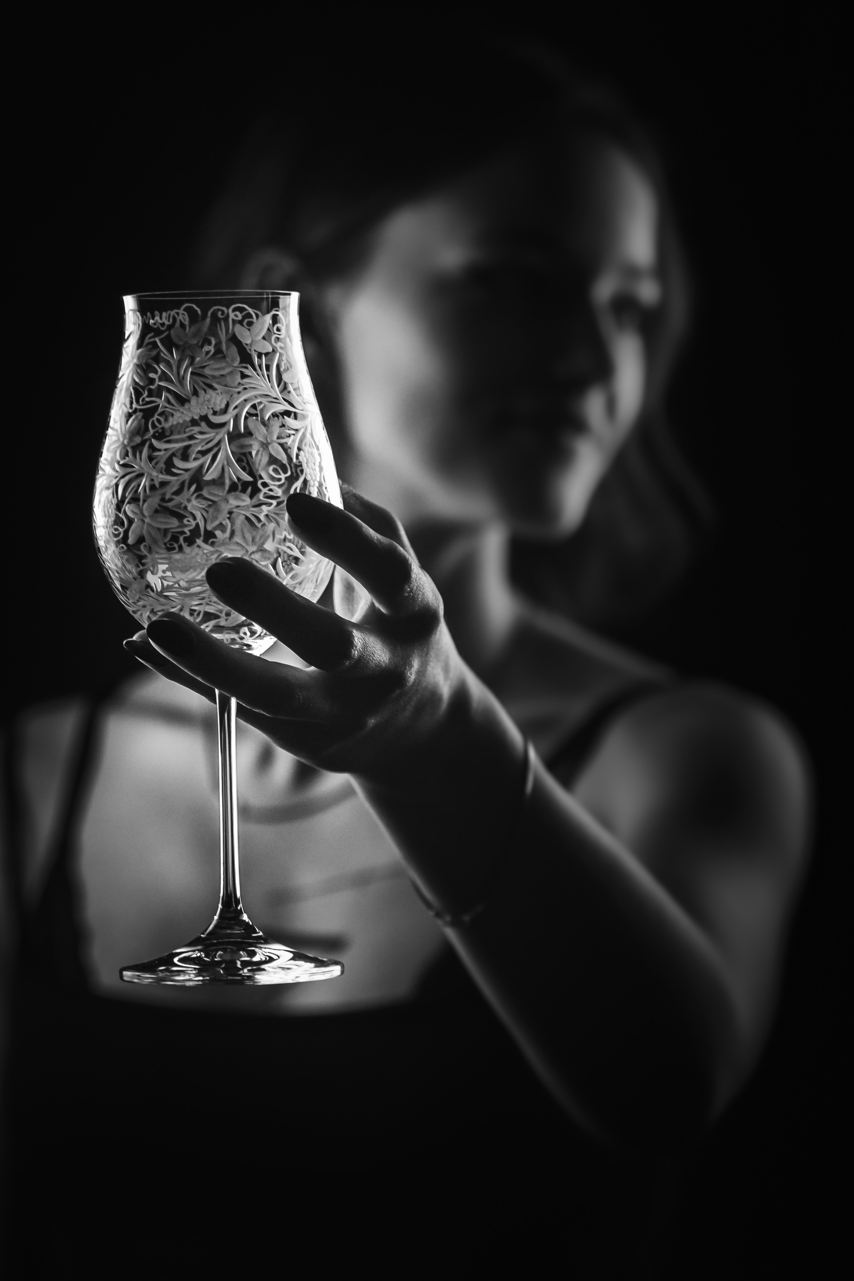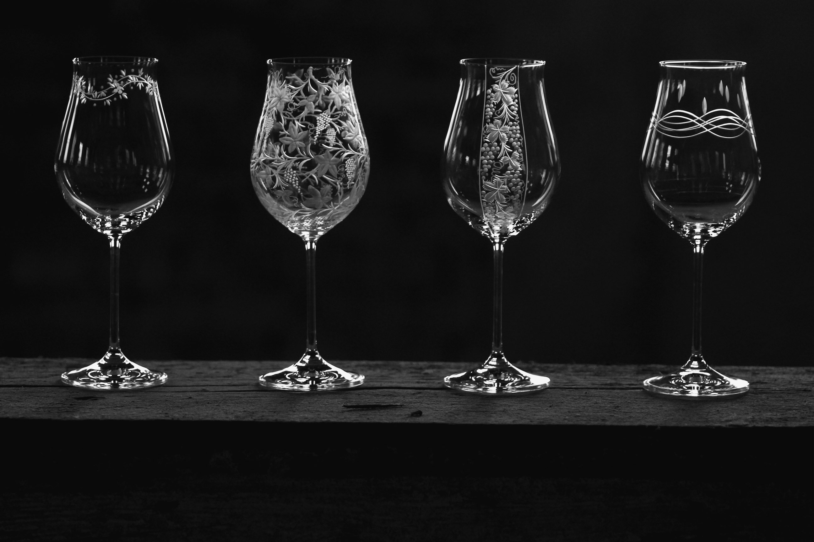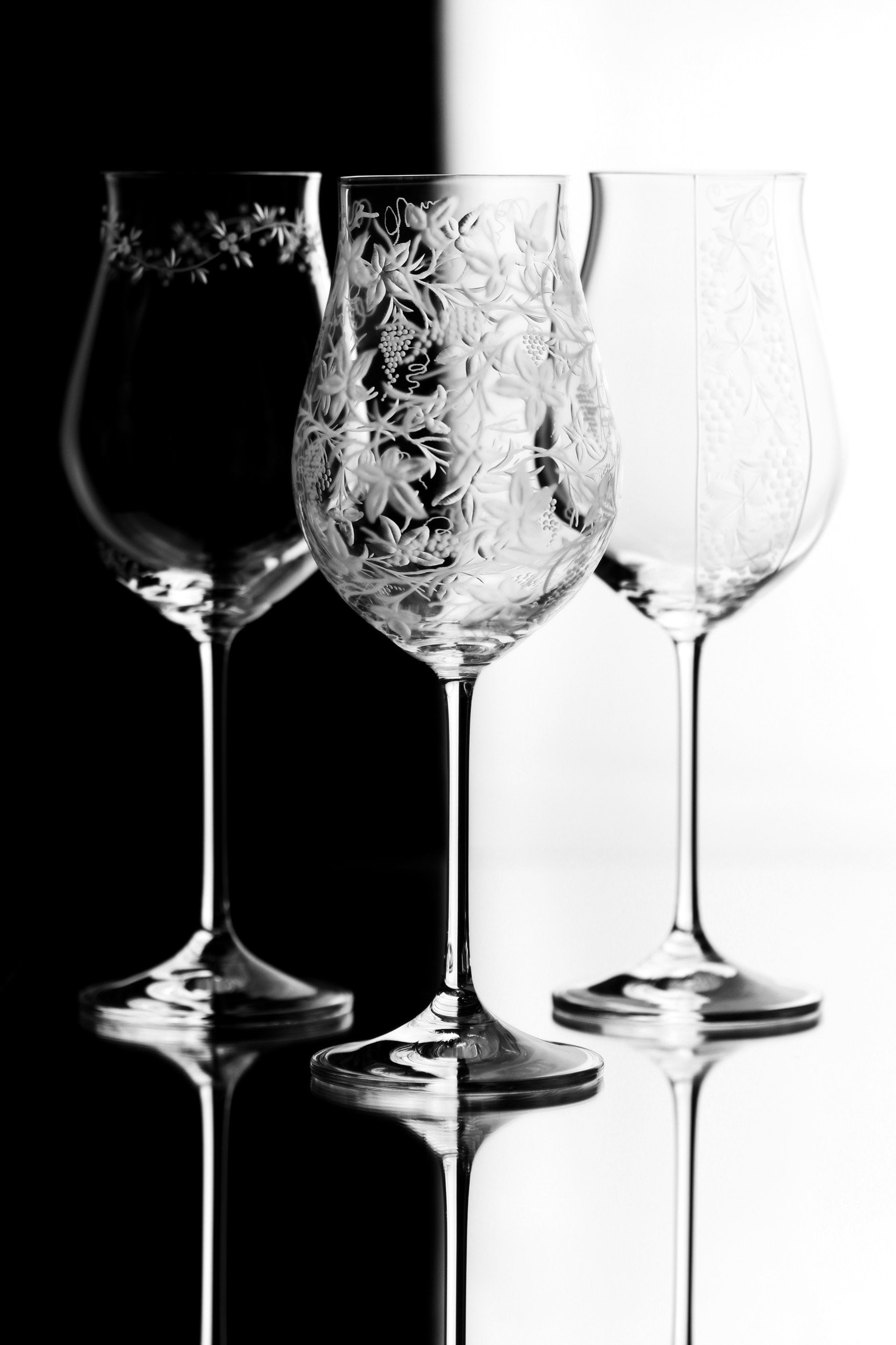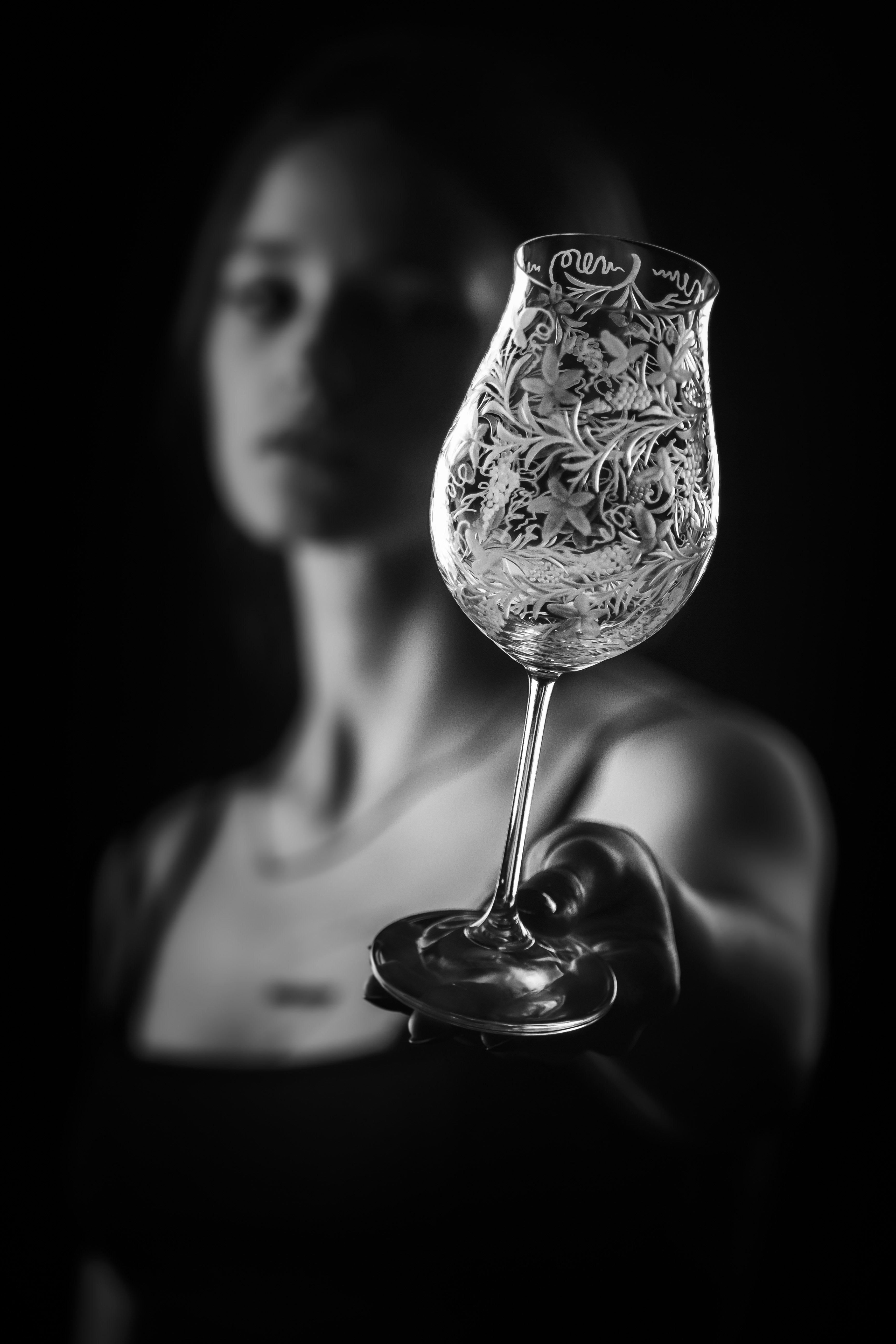 Speciální a překrásná sklenice pro milovníky vinného moku. Celý povrch kalichu je bohatě ručně rytý stylizovanou vinnou révou, která umocňuje a nenarušuje vaše klidné chvíle a požitek z vína.