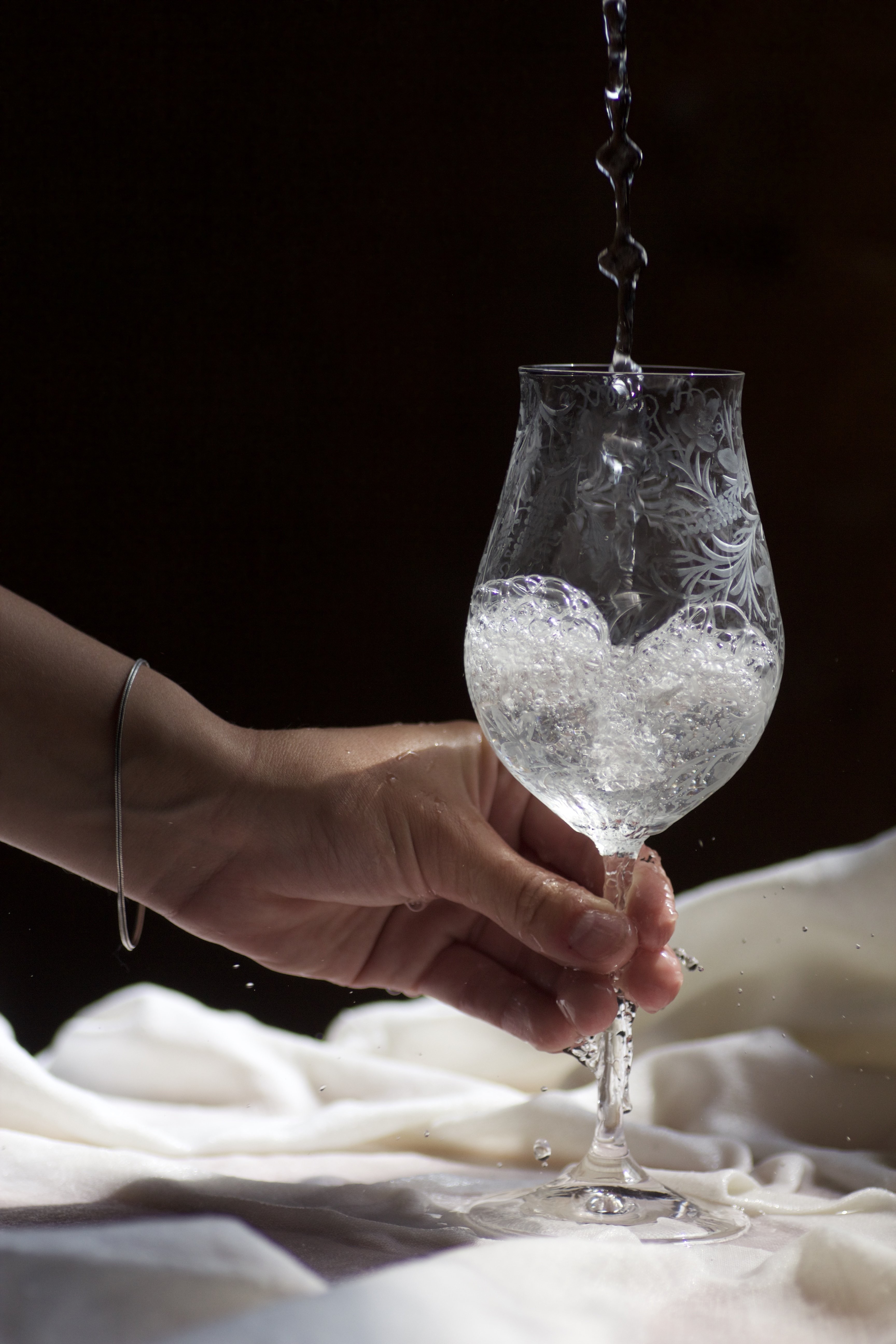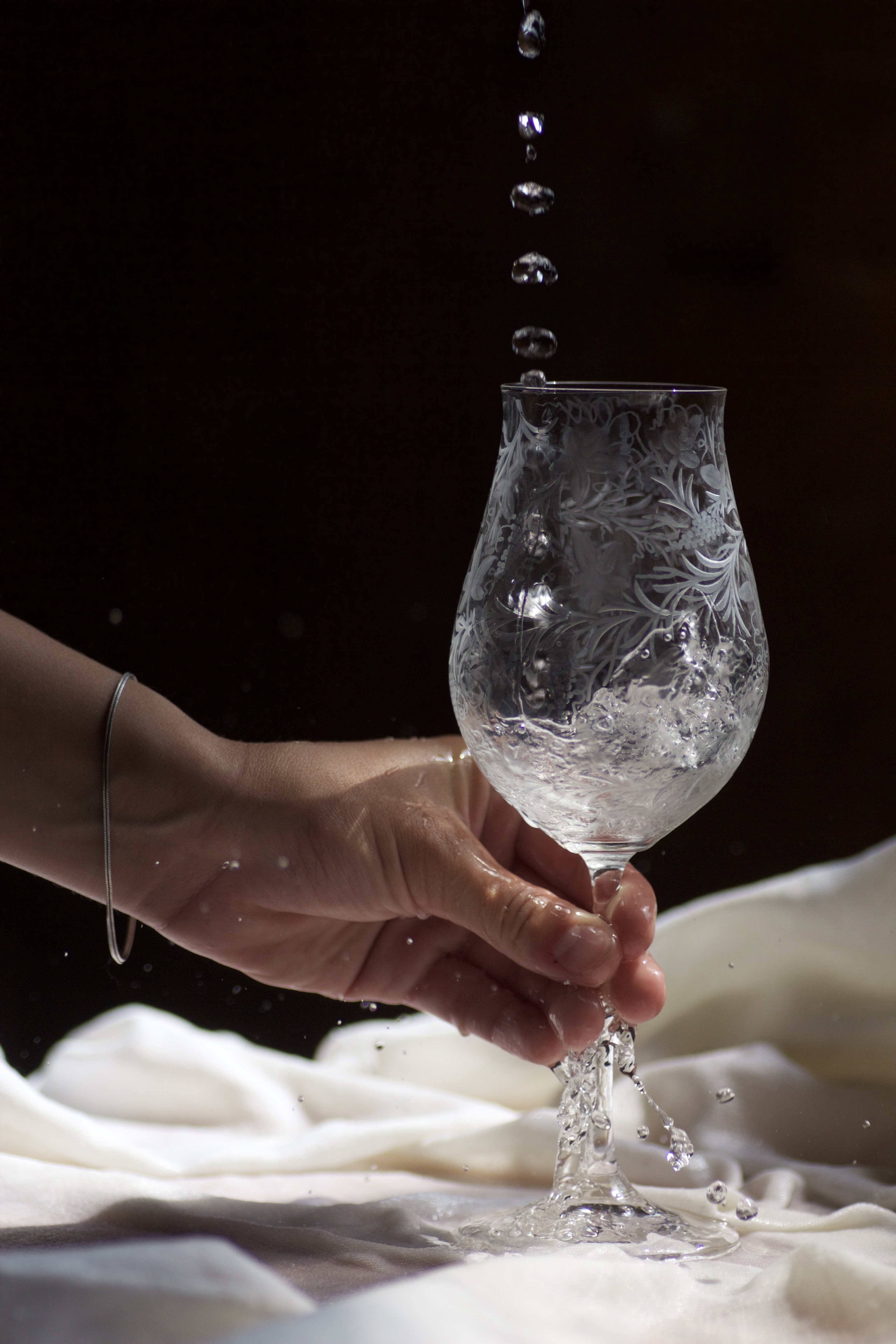 Sklo: Čiré, Ručně ryté, Bezolovnatý český křišťál