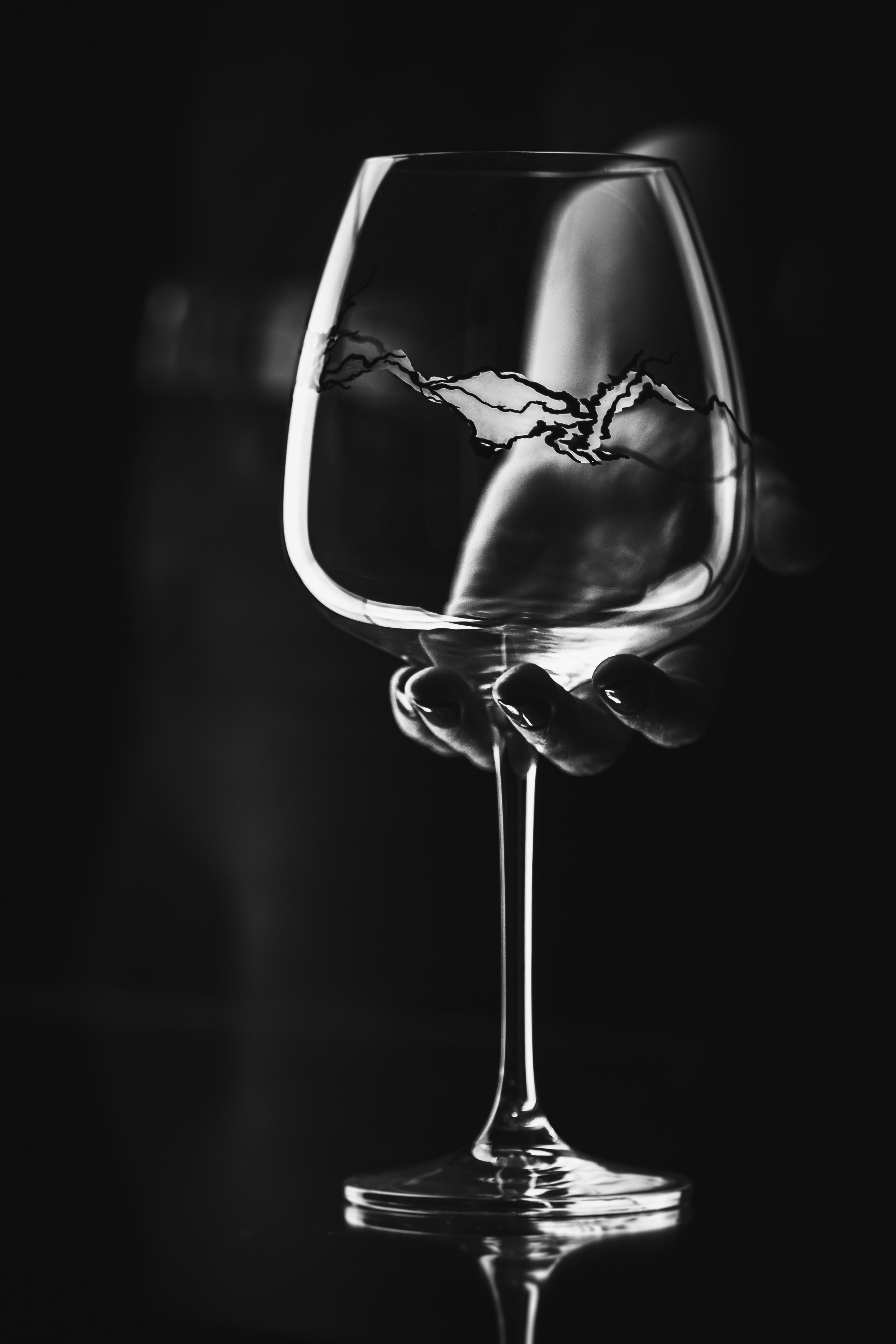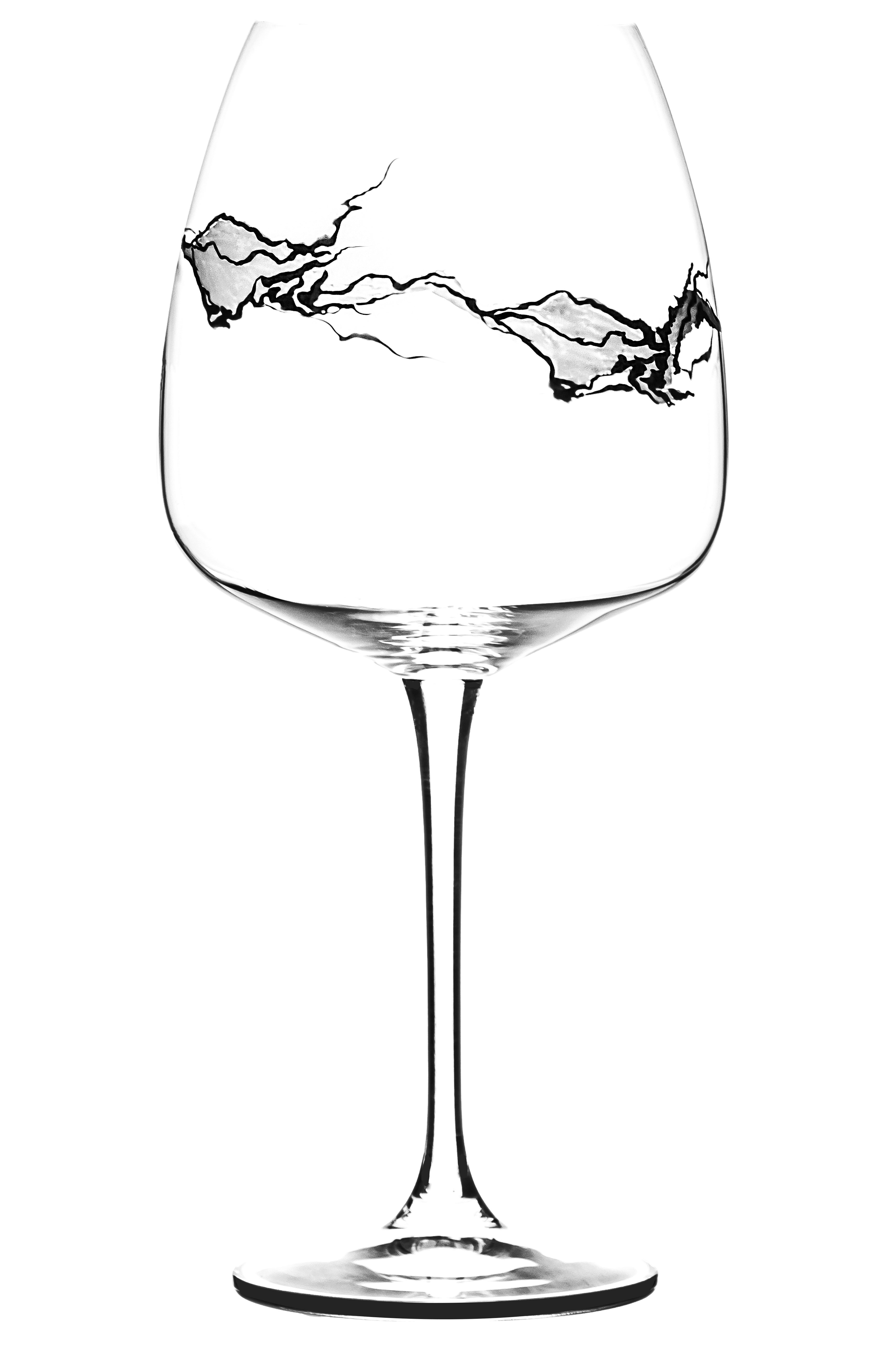 Tento originální ručně malovaný dekor na velkoobjemové vinné sklenici probouzí fantazii každého. Málokterý člověk v něm vidí to samé. Někdo si vybaví pohoří, jiný zase prasklinu, vodu, led, hranice na mapě či něco jiného. Fantazii se meze nekladou a Glacier je jedinečný.