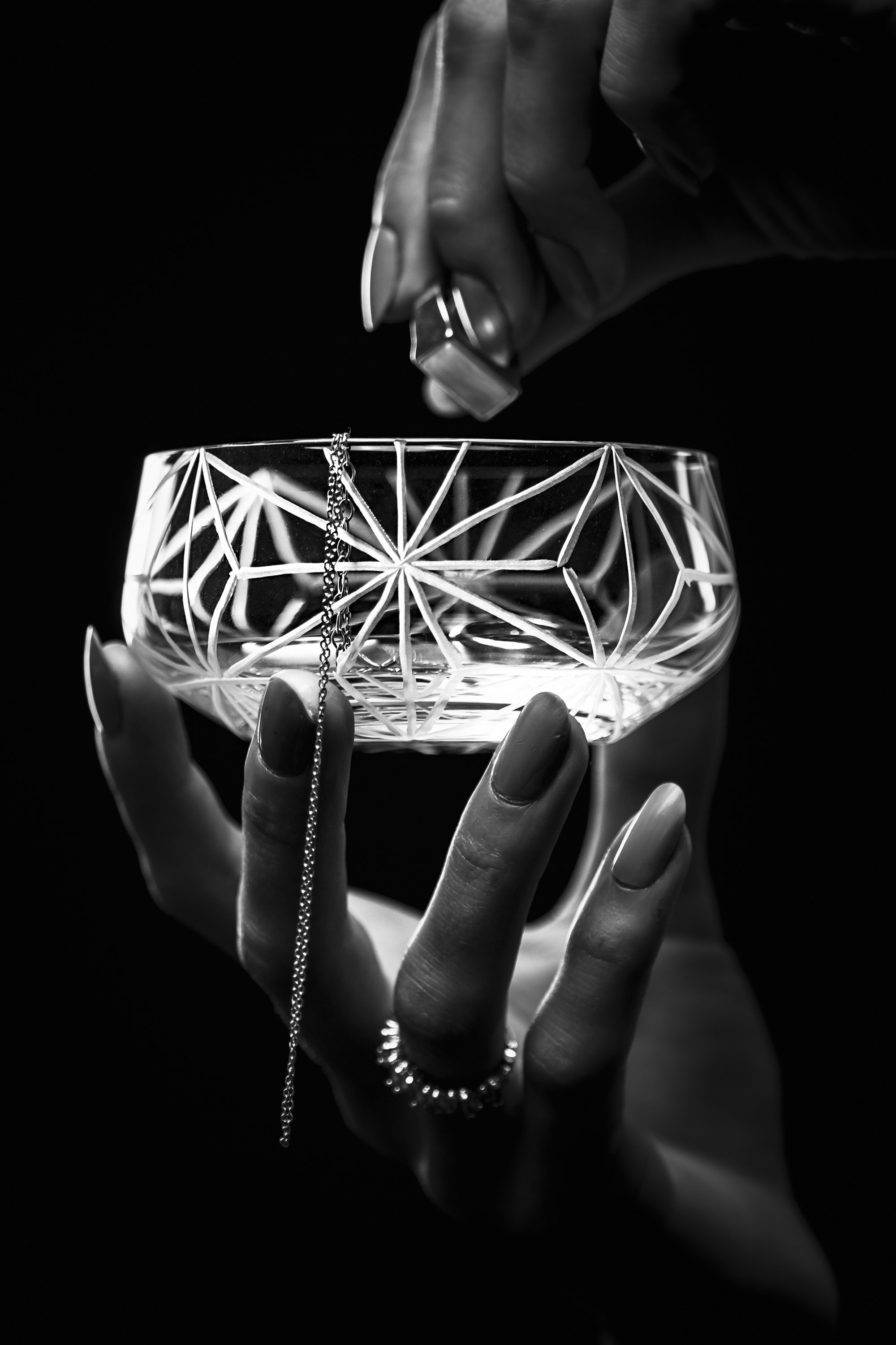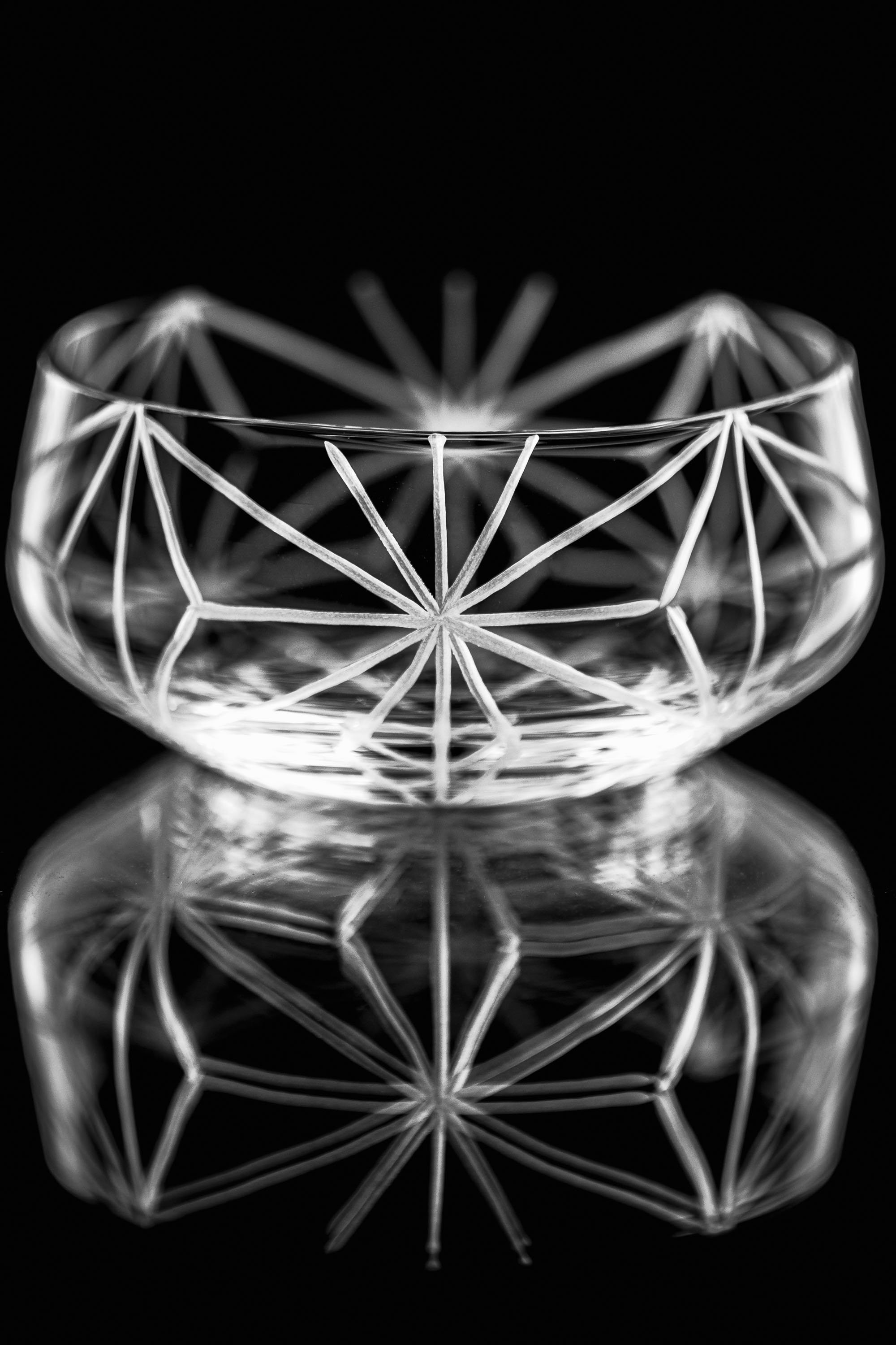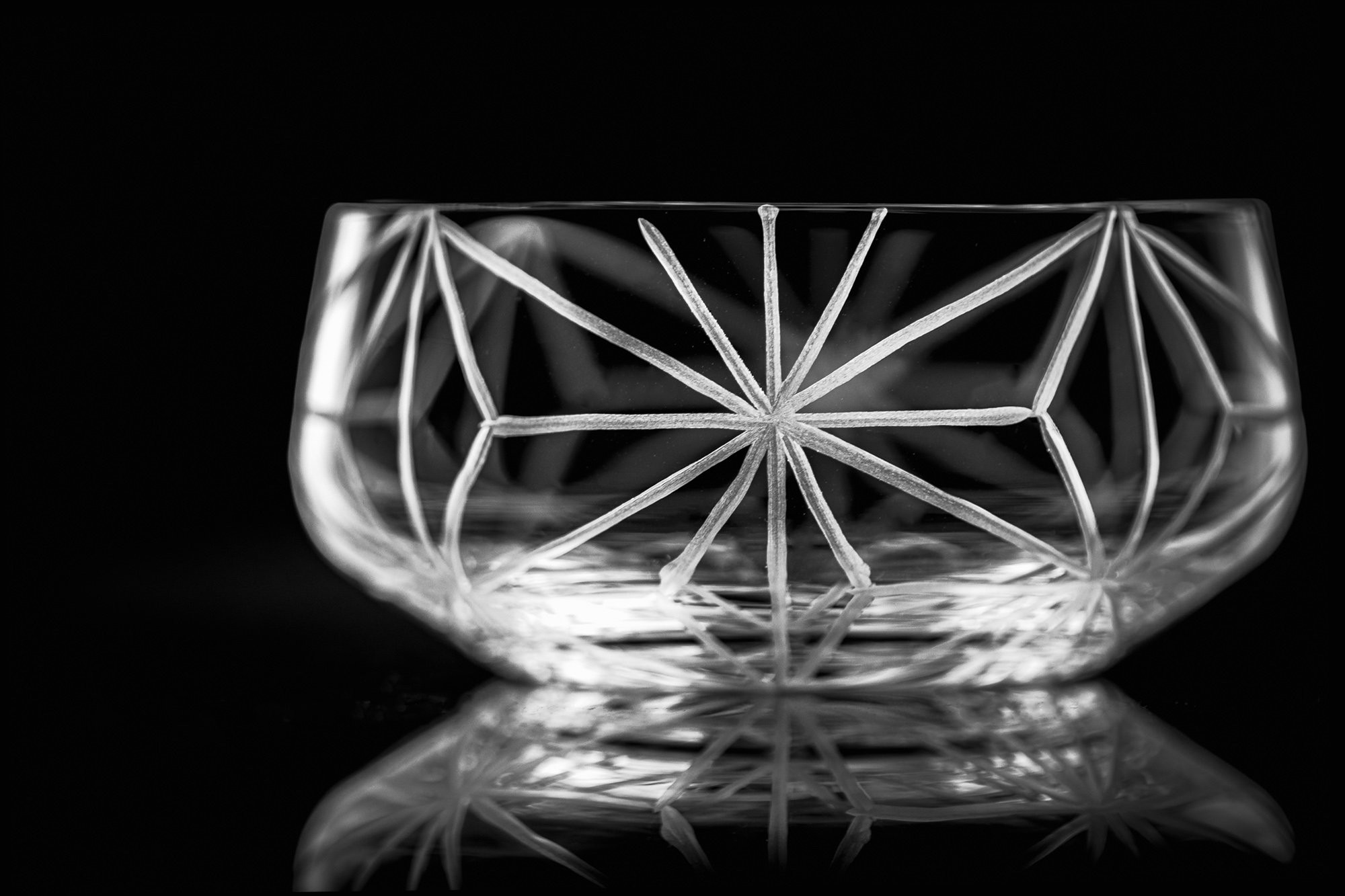 Sklo: Čiré, Ručně ryté, Bezolovnatý český křišťál