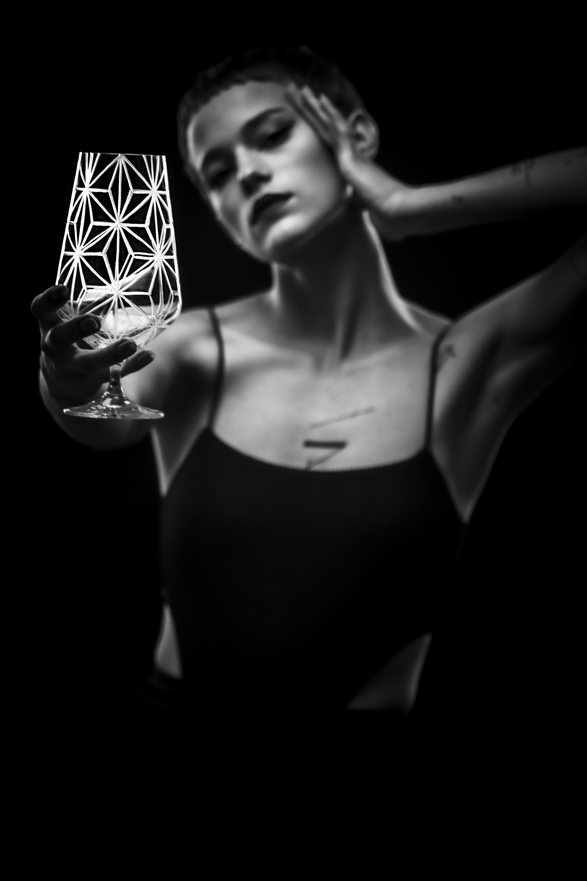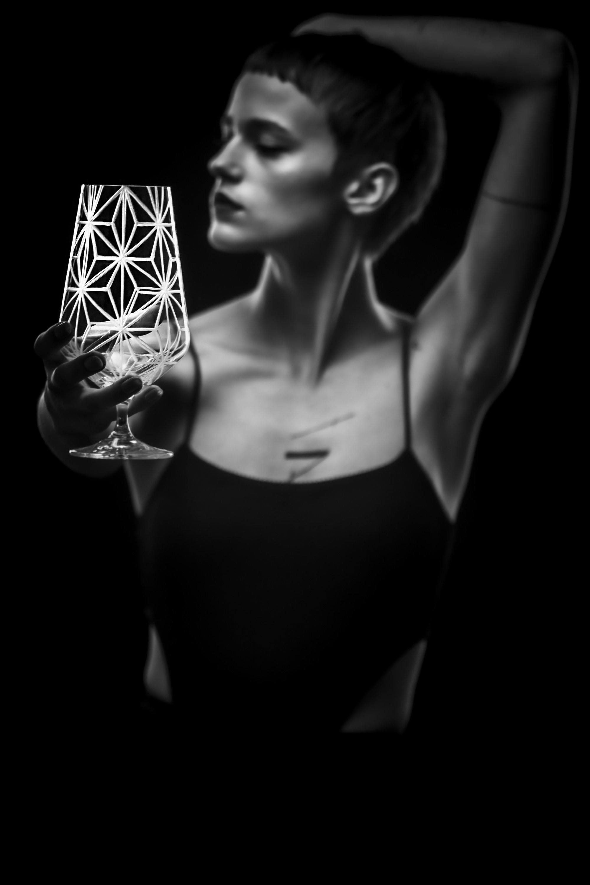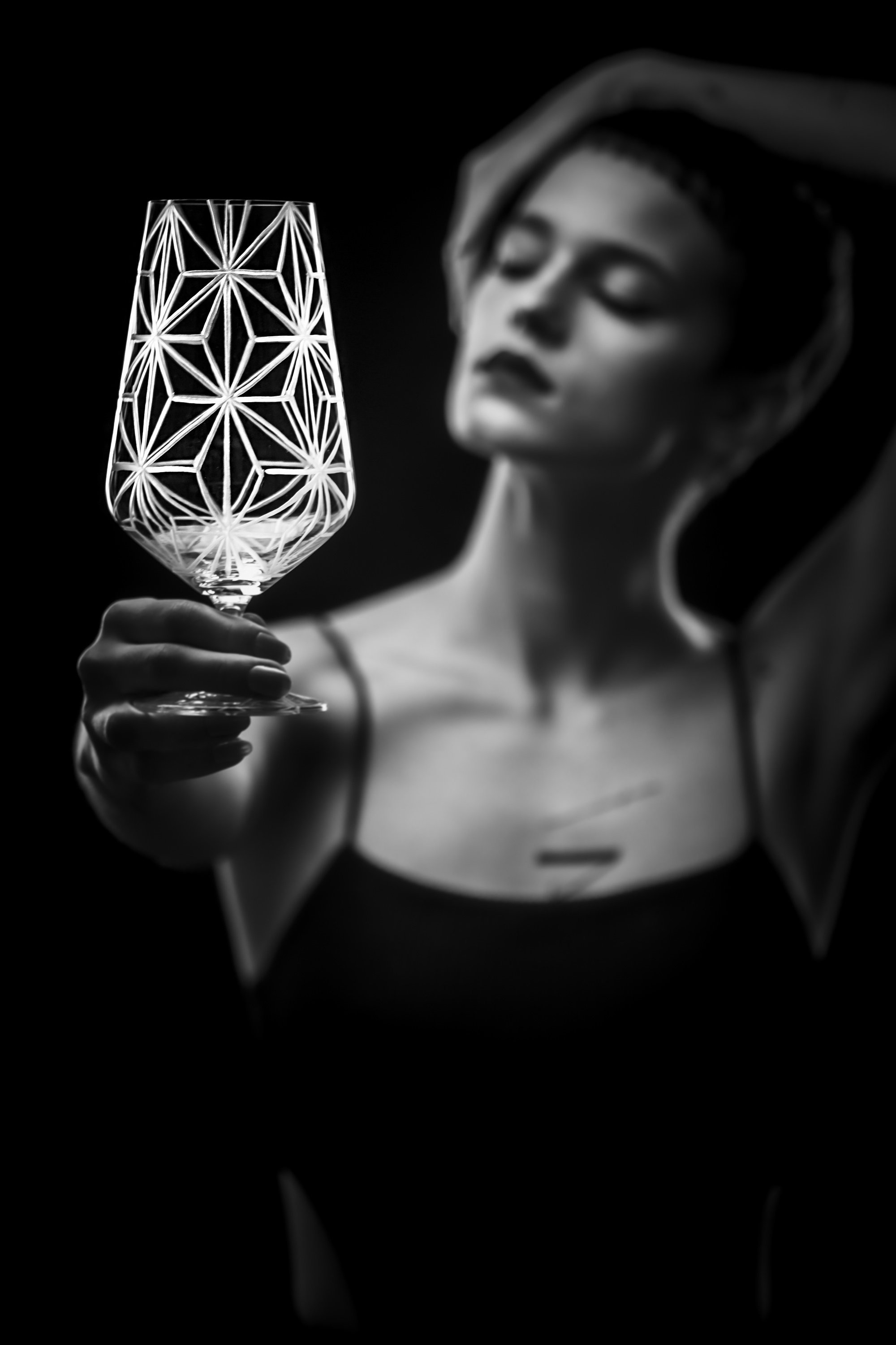 Sklo: Čiré, Ručně ryté, Bezolovnatý český křišťál