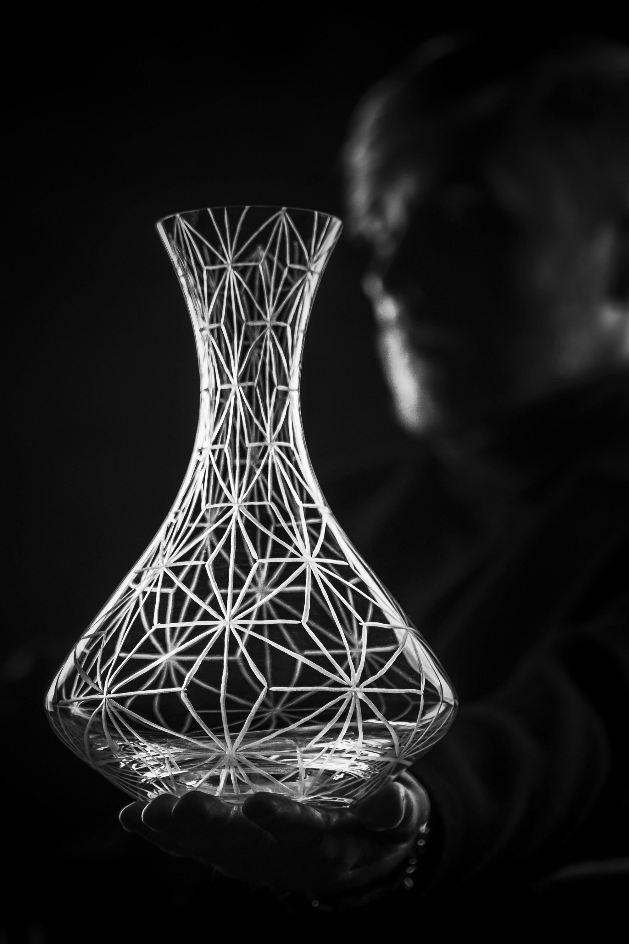 Ručně rytý design geometrických linií dodá každé domácnosti punc nevšednosti. Tento luxusní dekantér na víno je vhodný i jako skvělý dárek, nebo ke kombinování s jinými sklenicemi ze stejné řady Glory, které se zaručeně stanou klenoty Vaší kuchyně.