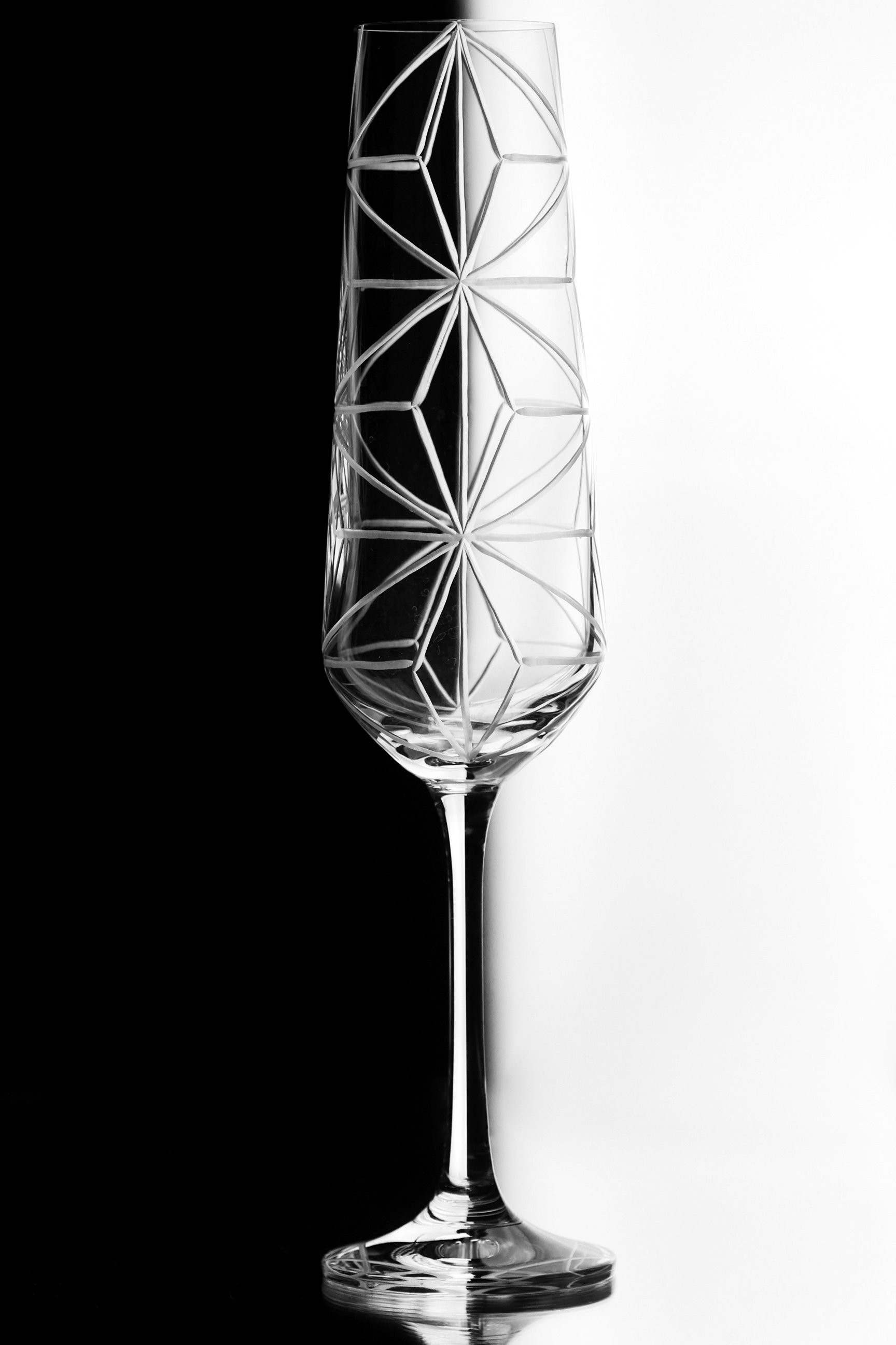 Ručně rytý design téměř až geometrických linií dodá vaší domácnosti punc nevšednosti. Tato luxusní sklenice na sekt je i vhodná jako skvělý dárek, nebo ke kombinování s jinými sklenicemi ze stejné řady Glory, které se zaručeně stanou klenoty vaší kuchyně.