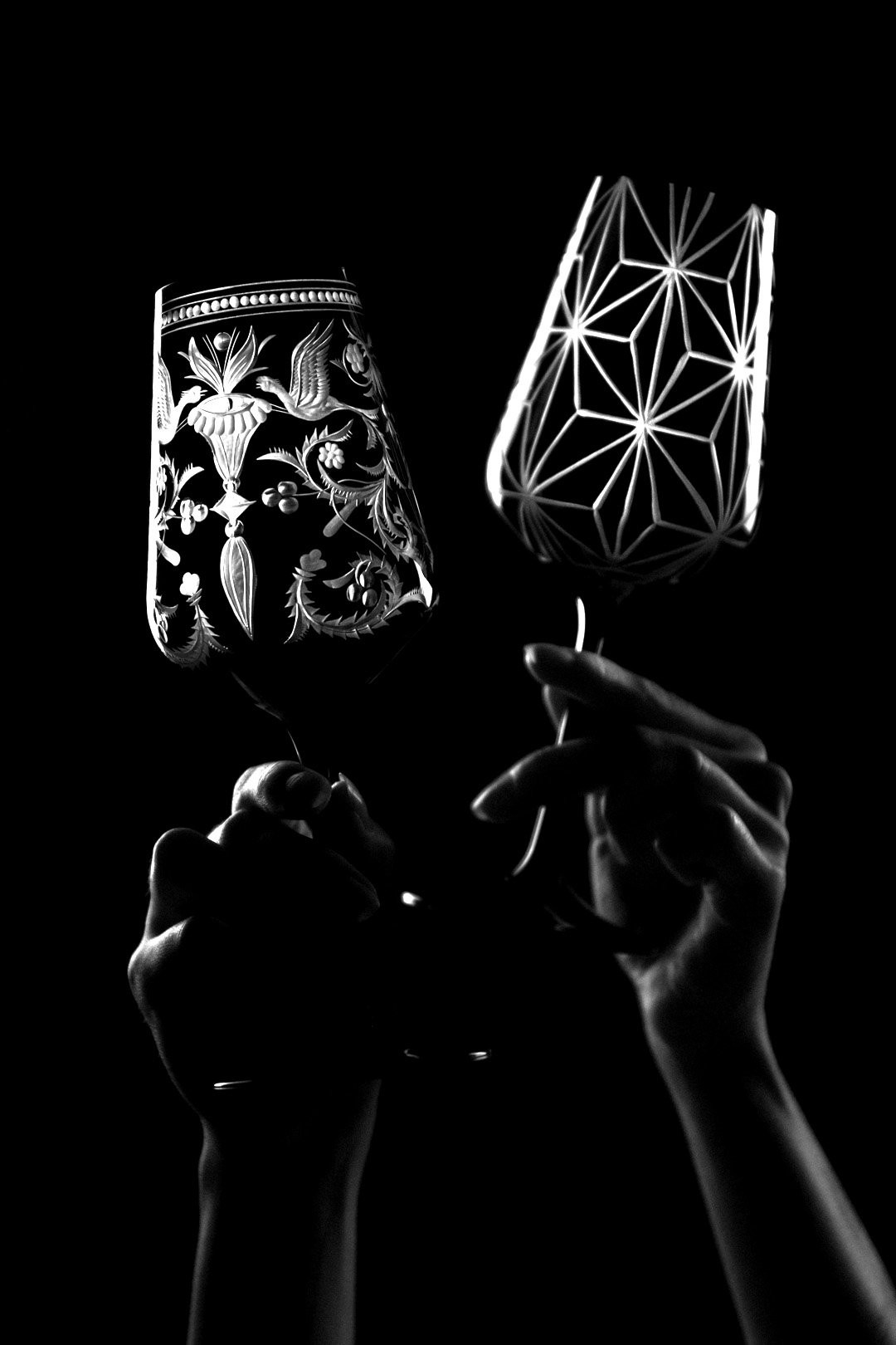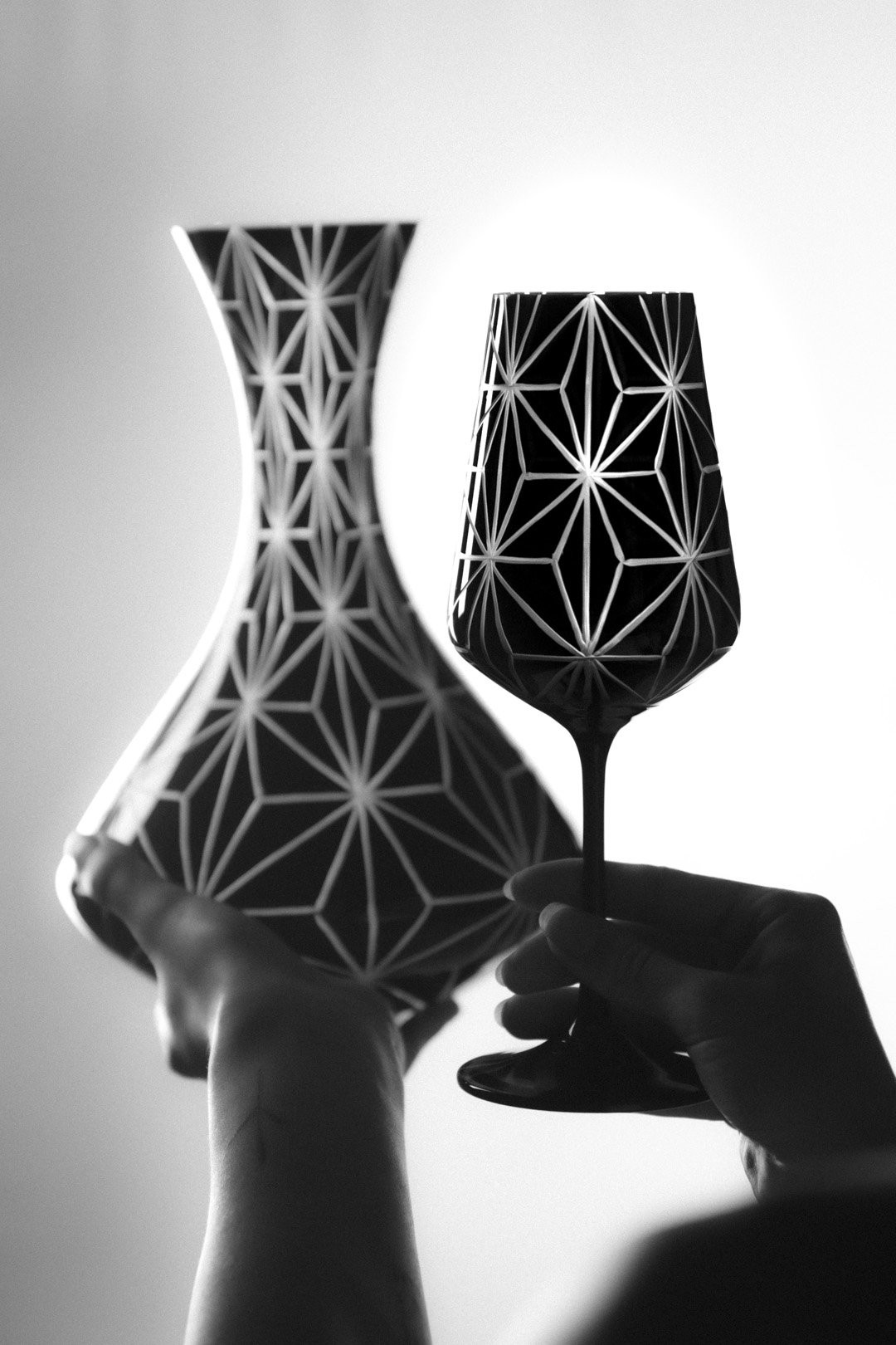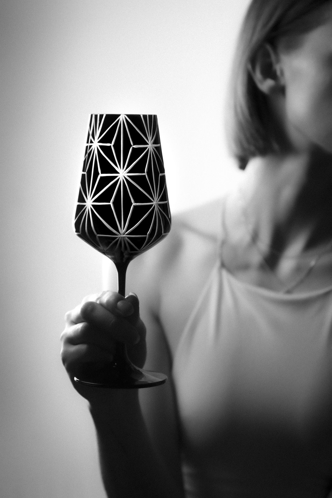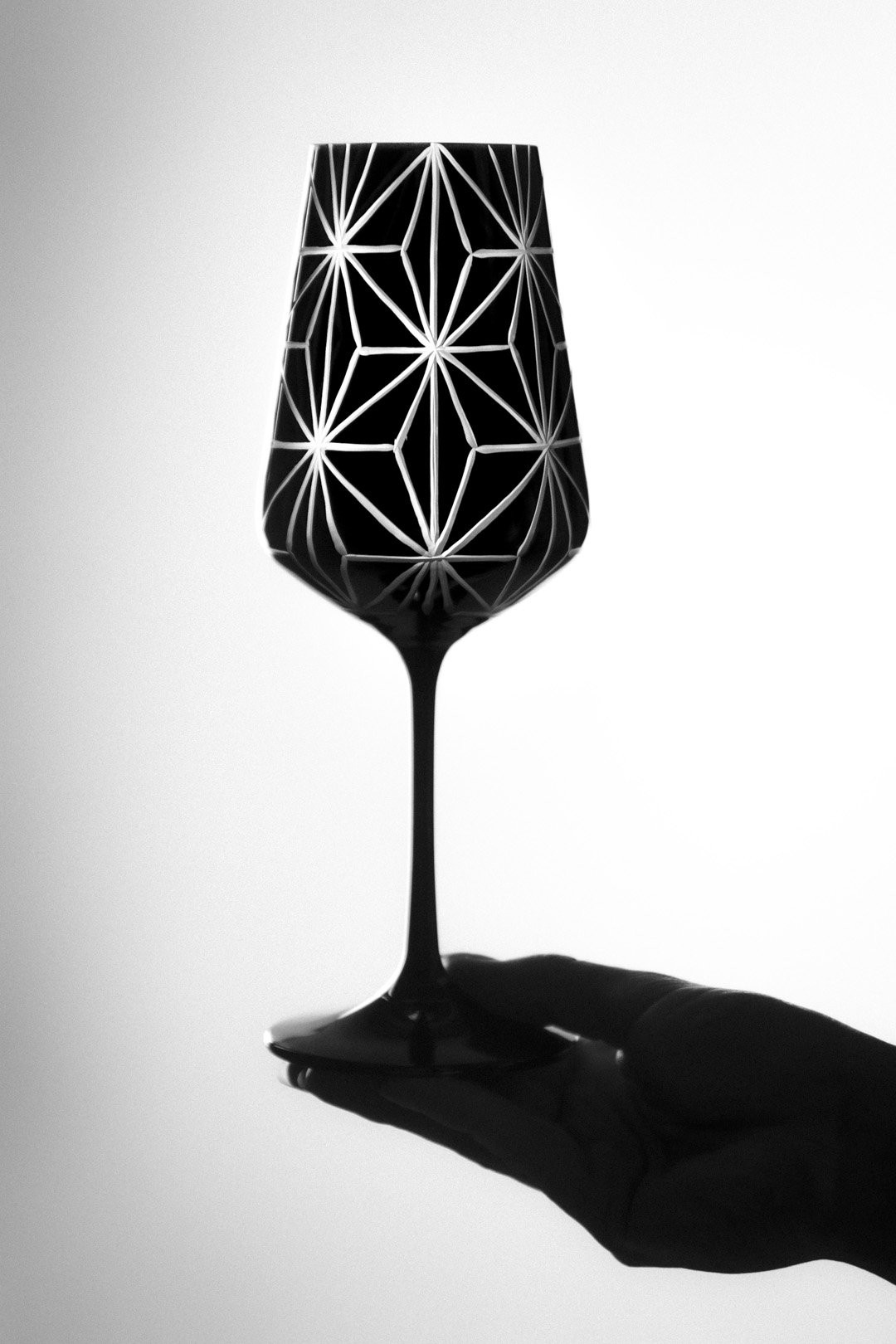 Ručně rytý design geometrických linií dodá vaší domácnosti punc nevšednosti. Tato kombinace ruční rytiny s temnou černou barvou je vhodná jako skvělý dárek, nebo ke kombinování s jinými sklenicemi ze stejné řady Glory, které se zaručeně stanou klenoty vaší kuchyně.